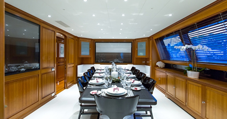 8/12 Guests in 4/5 cabins (convertible master) 1 x Master, 1 x Double, 2 x Twin, 2 x Pullman berths OWNER Double Owner’s suite aft with separate bathroom and shower room en suites. There is capability to convert the Master study into a separate cabin with a double sofa bed. These cabins are not fully sound proof but we have never received complaints from past guests and the flexible layout is ideal for families. GUESTS One Double guest cabin with shower room en suite Two Twin guest cabins with shower rooms en suite CREW Captain’s cabin with shower room en suite & 2 x Upper & lower berthed twin cabins with shower rooms en suite & 1 x Triple berthed with shower room en suite The Bed measures are: Master Cabin: 210 cm x 180 cm Master Study Sofa Bed: 190 x 130 VIP: 210 x 180 Twin Beds: 200 x 90cm.