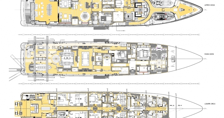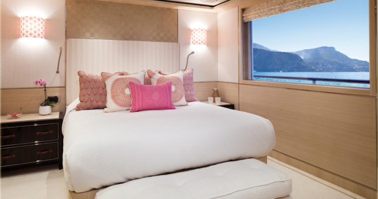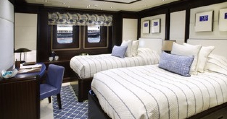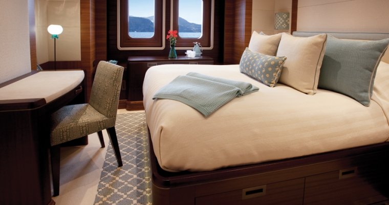 MAIN DECK: Master cabin (king size bed) in 100m2 suite comprising day lounge, office, dressing and bathroom UPPER DECK: 2 VIP cabins (queen size beds) LOWER DECK: 2 Double/Twin convertible cabins (convert to king size beds)and 2 Double cabins (queen size beds) BED SIZES: Master: king L199xW220(1x) VIP1: Queen L197xW155(1x) VIP2(La Salle) Queen L199xW155 (1x) Lower guest twins: L193xW98cm(2x) (Convertible to king size doubles) Lower guest doubles: L197xW155cm(2x)
