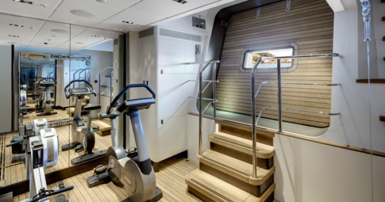 Full Beam master with lounge area and office , his and hers bathrooms Two double cabins with King Size beds One cabin with a double bed , a fixed single bed and a pullman. One cabin with two fixed single beds, an upper bunk single as well as a pull-out single best suited to a child. The gym within the midarrette contains 2 pullman single berths ideally suited to staff.