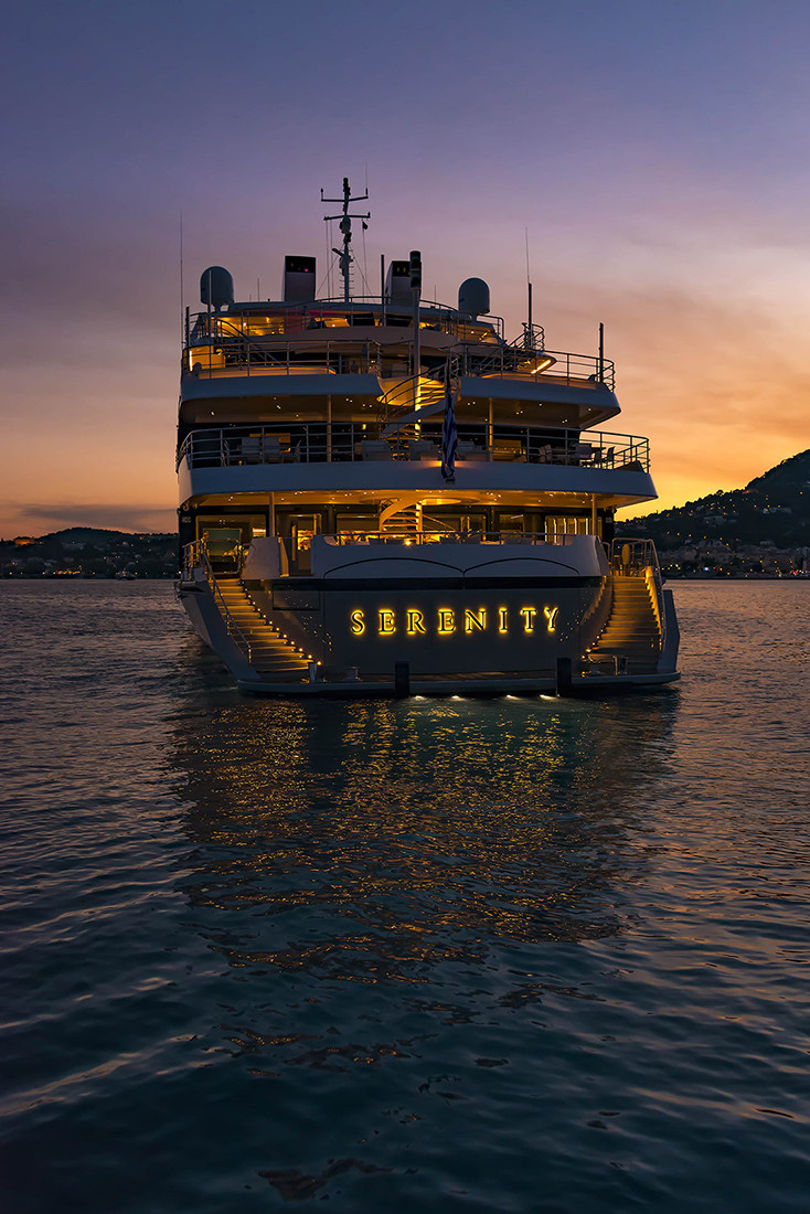 The 236.22ft /72m motor yacht, custom built in 2004 by Austal and last refitted in 2017. Previously named Tu Moana her luxurious interior is designed by AskDeco and her exterior styling is by Luiz de Basto Designs.Serenity's interior layout sleeps up to 30 guests in 15 rooms, including a master suite, 6 VIP staterooms, 5 double cabins, 2 twin cabins and 2 pullman beds. She is also capable of carrying up to 31 crew onboard to ensure a relaxed luxury yacht experience. Timeless styling, beautiful furnishings and sumptuous seating feature throughout to create an elegant and comfortable atmosphere. Serenity's impressive leisure and entertainment facilities make her the ideal charter yacht for socialising and entertaining with family and friends.She is built with Aluminium hull and Aluminium superstructure. This custom full displacement yacht also features ‘at anchor stabilisers’ which work at zero speed, increasing onboard comfort at anchor and on rough waters. Serenity is capable of 17 knots flat out, with a cruising speed of 14 knots.