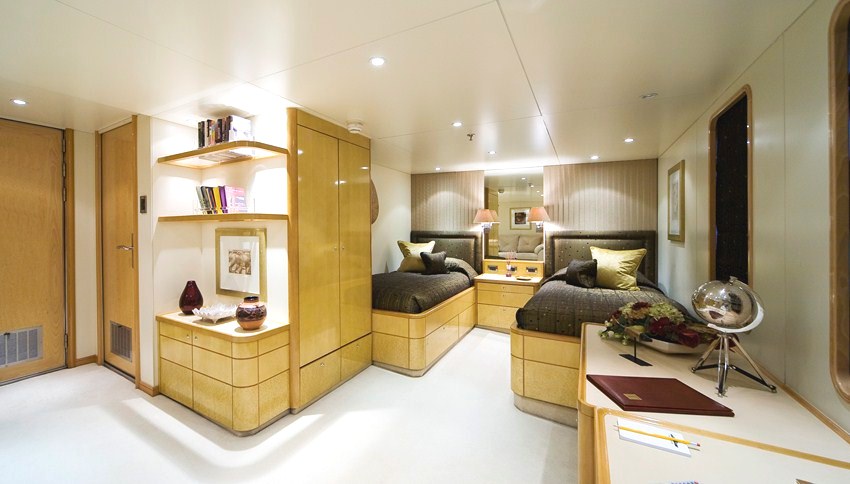 The 60m Titan was launched in 1968 by Brooke Marine as the Royal Navy vessel HMS Beagle. After an extensive rebuild completed in 2005 and a refit in 2008, she is now one of the most spacious and luxurious charter yachts available. The entire yacht is furnished in an English contemporary style using beech and bird's eye maple and the immense internal proportions result in an open, airy atmosphere. Titan sleeps 22 guests in large and light staterooms, including a 90 sqm master suite with separate lounge and bathroom ensuite. Below deck aft are three double junior suites (with a sofa) and a further two twin guest cabins. Two twin and two double junior suites (with a sofa) and one twin guest cabin are situated forward. The main saloon with cinema screen is ideal for small groups or as one large space for entertaining, linking up with the salon.On the upper deck is a library (with additional flatscreen / dvd), gymnasium and bar with sky lounge opening to a shaded terrace through automatic glass doors.Main deck exterior dining can seat comfortably 18 guests. The yacht has a state-of-the-art audio-visual entertainment system throughout. The yacht also has an extensive water-sports toy list to keep the active guests occupied! The Captain and his skilled crew of 20 will ensure a perfect charter holiday.
