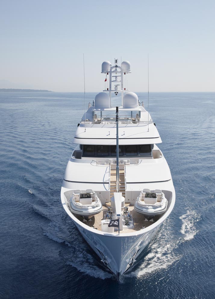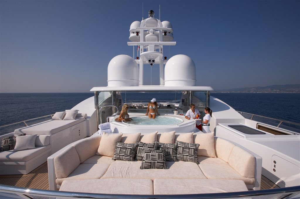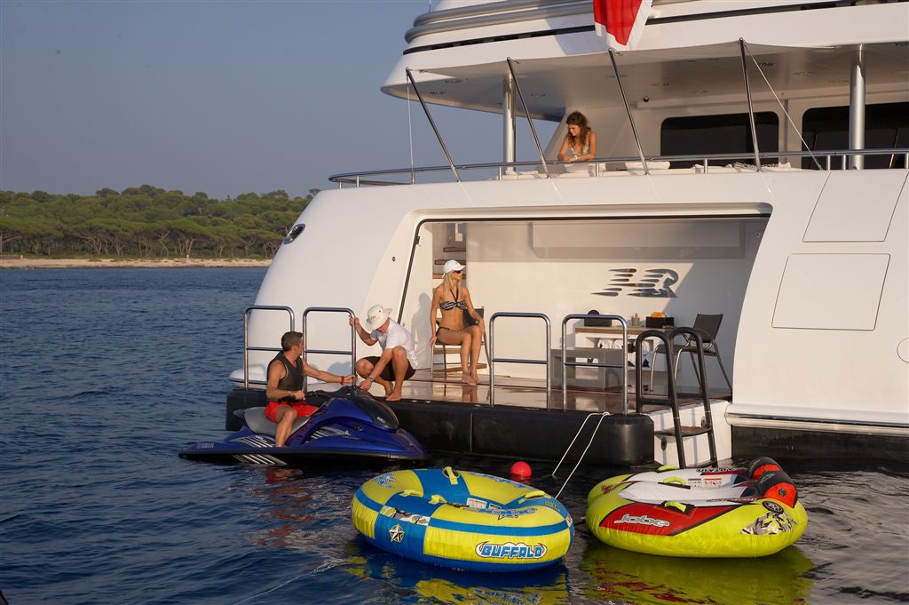 Tenders & Toys: 2 Custom Line Novurania tenders Volvo inboard/outboards 2 Yamaha GP1300R two-seater wave riders Seabob F5 S Water trampoline with mini slide Snorkelling equipment 2 Kayaks and paddles A large selection of towable toys, water skis, wake boards and kneeboard There is a mini gymnasium, equipped with a treadmill, Technogym - Spazio Forma running machine), Bowflex weights and a workout bench Fishing Gear Audio Visual Equipment and Deck Facilities: - SKY TV in the Mediterranean and Direct TV in the Caribbean via two synchronised (no reception shadow) Seatel 6003 dishes. - Flat screen TV's throughout. - Crestron control units for AV. Crestron also controls lights, curtains and air conditioning. - Ipod docking stations located in all guest areas, including cabins. - Kaleidescape gives access to a central store of CD and DVD’s. - U.S. power sockets located conveniently throughout. - Both tenders are in front which gives more space on the deck areas in the back - Jet ski’s come out directly on the side - Generator is extremely quiet – no vibration at all - Over 800 movies on board- up to the latest ones from June 2015 Communications: F-77 SatCom phone and fax. Seatel 4003 with Internet and Email capability. Wireless access to email and internet. GSM phone and fax. Panasonic (PABX) telephone exchange. VOIP communications available. 3G/4G cards provided 1 Meg on V.SAT