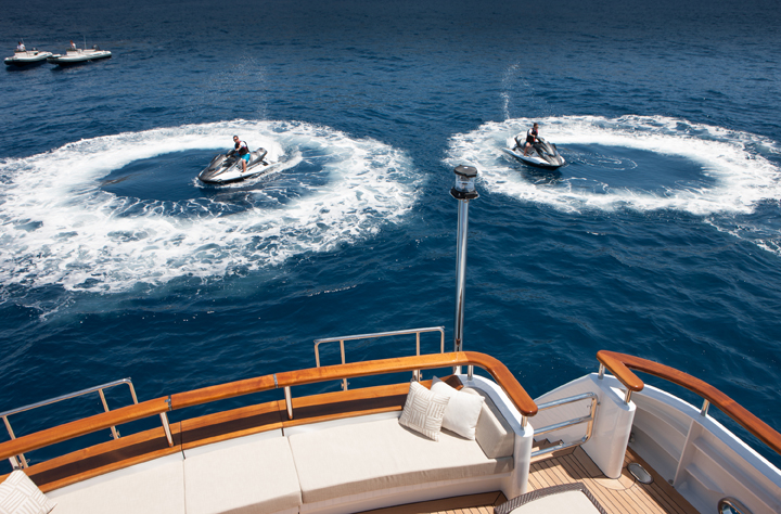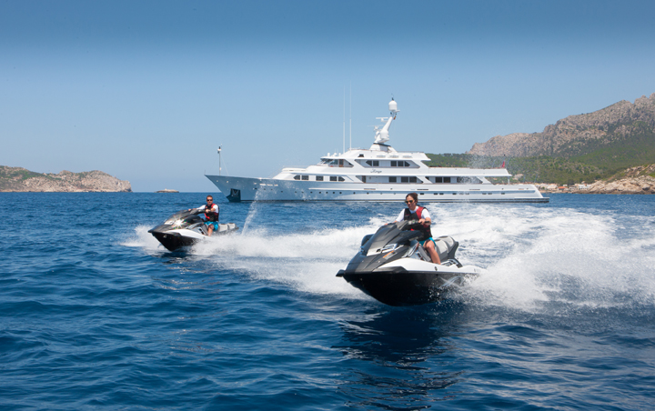 Tenders & Toys: Tenders: (2) 2010 6.5m BSC tender with 115hp Yamaha (1) Zodiac Emergency tender 15hp 2-stroke Yamaha Toys: (2) Yamaha VX cruiser waverunners (2) Ocean single Kayaks, Nalu 12.5 (2) Olympic Laser Dinghies with race sails (1) 10.6' Airstream IV 3-5 person Jobe (1) Hot Seat single person towable (1) Multi rider 6 person Jobe (1) Double Trouble 2 person towable Jobe (3) Wakeboards (2) SUP's (Inflatable) (2) All round water skis (1) Adult single slalom ski (1) Wake surfer (2) Wake skate (6) full sets of diving equipment Multiple sets of snorkeling equipment Diving board from boat deck Gym Equipment: Treadmill Rowing machine Weight bench, weights and dumbbells Exercise mat Swiss ball Audio Visual Equipment and Deck Facilities: Entertainment: Outdoor cinema on bridge deck, TV & Bose system with iPod cradles in all cabins, Sat TV in Master, VIP and Sky lounge/Outdoor cinema Sonos sound system with large music collection through out the yacht's outdoor and indoor public areas (with iPod cradles) Communications: Unlimited VSAT Broadband Internet (WiFi throughout the yacht)/VoIP , SatCom Tel/Fax, Fixed GSM phone, VHF and SSB Notes: The recently refitted MIRAGE superbly combines open and covered deck space with great internal volume. There are 8 cabins available including a Master and VIP on the main deck, 2 double cabins and 4 twin cabins on the lower deck. Her spacious living areas are designed with teak, subtle cream fabrics and contemporary furnishings. Her outstanding sun deck, with large dining area, huge sofas, and her vast main aft deck area, ensures outdoor living at its best. Content is not guaranteed, neither may it be used for contract purposes.