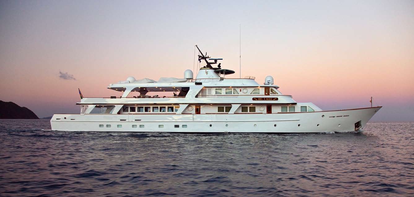 The 172.01ft /52.43m Custom motor yacht 'Big Eagle' was built in 1980 by Mie Zosen and last refitted in 2008 and again in 2017. This luxury vessel's sophisticated exterior design and engineering are the work of Mie Zosen. Previously named Papa's Place her luxurious interior is designed by Puleo Inc. and her exterior styling is by Mie Zosen. Her exterior is styled by the Mie Zosen team who are also responsible for the entire engineering package. The yacht's luxury interior styling is the work of Puleo Inc. & International Yacht Design.