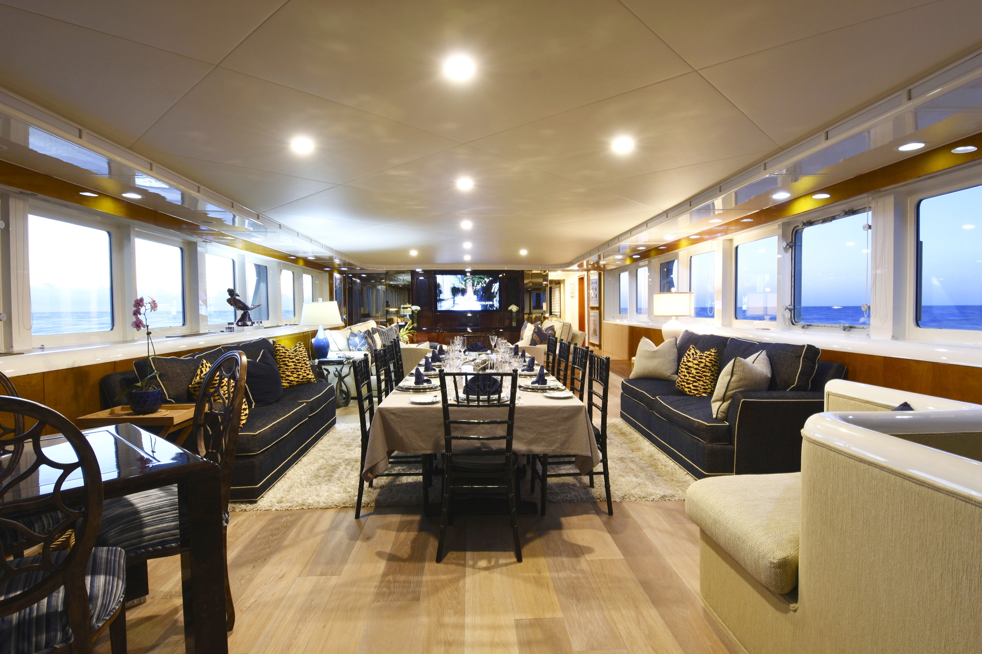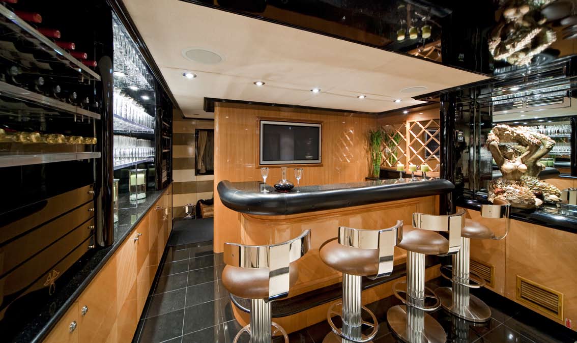 Tenders & Toys: • 32" Sea Vee w/ 2 x 300hp • 16" Ribcraft w/60hp • 4 x Waverunners • Big Water Slide • Water Trampoline • 2 x 2-person clear bottom kayaks • Scuba Gear, 6 sets of dive gear • Brownies Scuba Air compressor • Snorkel gear • fishing, • water skis • Wakeboard • tubes, Big Banana • Fitness Treadmill, • Stationary Fitness Cycle • Exercise Ball • Free weights • 4 bicycles • 2 stand-up paddle boards Audio Visual Equipment and Deck Facilities: FUJITSU plasma monitors in Main Salon and Bar Kaleidescape Movie and Music system throughout the boat 700+ movies Communications: JRC Inmarsat B Telephone/Fax/Telex System JRC Inmarsat C Telex NERA Inmarsat Mini-M Telephone Fax SEA 330 SSB SEAtel 2 x laptops for guest use 2 x USA cell phones 2 x European cell phone lines Notes: NSSL KU-Band Maritime Satellite Internet Service High speed Sports Bar with wine chiller Terrycloth robes in every stateroom 3000 gpd watermakers
