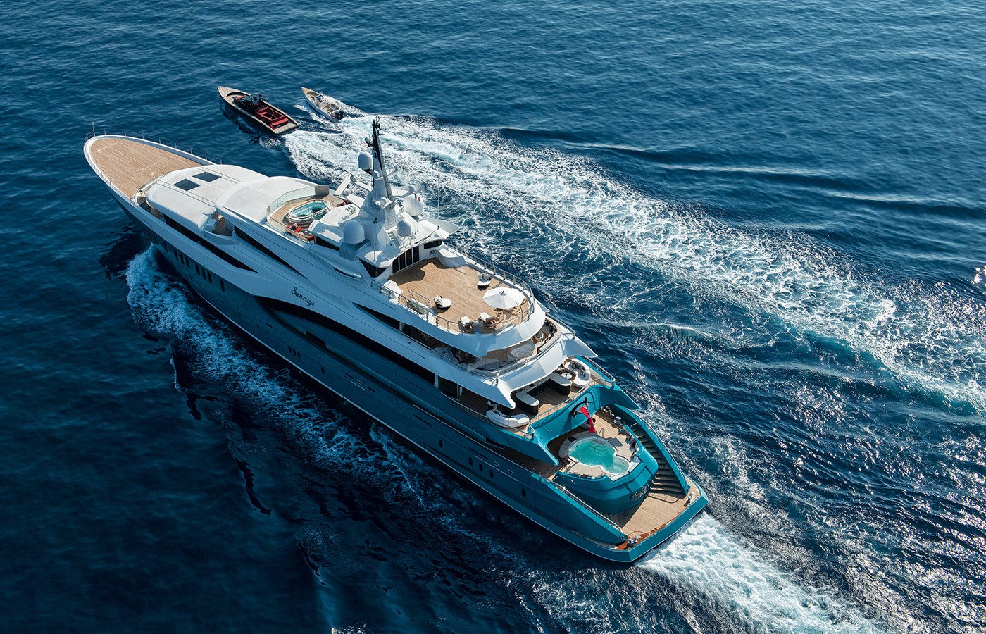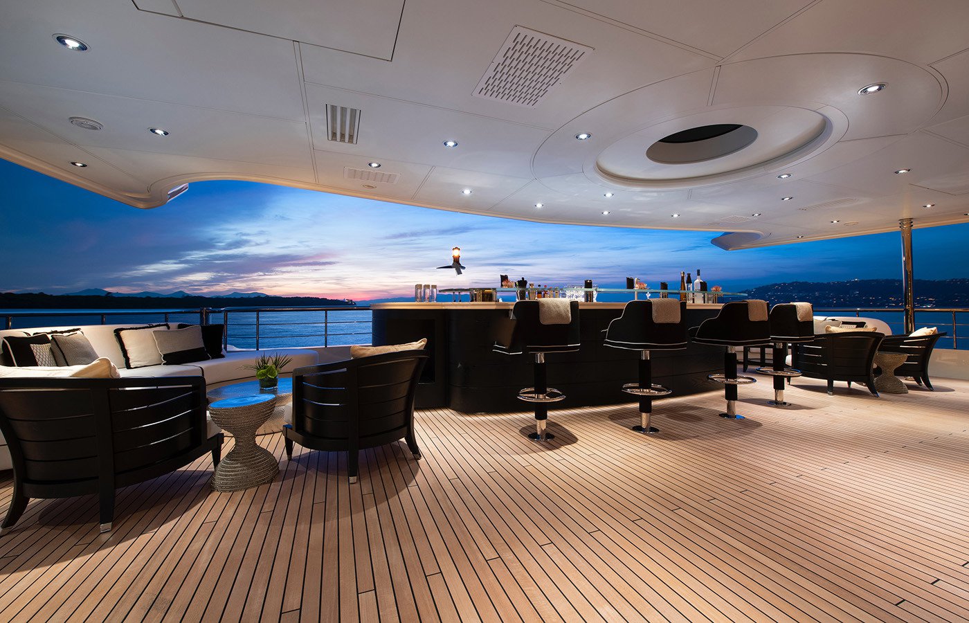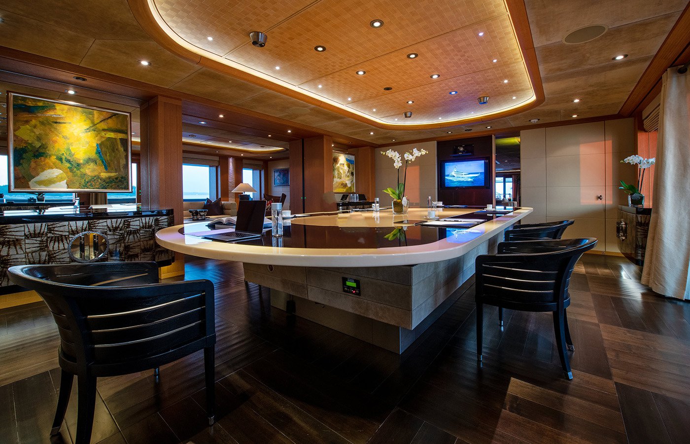 Launched in 2010, motor yacht SUNRAYS is an 85.5m (280'6") OceAnco vessel, built under the project number Y705. A superior vessel, in size, design and quality, the yacht represents a very important accomplishment for the Dutch yacht builder, boasting striking exterior design by Bjorn Johansson Design and naval architecture by Azure Naval Architects while her elegant and modern interiors were created by Terence Disdale Design. SUNRAYS sleeps 16 guests in 8 deluxe cabins. NOTABLE FEATURES: ~ Spa pool ~ Elegant interior styling with lavish furnishing ~ Spacious dining areas ~ Vast sundeck and plenty of space for sunning ~ Superb water toys Superyacht SUNRAYS has a softly curved teal coloured aluminium superstructure - an exterior design shape which was designed by the masterful Bjorn Johansson Design which was built with a steel hull and topped with an aluminium superstructure. Indeed an interesting feature of the design is that all of her 4 exterior decks reveals soothing water features - blend perfectly with the beautifully curved superstructure. On her bridge deck resides the Spa Pool spa, as well as a bamboo-finished lounge which can be transformed into a movie theatre arena. The owners’ input is evident in the layout of the spa lounge which can also be converted into a movie theatre. On the sun deck a semi-enclosed air-conditioned bar, fully equipped with cooking facilities, separates the forward spa area from the aft sun-bed lounge deck. Luxury yacht Sunrays had her naval architecture produced by Azure Naval Architects Oceanco, and her heavenly interior design is the work of Terence Disdale, as aided by the yacht’s owner. Whilst the interior offers generous living areas including a full-beam lounge and spacious dining room. A multifunctional interior is created with built-in table tops which have been recessed and hidden in the ceiling. This means the luxury yacht can be flexible for various entertaining and private occasions. M/Y SUNRAYS also boasts a foldable exterior bulwark allowing her dinner guests wonderful unobstructed ocean views. Superyacht SUNRAY (Y705) is based on the proven technical Oceanco Y700 platform. Her exterior is by Björn Johansson Design and her interior by Terence Disdale Design and she is certain to stand out amongst other large yachts. The large dining room can be converted into a video conference room with the optional use of the adjacent library. The standard foldable exterior bulwark assures guests an unrestricted view while dinner is served.