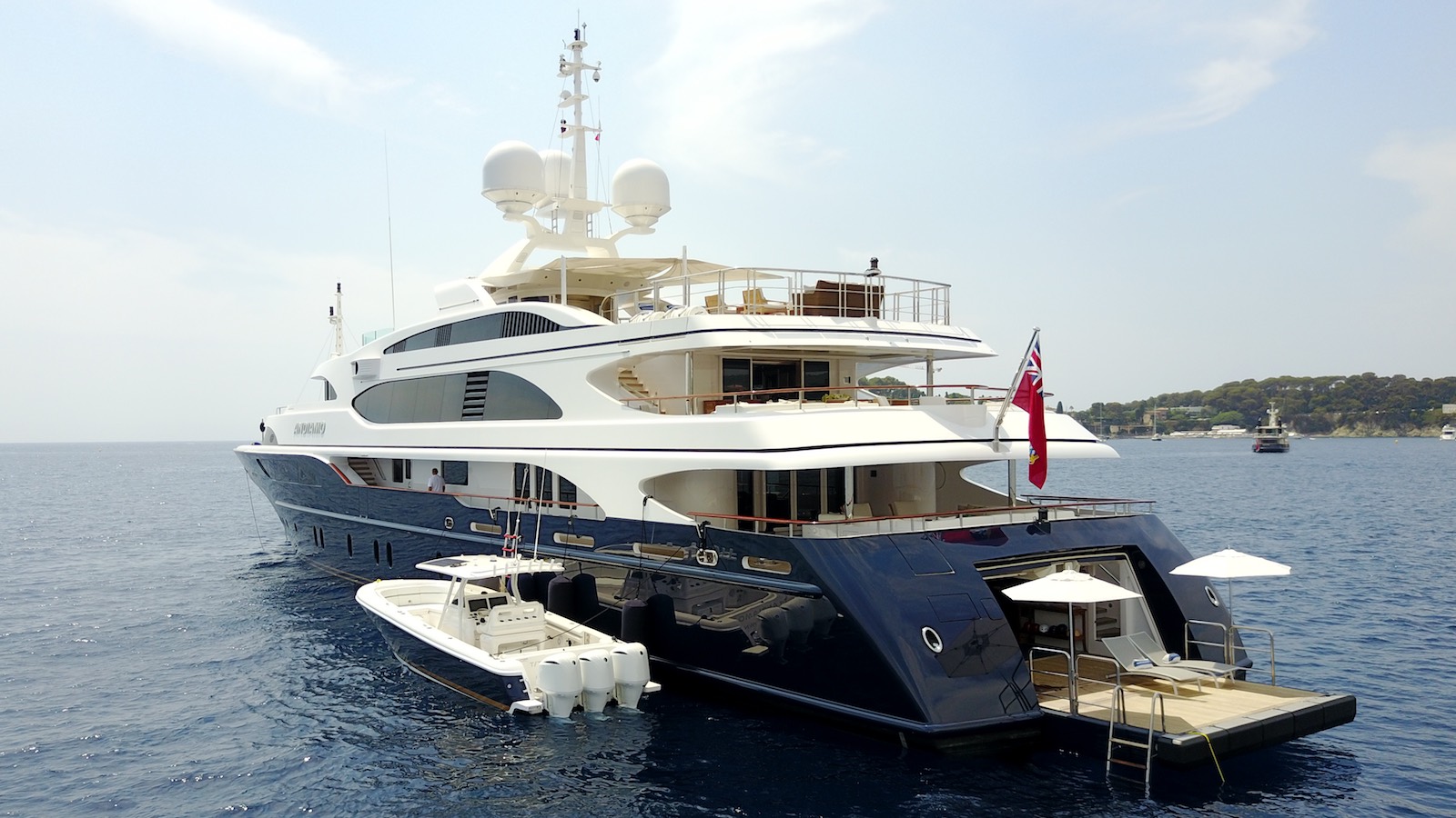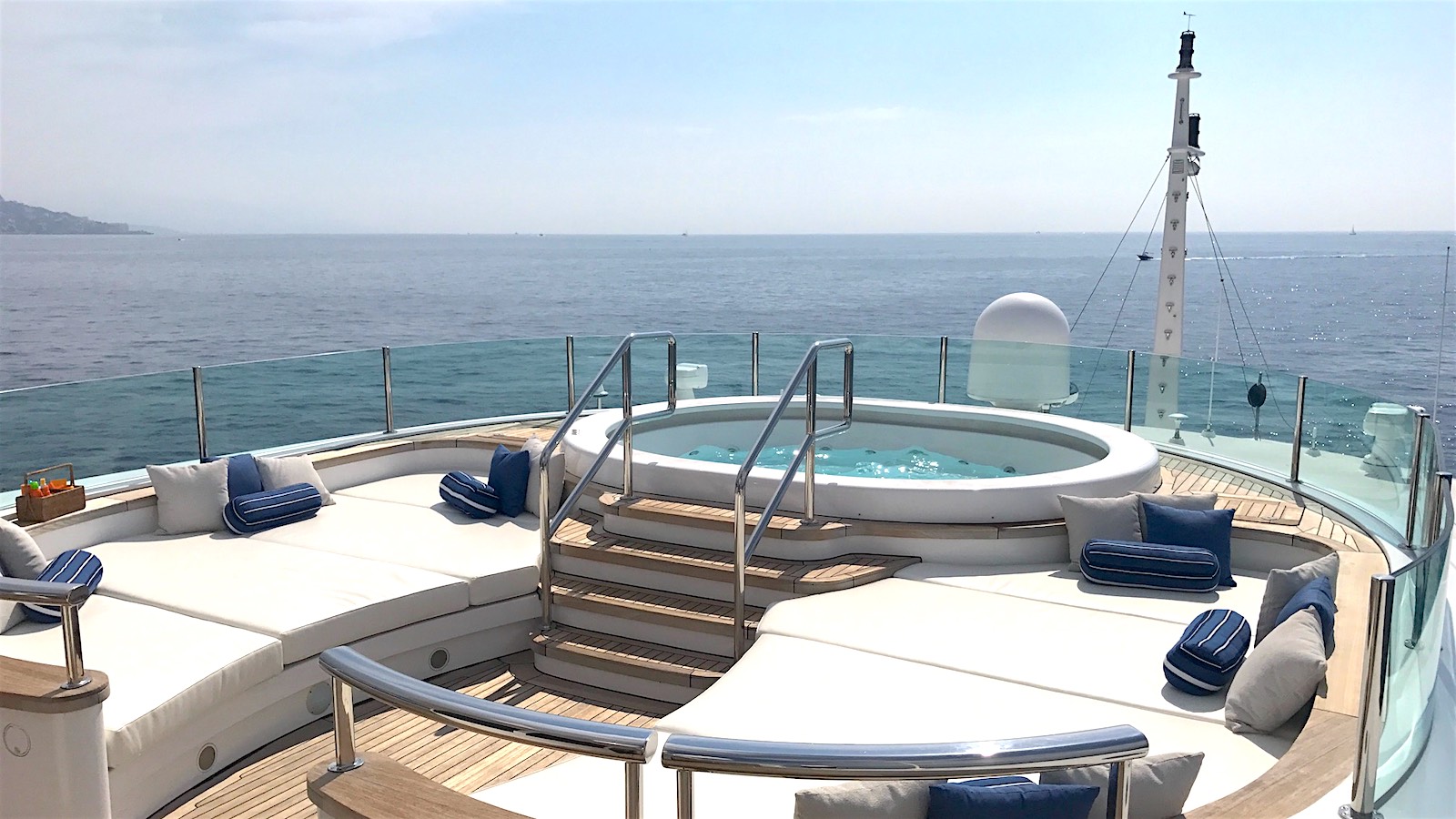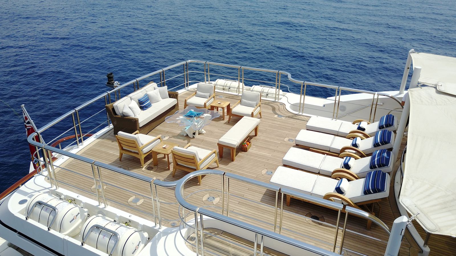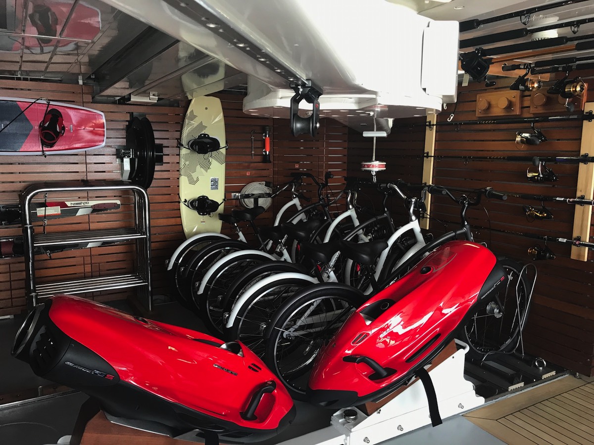 Tenders & Toys: _________ 11.27 m / 37 ft Intrepid / 3 x 300 hp (towed) 6 m / 19 ft Pascoe / 160 hp 2 x waverunners, 2 x Seabobs, wakeboards , kneeboard, 2 x paddleboards, 2 x inflatable kayaks, 2 x rigid glass bottom kayaks, inflatable swimming pool, waterskis, towables, snorkeling gear, etc. Exercise equipment: see gym on sundeck _______ Audio Visual Equipment and Deck Facilities: SAT TV, Apple AirPlay, iPod docking stations, WiFi Custom audio/visual system Communications: VSAT