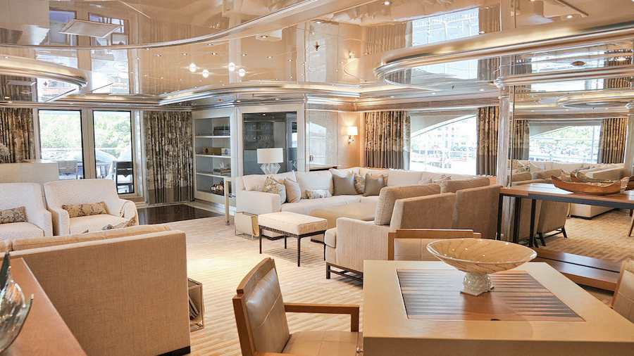 Six en suite staterooms. Elevator to all decks. Central spiral staircase from accommodation deck to skylounge. Custom BEST audio/visual system with remote controls for air-conditioning, lights, curtains, TV and video library STATEROOMS: MASTER SUITE. KING (centerline facing forward). Full width. Main deck forward Private office at entrance 2 armchairs to starboard His/hers bathrooms each with shower port and starboard Private lounge forward (facing aft) Skylounge Deck VIP QUEEN. Skylounge deck/starboard. Shower. Vanity and arm chair Below QUEEN. Aft starboard. Shower. Vanity, arm chair QUEEN. Aft port. Shower. Vanity, arm chair QUEEN. Forward starboard. Pullman berth. Shower TWIN. Forward port. Pullman berth. Jacuzzi
