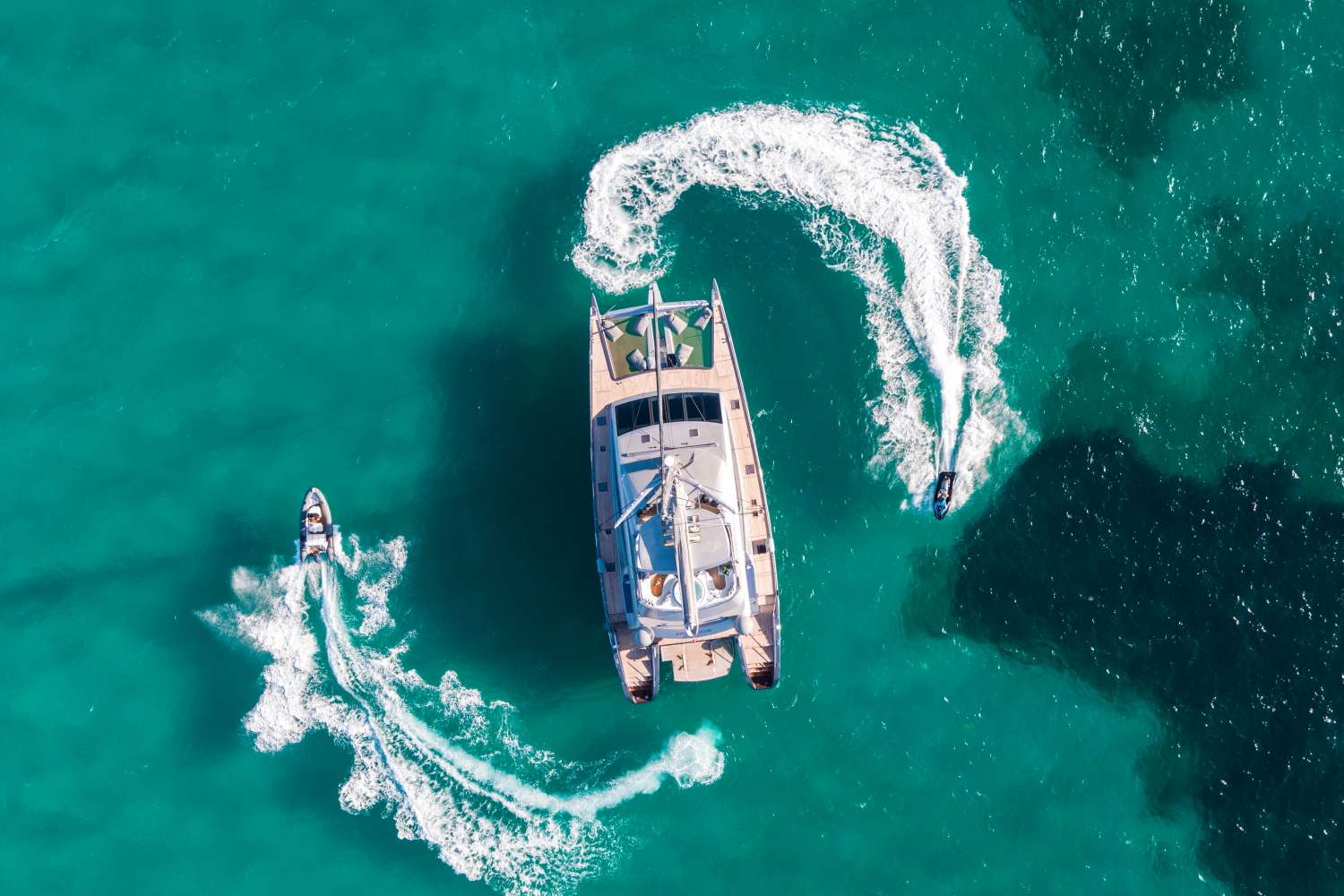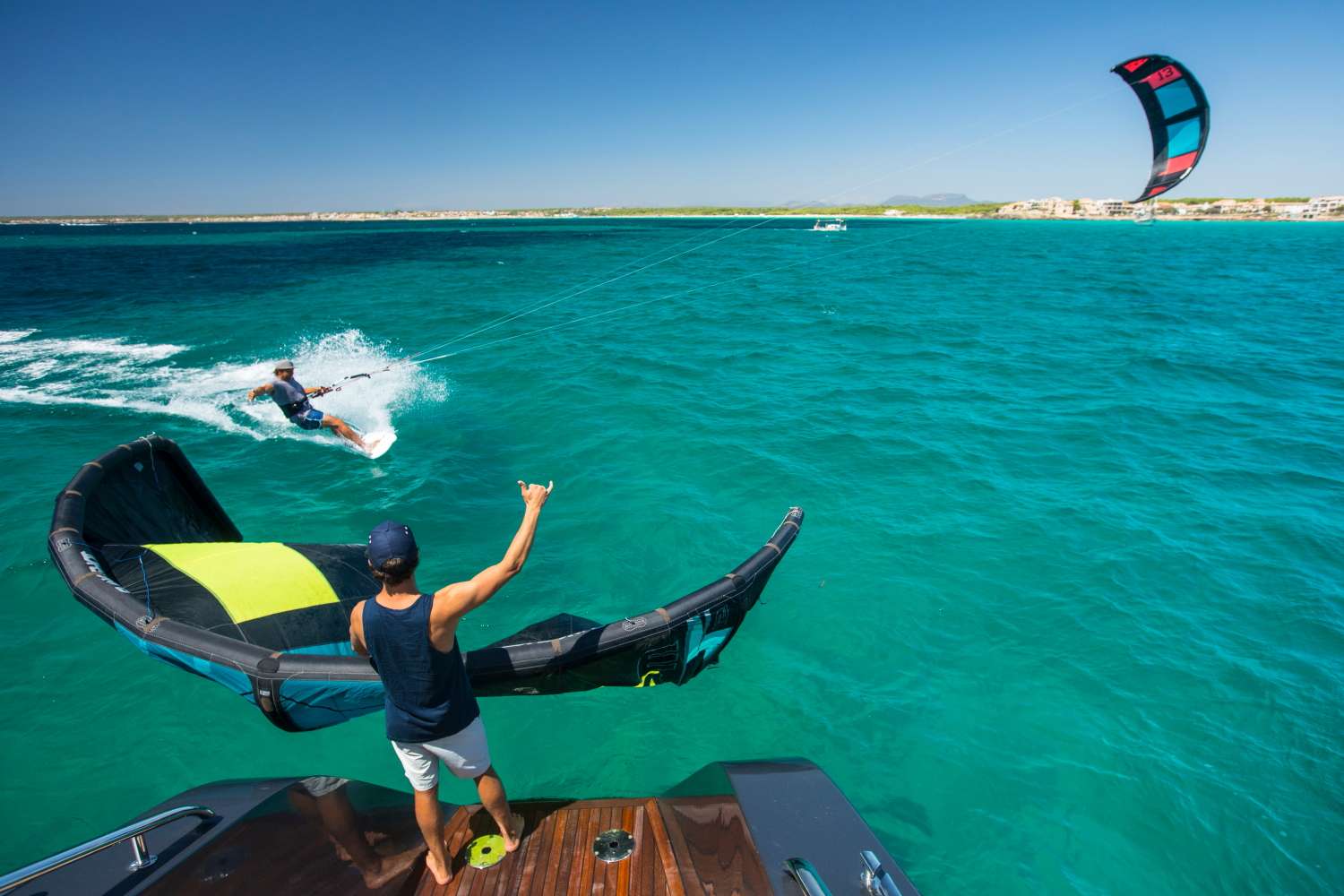 Tenders & Toys: Tender 1: Seadoo Gtr 230 (2017) Tender 2: Rib-eye 500 100HP (2017) 2 x SUP 2 x Seabobs F5 Radinn Wakejet Waterskis Wakeboard Dive compressor Dive Gear Snorkel Gear Fishing Gear KITESURF on request! ( AN ADDITIONAL CHARGE OF € 10.000 / WEEK) Outdoor Cinema;