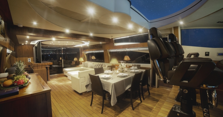 Tenders & Toys: Novurania 3.6 mt. with 40 hp outboard Jet ski seadoo RXP Seabob F7 S.U.P. (stand up padle) Banana ( small ) Donut ( single Seat) Wakeboard ( small size) Water ski Snorkelling equipment Audio Visual Equipment and Deck Facilities: 1. 4 G network all around Audio Visual 1. Saloon 50 inch tv Apple tv Dvd Surround Sat tv 2.Master cabin 40 inch tv Apple tv Dvd Surround Sat tv 3.Vip cabin 40 inch tv Sat tv 4. Port and Std. cabin 21 inch tv Dvd Sat tv through Saloon decoder