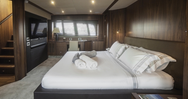 Guest Accommodation: Accommodation in One Master cabin with walk - in wardrobe, One VIP cabin and Two convertible cabins all with ensuite facilities Bed dimensions 1. MASTER : 2 X 1,85 2. VIP : 1,85 X 1,50 3. PORT & STARBOARD : 1,90 X 0.80 / As a bouble : 1,90 X 1.90
