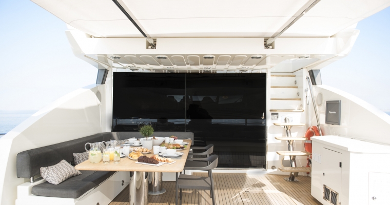 Blade 6 is an open style performance sports yacht capable of a maximum speed of 33 knots. Built in 2009, she offers a wide range of activities and equipment for sea lovers. A beautifully designed yacht, she has a timeless styling and elegant furnishings. This modern, sleek and sexy Sunseeker accommodates up to eight guests in four cabins. Her professional and welcoming crew of four will ensure that guests have unforgettable experiences in the Mediterranean waters. Blade 6 has a luxurious and elegant interior that consists of four cabins for eight guests, a spacious master cabin on the lower deck, two double cabins and a VIP cabin on the lower deck. She is complete with 4G wifi network throughout and an extensive music & DVD library in the salon and cabins. The yacht boasts deck spaces ideal for relaxing, sunbathing and entertaining with family and friends both on the sundeck and upper deck. She offers a wide range of activities and large equipment for sea lovers.Her lovely crew of four offers a continuous service and makes your time on board unforgettable.
