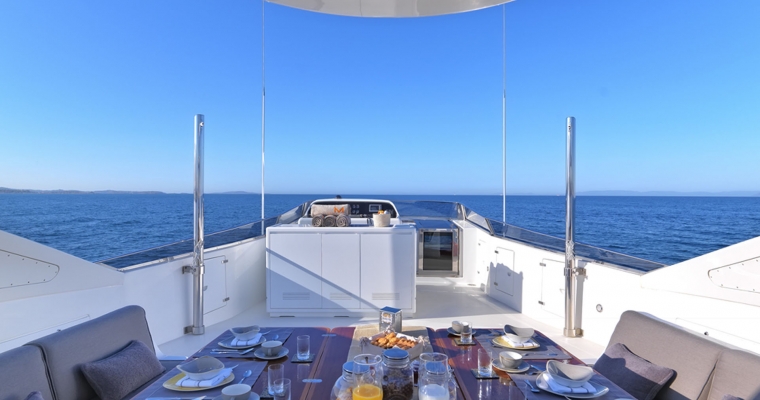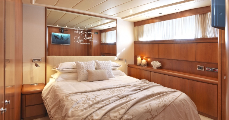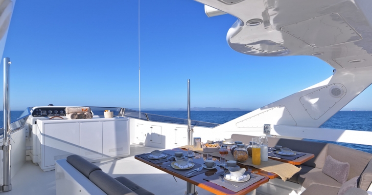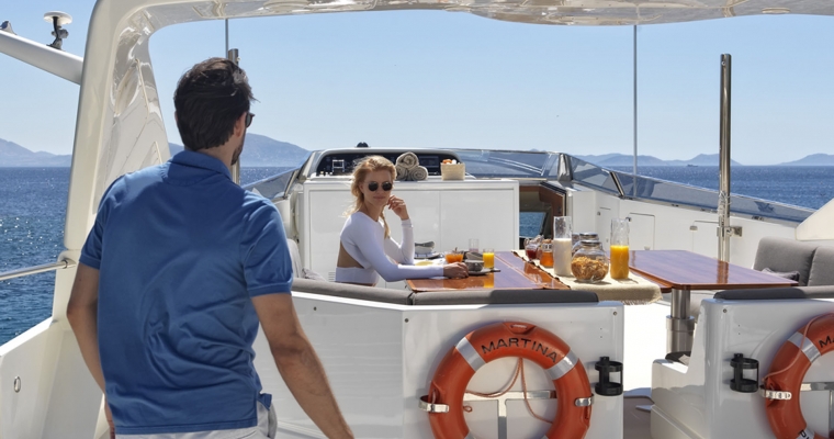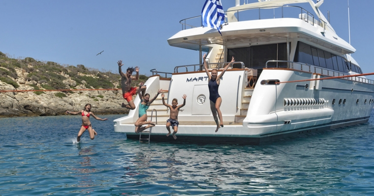 A beautiful, elegant luxury yacht in impeccable condition, Martina provides the comfort and spaces usually found on a larger yacht. She has a smooth and fresh interior and can comfortably accommodate twelve guests in five staterooms including two VIP Cabins, a Master cabin and twin cabins with pullman beds. Martina is the ideal 30m charter yacht and is also available for theme charters. Each year the yacht donates a percentage of its charter revenues to support non-profit organisations that protect marine life.