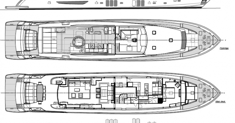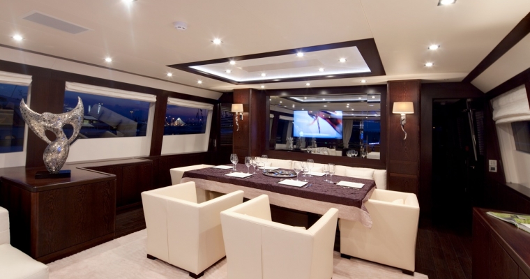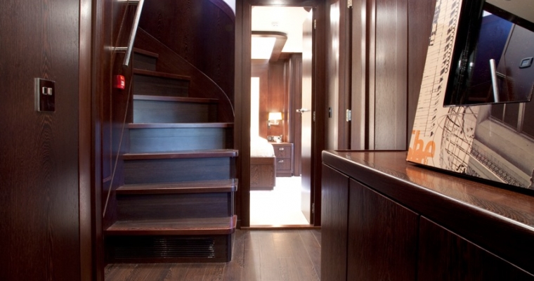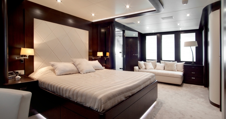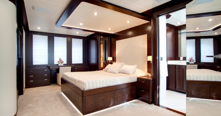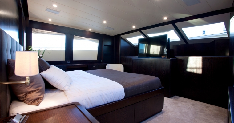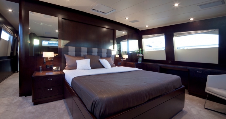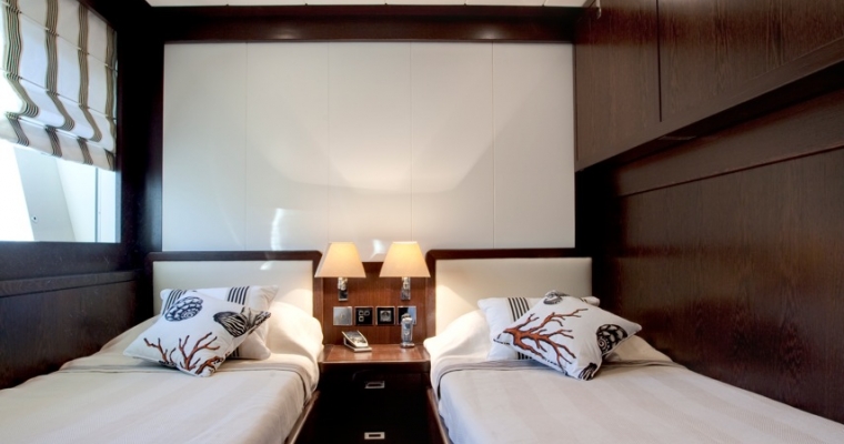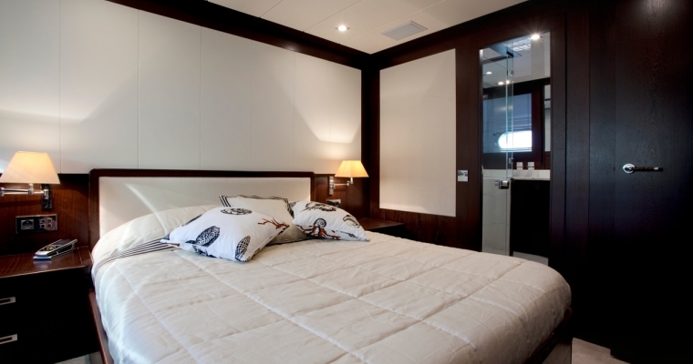 VIP on main deck Full beam master cabin on lower deck Mini VIP, 2 twin also on lower deck. 2 Pullman berths available for extra guests / children in 2 twin cabins.