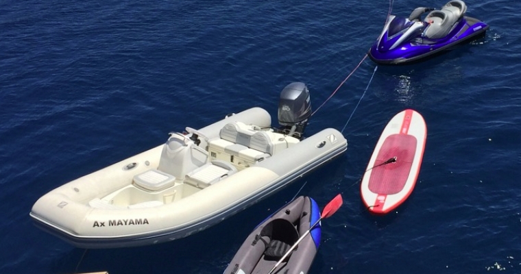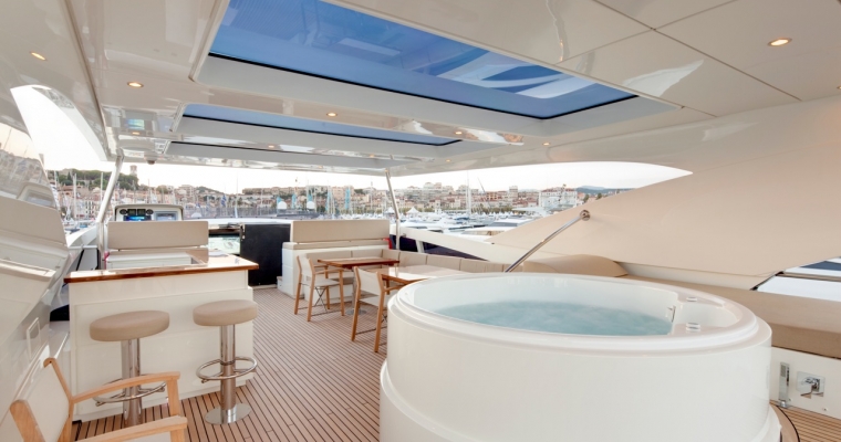 Tenders & Toys: - 4,70m Zodiac tender 100 hp outboard - Waverunner Bahama 3 man - 4 Seabobs (3x Cayago F5 & 1x F5) - 4 Paddle boards - 3 man kayak - Water skis - Wakeboard - Towable & Inflatable Toys (Banana, Butterfly, Donut) - Snorkeling gear - Diving equipment (by rendez-vous) - Optional: 2 Robstep (like Segways) & Jelly Fish pool - 450 Movies and music available. Audio Visual Equipment and Deck Facilities: MAYAMA II boasts latest on-board technologies, for example all lights, curtains and audio/video system are controlled by i-Pad. From Salon and any cabins on board, guests can access a Video and Music server. We have 450 HD movies available in English and French Communications: System upgraded in 2016 Jacuzzi on spacious fly bridge - Zero Speed Stabilizers