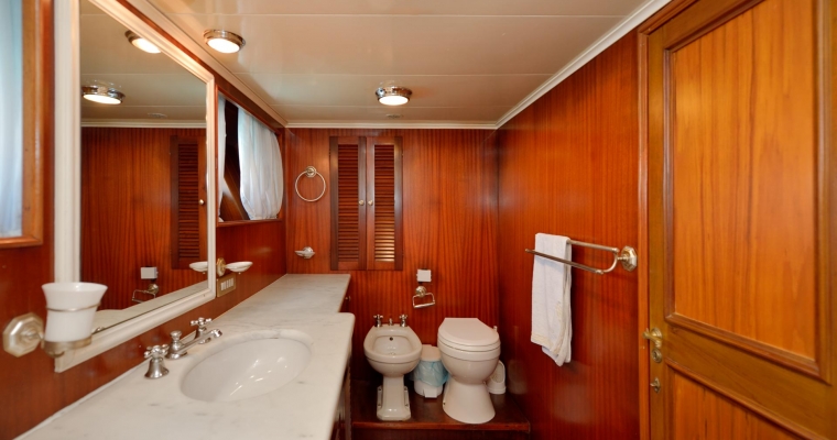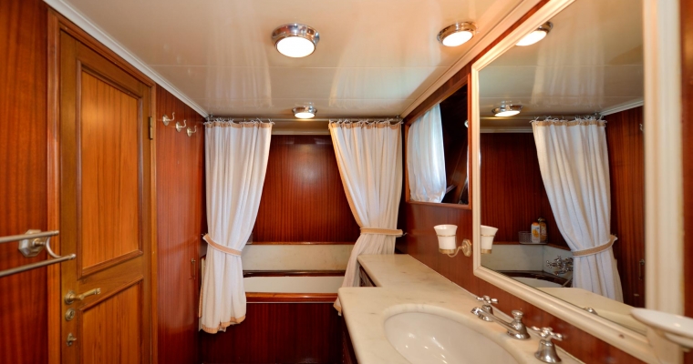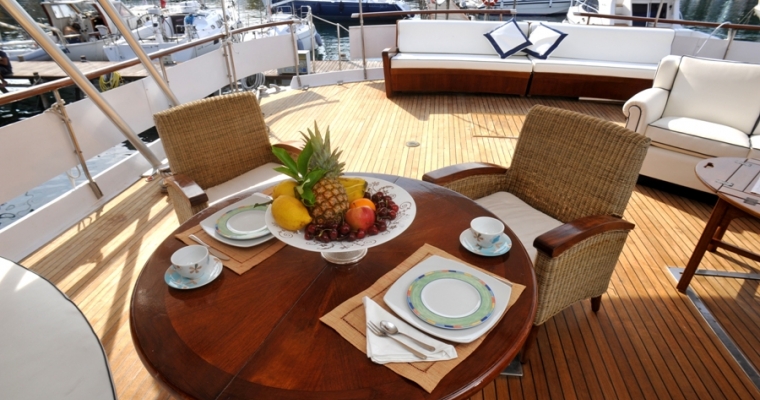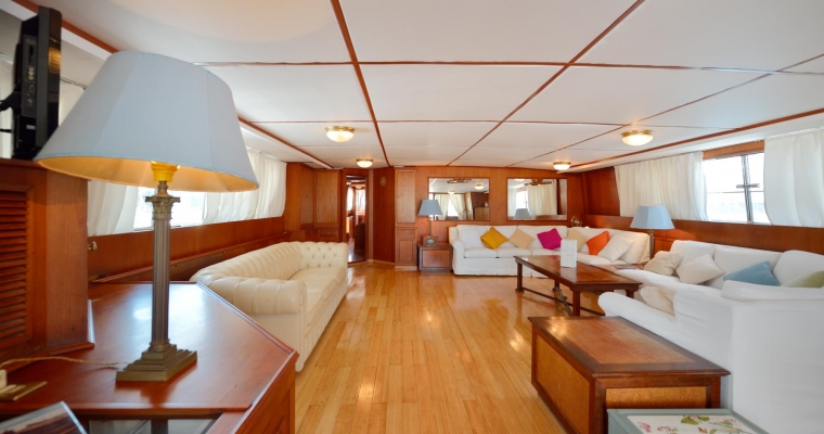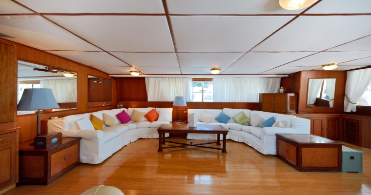 Nafisa is an elegant and luxurious yacht refitted in 2005 and 2015. She offer excellent accomodation for 10/11 guests in a magnificent Owner' s stateroom including full widht, one VIP guest's suite , one new cabin with double bed and 2 spacious twin cabins en-suite. The comfort includes three dining areas, a private sundeck, swimming platform and Jacuzzi on flying bridge. Professional crew of 5. Her incredibly elegant classic style interiors offer a relaxing ambience ideal for private and family cruising.