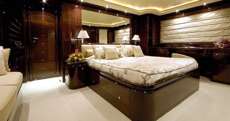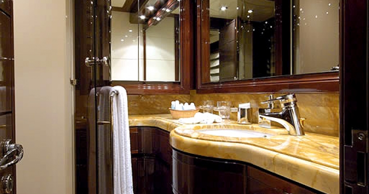One Master Cabin with double bed. bathroom ensuite with jacuzzi Two double guest cabins , each with bathroom ensuite Two twin cabins (the twin beds have been enlarged) each with an extra pullman bed and their bathroom ensuite