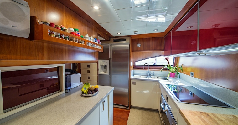 Tenders & Toys: 1 x 4,5 mt Castoldi Jet Tender 1 x 3 mt Novamarine Tender with 15 HP Yamaha engine 1 x JetSki Yamaha 1 x Banana Boat 1 x Stand Up Paddleboard (SUP) Water Skis Snorkeling gear Audio Visual Equipment and Deck Facilities: B&O audio e video equipment in each cabin with Satellite receiver 42\\\" B&O Plasma TV and Sorround audio in the main salon Retractable Plasma TV in the Aft-Deck