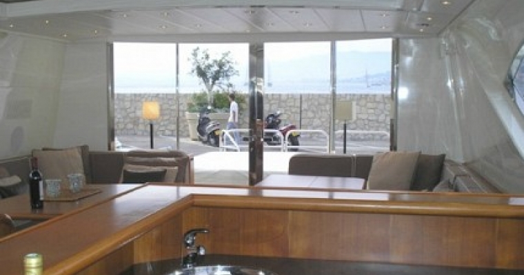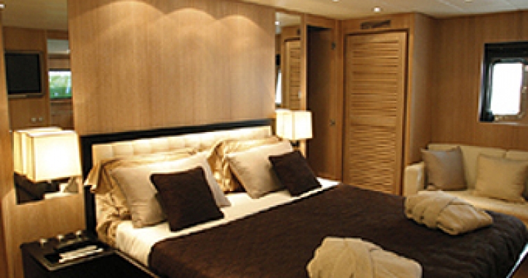Luxury charter yacht BEST MOUNTAIN has a bright an simplistic interior. Her main salon features a camel toned L shaped sofa, light wood panels, smooth teak floors and a large flat screen TV, the space is open and airy thanks to large custom Leopard port lights. The BEST MOUNTAIN motor yacht offers guests the best of both worlds with a second on-deck salon with ample seating, a dining table and smaller drinks tables and pop up TV, a retractable roof allows the fresh sea breezes and wonderful night sky to flow through. Charter yacht BEST MOUNTAIN is the ideal yacht for sunning and enjoying the Mediterranean. The aft deck boasts a large sunpad which can convert into an alfresco dining table, a generous full beam swim platform is perfect for making the most of the selection of water toys aboard, while forward a massive sunpad offers guests a further sunning and relaxing area.