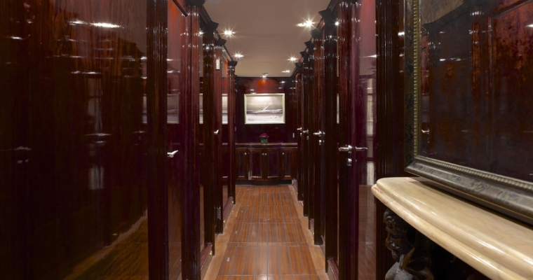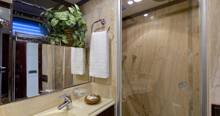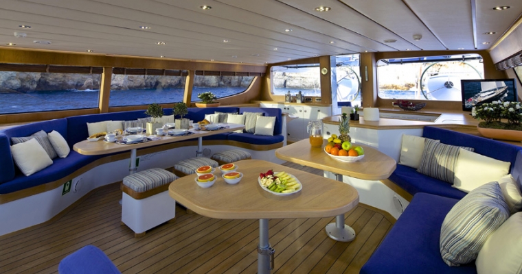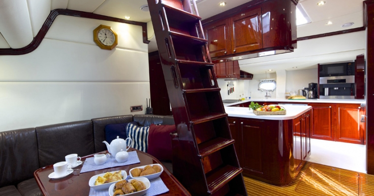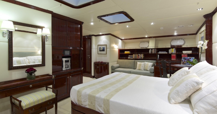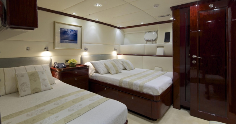 Guest Accommodation is located in Lower Deck: One Master cabin with double bed. Two cabins with a double bed in each. One cabin with one double bed, one single bed and a Pullman berth. All cabins are located in the lower deck and have en suite facilities.