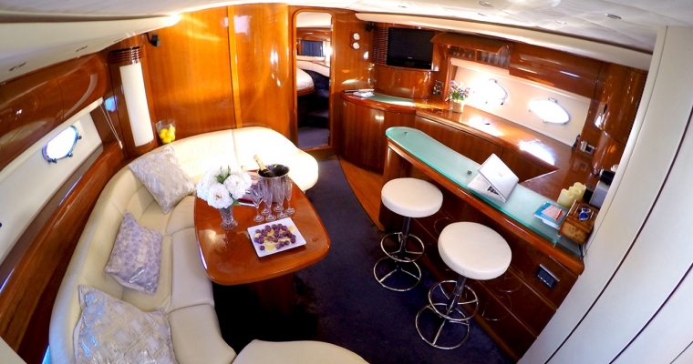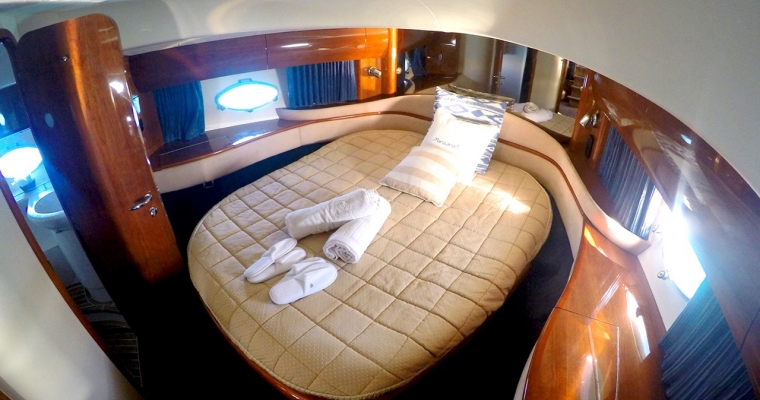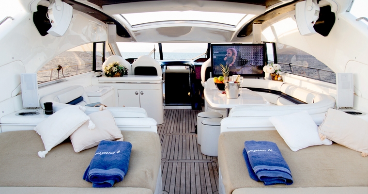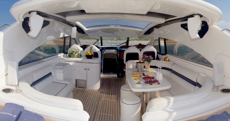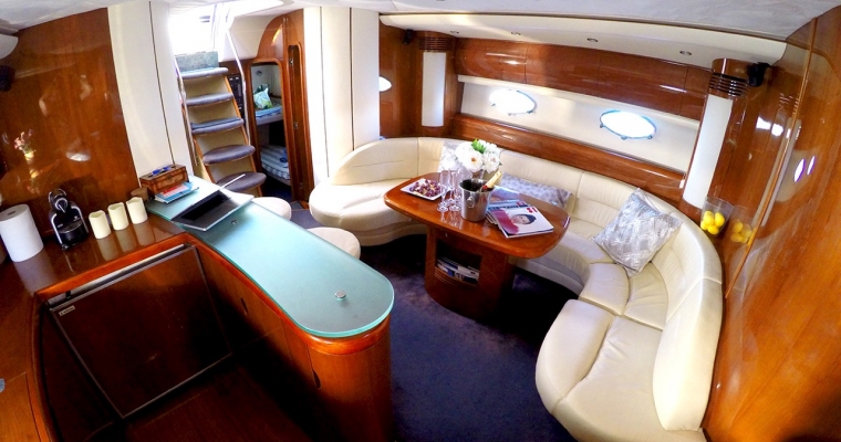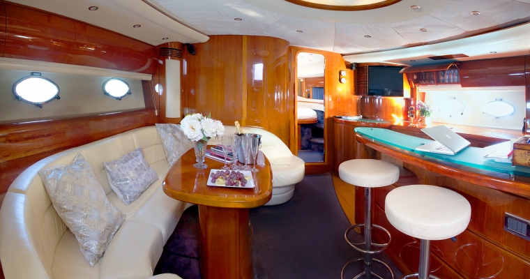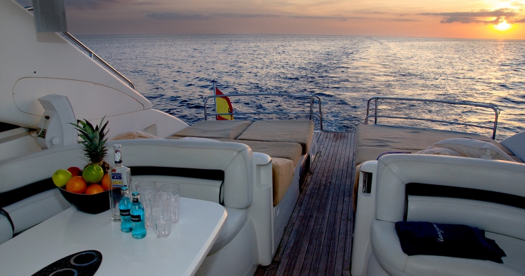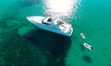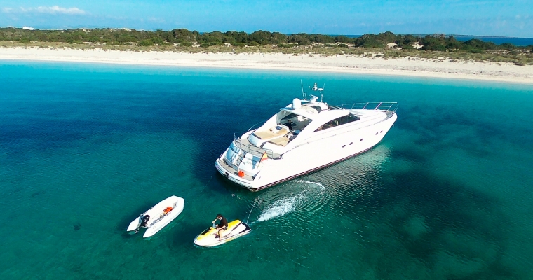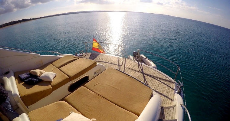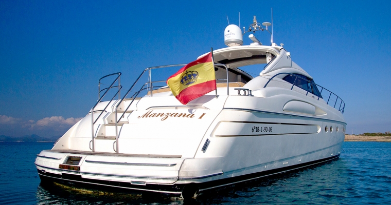 Manzana is one of the most renowned yachts in the island of Ibiza as she has been doing charters for few years and has a fantastic reputation. This Princess V65 is perfect for a family charter as offers accommodation for 6 guests in 3 comfortable cabins. Many clients also rent Manzana for a day charter as can feature 12 guests sailing and the huge deck space is ideal to enjoy the crystal clean waters of Formentera and the beaches of Ibiza.