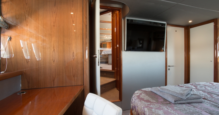 Tenders & Toys: Tender with outboard engine 30 hp Paddle surf Water skis Wakeboard Dohugnut for 3 pax Snorkelling gear Audio Visual Equipment and Deck Facilities: SAT TV in saloon SAT TV in master and VIP cabin Hi-Fi system