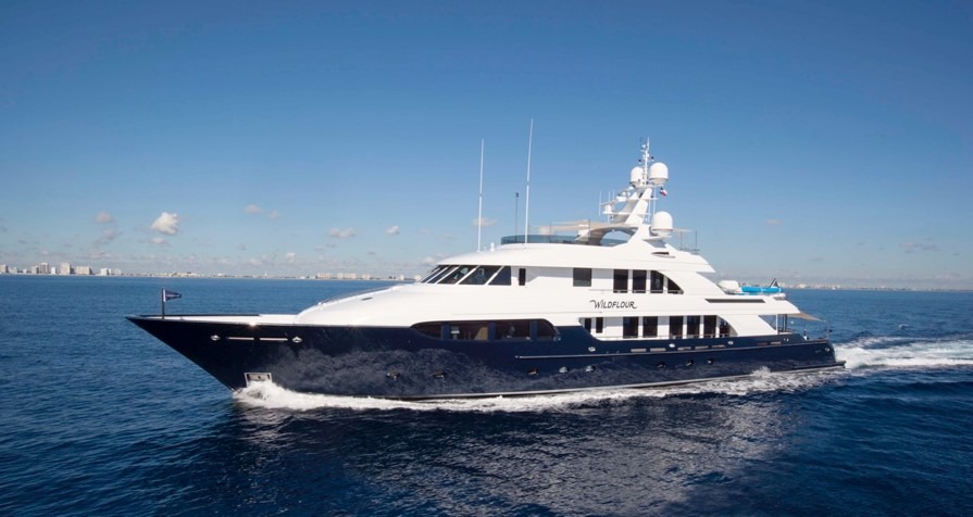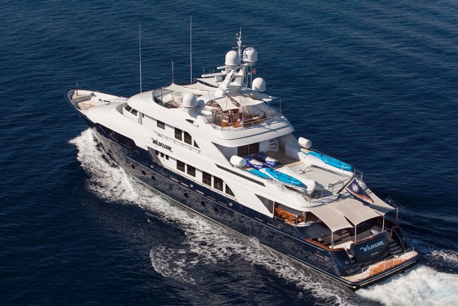 WILDFLOUR is a 156’ luxury superyacht built by Delta Marine in 2008, and refit in 2016. Her naval architecture is by Jay Minor and her interior design is by Tom Stringer. She is recognized by her deep blue composite GRP hull and white superstructure. WILDFLOUR has many interior options for entertaining, dining and relaxing across three decks. Her main salon, decorated in neutral tones, offers guests a comfortable yet elegant setting. Forward of the salon is the formal dining area, with an eye catching marble table. Her skylounge is a great spot for cocktails or snacks with its plush seating and complete wet bar. Exterior options include the main aft deck, accessed via large sliding glass doors from the salon. Spread across two decks, this space has an al fresco dining area, lounge seating, and optional partial shade. Her massive sundeck includes chaise lounges, a BBQ and prep station with al fresco dining area, a full wet bar, a hot tub, and optional shade from extending Bimini covers. There is an excellent selection of water toys and sports available to guests of WILDFLOUR. Spend your days scuba diving, fishing, jet skiing, kayaking, wakeboarding, or water skiing.