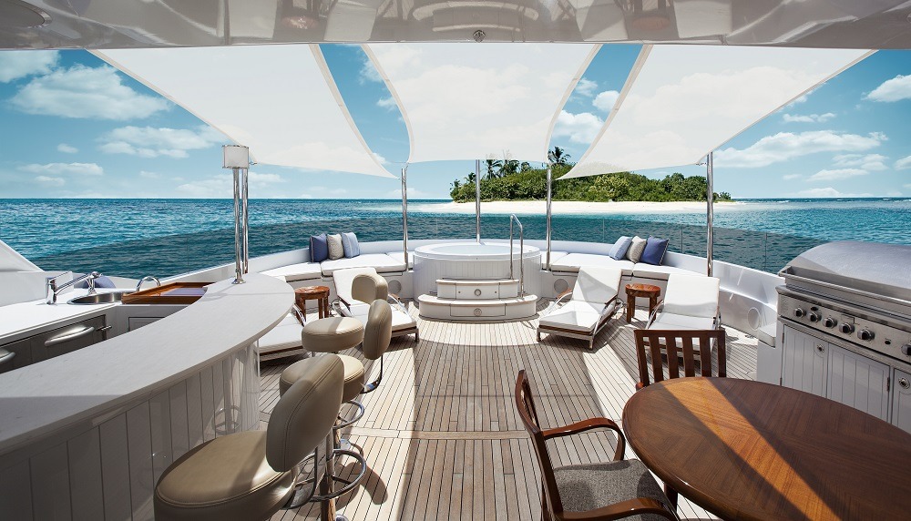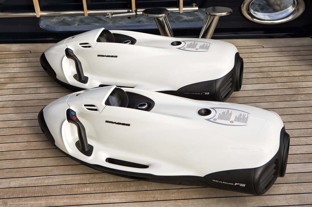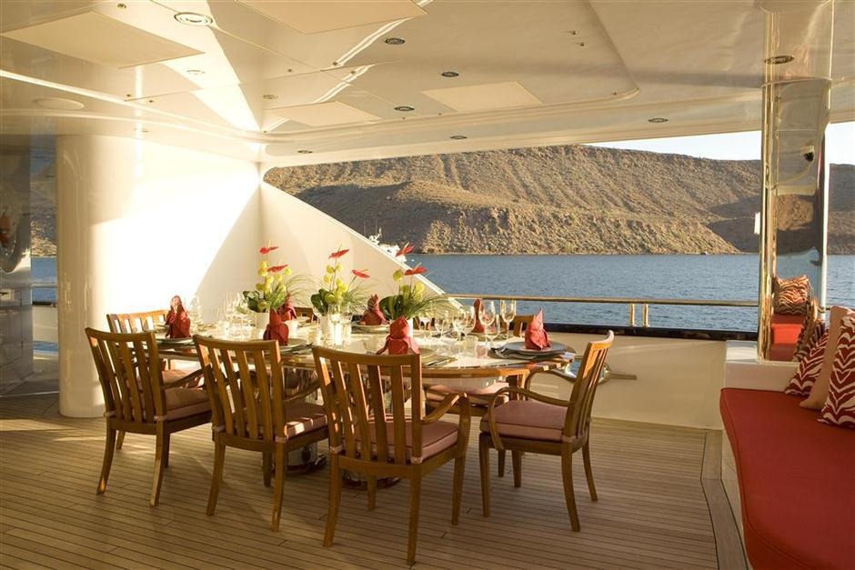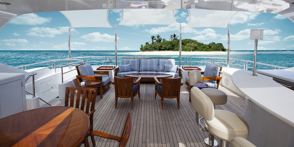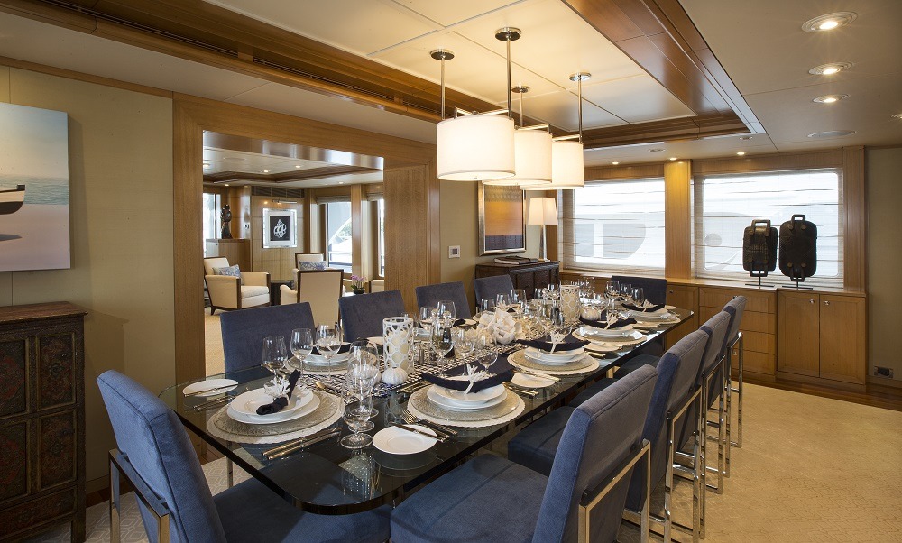 Tenders & Toys: Tenders 39' SeaVee Custom with Triple 300HP Verado’s (available for winter season 2017/2018) 19' New AB Inflatable with 150 HP Yamaha Toys 2 - 2017 Sea Do Jet Skis 2 - 2016 NF-5 SeaBobs 4 - 2 person Hobie Kayaks 2 - 1 person Eddyline Kayaks 1 New Zapata Pro-X Flyboard 1 Wake Board Miscellaneous inflatable’s 1 Custom T shaped stern swim raft Fishing Tackle/Rigs for all species – inshore and offshore Dive Equipment can be used for rendevous diving only 20 full sets of masks and fins for guests in various sizes Brownie's Third Lung w/3 hookups running from the SeaVee Exercise Equipment 1 New Octane Pro-4700 Elliptical 1 New Kaiser M3i Spin Bike Audio Visual Equipment and Deck Facilities: Sat Com KVH Tracphone Fleet 77 Sat Com C Furuno Felcom 15 Satellite Phone KVH VOIP SSB Icom ICM802 SSB VHF 2 x Furuno VHF FM 8800D with repeater at Nav Table and Captain’s Cabin PEP-WAVE HD-4 GIGI 6H Network supplying high speed V-Sat data, high speed cellular data and high speed WIFI data Communications: All rooms have access to APPLE and PLEX entertainment system, Satellite TV, CCTC cameras, Nobeltec chart display, AM/FM radio. RTI Control Through IPADS Satellite TV 2 x KVH HD 11 World Wide Satellite TV System Sky Lounge 49" Samsung HD 4K LED TV Yamaha Receiver Sirrus XM SAT Radio Direct TV Apple Airplay Apple TV w/on board movies and TV Section Main Salon 49" Samsung HD 4K LED TV Yamaha Receiver Direct TV Sirus XM Satellite Radio Apple Airplay Apple TV w/on board movies and TV Section Aft Deck 49" Samsung HD 4K LED TV Yamaha Receiver Direct TV Apple TV with on board movies and TV Section Apple Airplay Sirus XM Satellite Radio Flybridge 49" Samsung HD 4K LED TV Yamaha Receiver Direct TV Apple TV with on board movies and TV Section Apple Airplay Sirus XM Satellite Radio Master Cabin 49" Samsung HD 4K LED TV Yamaha Receiver Direct TV/DVR Apple TV with onboard movies and TV section Apple Airplay Sirus XM Satellite Radio Guest Cabins (4) X4- 40" HD 4K LED TV's Yamaha Receiver Direct TV Apple TV with on board movies Apple Airplay Sirus XM Satellite Radio Captain’s Cabin 22” Samsung ARCAM DVD player 20” Incigna TV and monitor Crew Cabins Samsung 19" HD LED TV's Aquatic CD/DVD players Crew Mess 25” Samsung TV ARCAM DVD player 19” Samsung monitor for CCTV ECR 21“ LG monitor for ships monitoring, CCTV and TV
