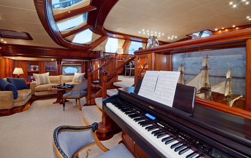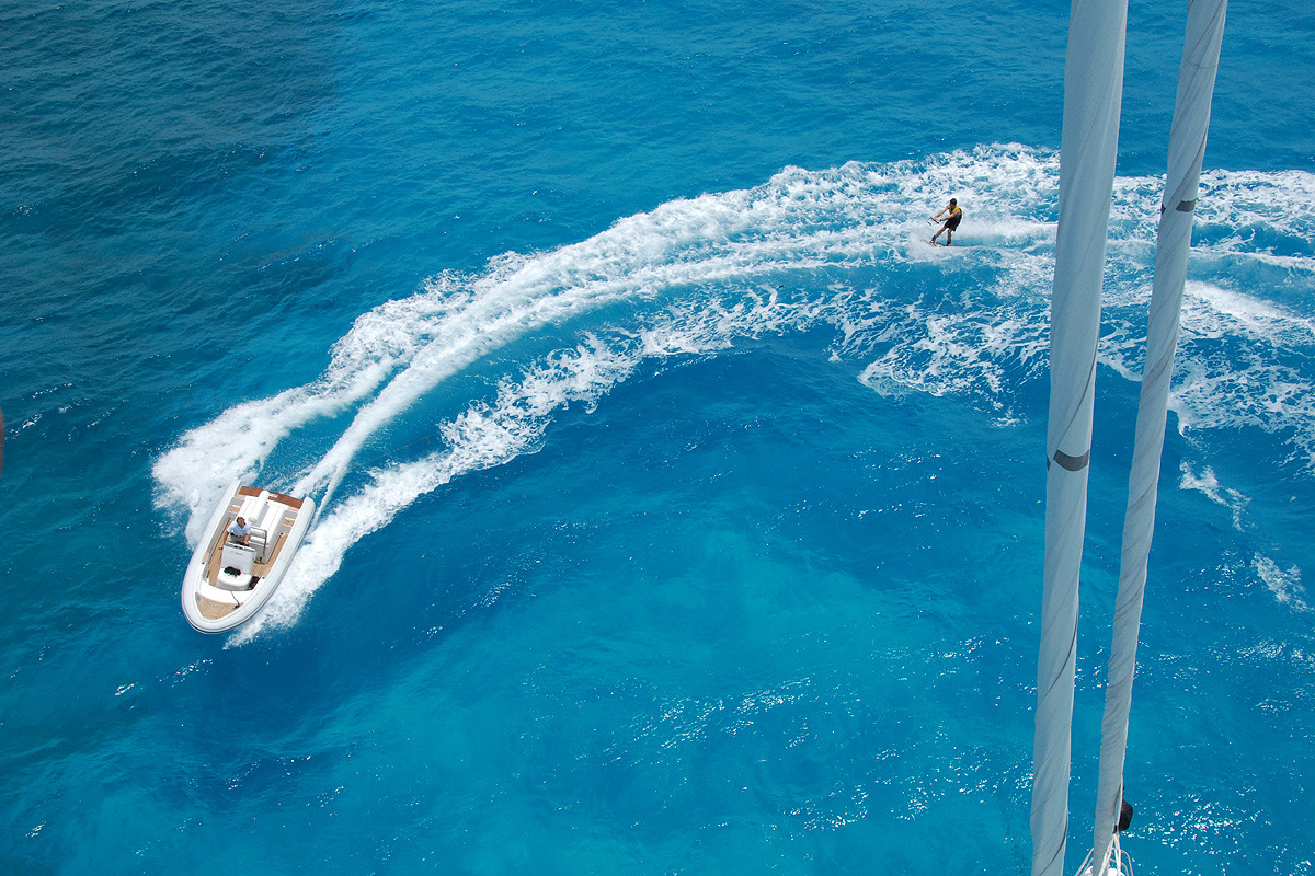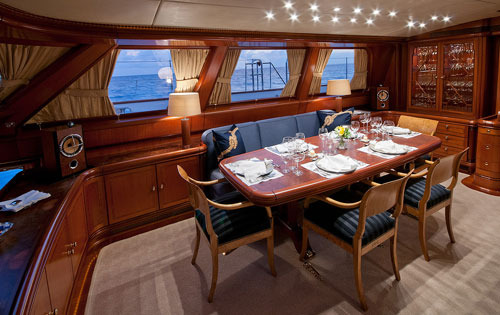 Tenders & Toys: 5.4m custom McMullen and Wing 165 hp diesel tender Zodiac inflatable tender with Yamaha 40 2-stroke 2 sets of kite surfing gear wakeboard water skis towable inflatables fishing equipment snorkeling gear Audio Visual Equipment and Deck Facilities: 42' Plasma Screens in saloon and owner's cabin 20' screen in guest cabins Sony independent DVD player Seascape stereo music system throughout the yacht - 9 independent zones with access to 2,000 CD albums in MP3 format from a central hard disc No satellite TV but 800 movies to choose from via computer touch system. This system will change during the September refit Communications: VSAT, phone, fast internet (a little slower than Broadband) VHF Radiotelephone 1 Siemens Hicom 130 wireless telephone exchange with 21 extensions 2 x GSM phones Iridium hand held phone
