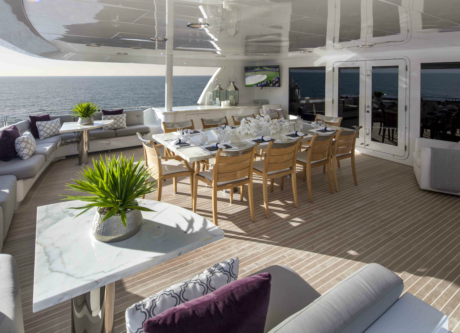 Tenders & Toys: 20 ft / 6 m Novurania / 200 hp 2 x 3-man SeaDoo Spark (high speed), 1 x Seabob, 2 x kayaks, waterskis, wakeboard, 2 x paddle boards, snorkel gear, inflatable toys, fishing equipment Beach gear: loungers, umbrellas, tent, table/chairs Audio Visual Equipment and Deck Facilities: Apple TV / music system throughout. Surround sound throughout the interior / exterior XBox & Wii Communications: Satcom, VSAT