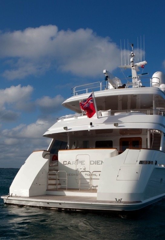 Carpe Diem II (formerly Imagine) is a 45.72m motor yacht, custom built in 2002 by Trinity Yachts. This luxury vessel's sophisticated exterior design and engineering are the work of Trinity Yachts. Her exterior is styled by the Trinity Yachts team who are also responsible for the entire engineering package. She was last refitted in 2011. Carpe Diem II yacht has a aluminium hull with a aluminium superstructure with a beam of 8.53m (27'11"ft) and a 2.10m (6'10"ft) draft .This custom semi-displacement yacht is equipped with an ultra-modern stabilization system which reduces roll motion effect and results in a smoother more enjoyable cruising experience. She also features bow thrusters making her more manoeuvrable at low speeds. Carpe Diem II is built to comply to MCA and ABS standards.