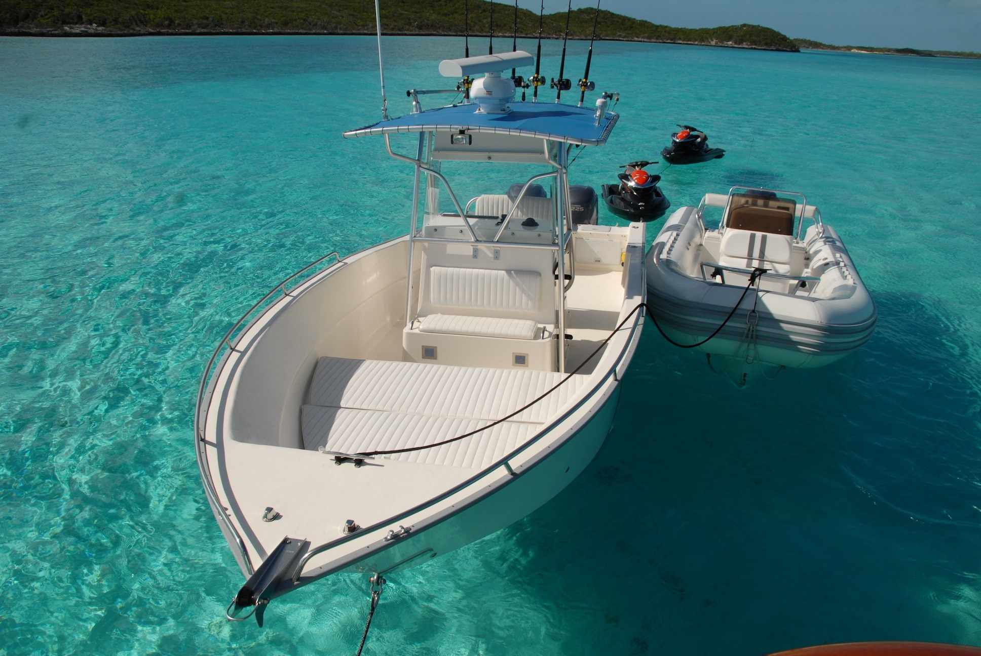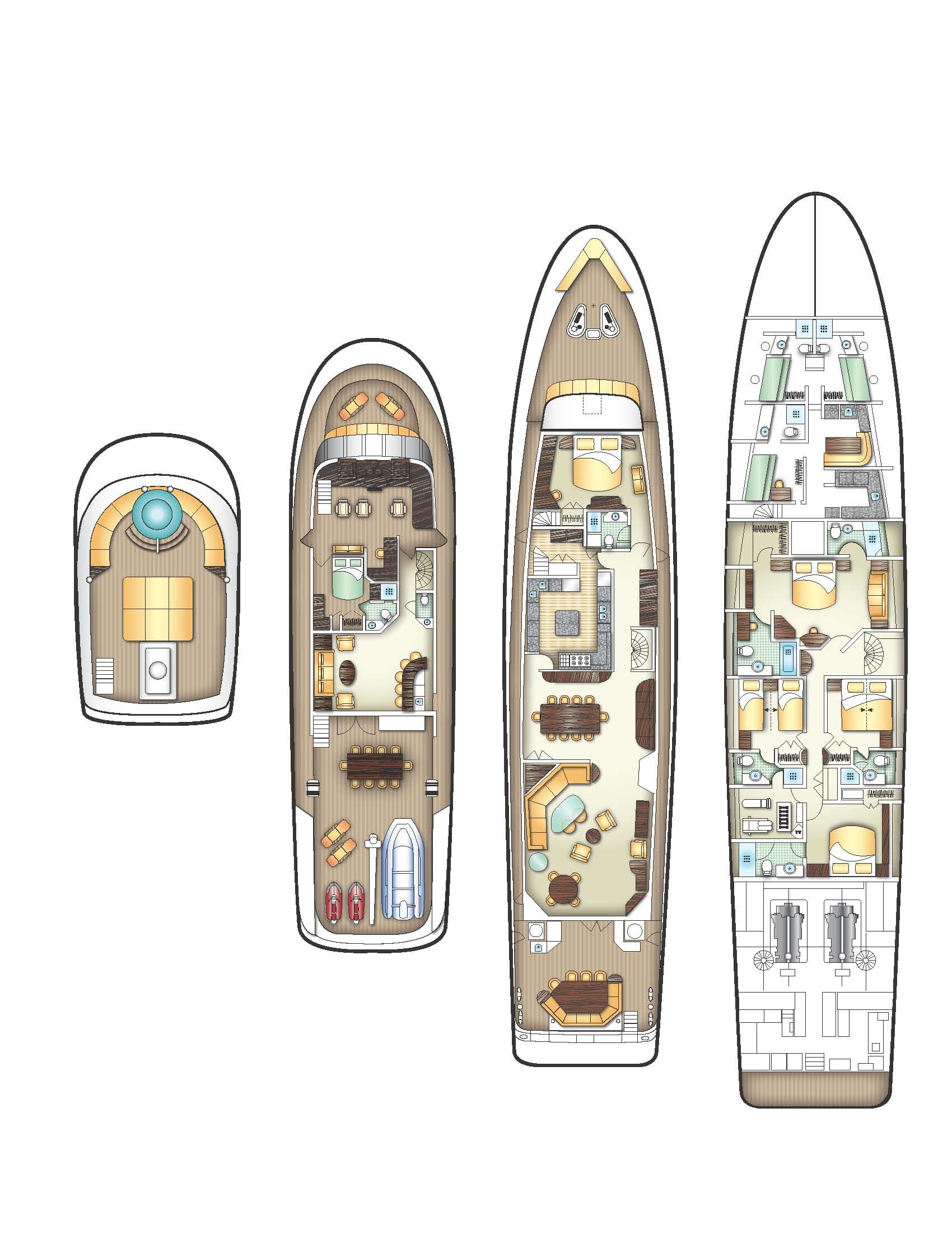 Tenders & Toys: -39’ Nortech towed tender Trip 300hp Mercury Verado's -19’ Yamaha AR190 Jetboat -19’ inflatable tender, AB inflatable with 150hp Yamaha outboard -4 Jet Skis (one with flyboard attachment) -Flyboard -4 Seabobs (underwater scooters) F5 models -Giant Water Slide -2 Stand Up Paddleboards -2 Inflatable Kayaks -Waterskis -Wakeboard -SCUBA for Certified Divers Only -Extensive Fishing gear -Snorkel gear -Water golf with tee-off pad and floating golf balls -Game Console, Board Games, Movie Server, VSAT internet -Exercise equipment: free weights, resistance bands and yoga mats -Sundeck Jacuzzi and BBQ Audio Visual Equipment and Deck Facilities: Wii, Movie Server, Control 4 home entertainment System, VSAT internet, Mobile network booster which should provide fast/reliable internet all over the Exumas. Bose Surround sound throughout Communications: VSAT internet, Mobile network booster which should provide fast/reliable internet all over the Exumas. Computer, printer, SatPhone, SatFax, Cell Phone