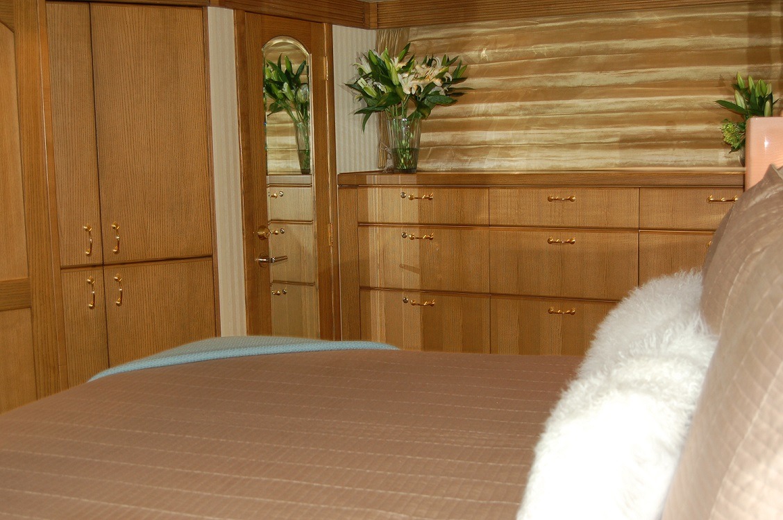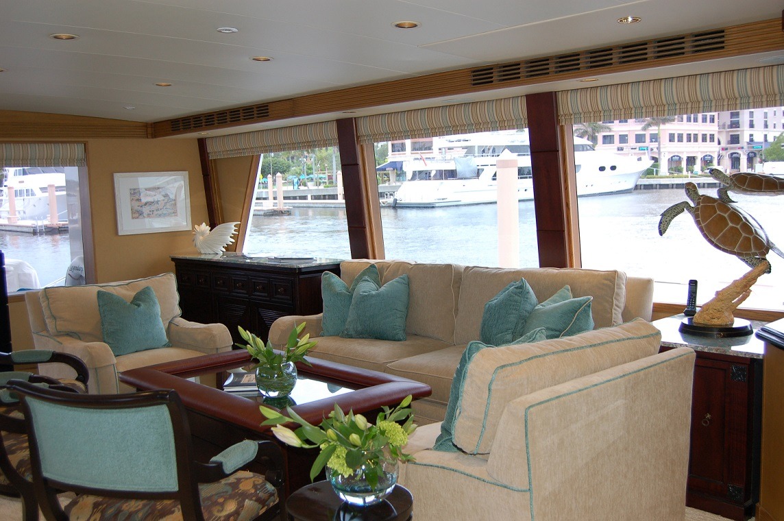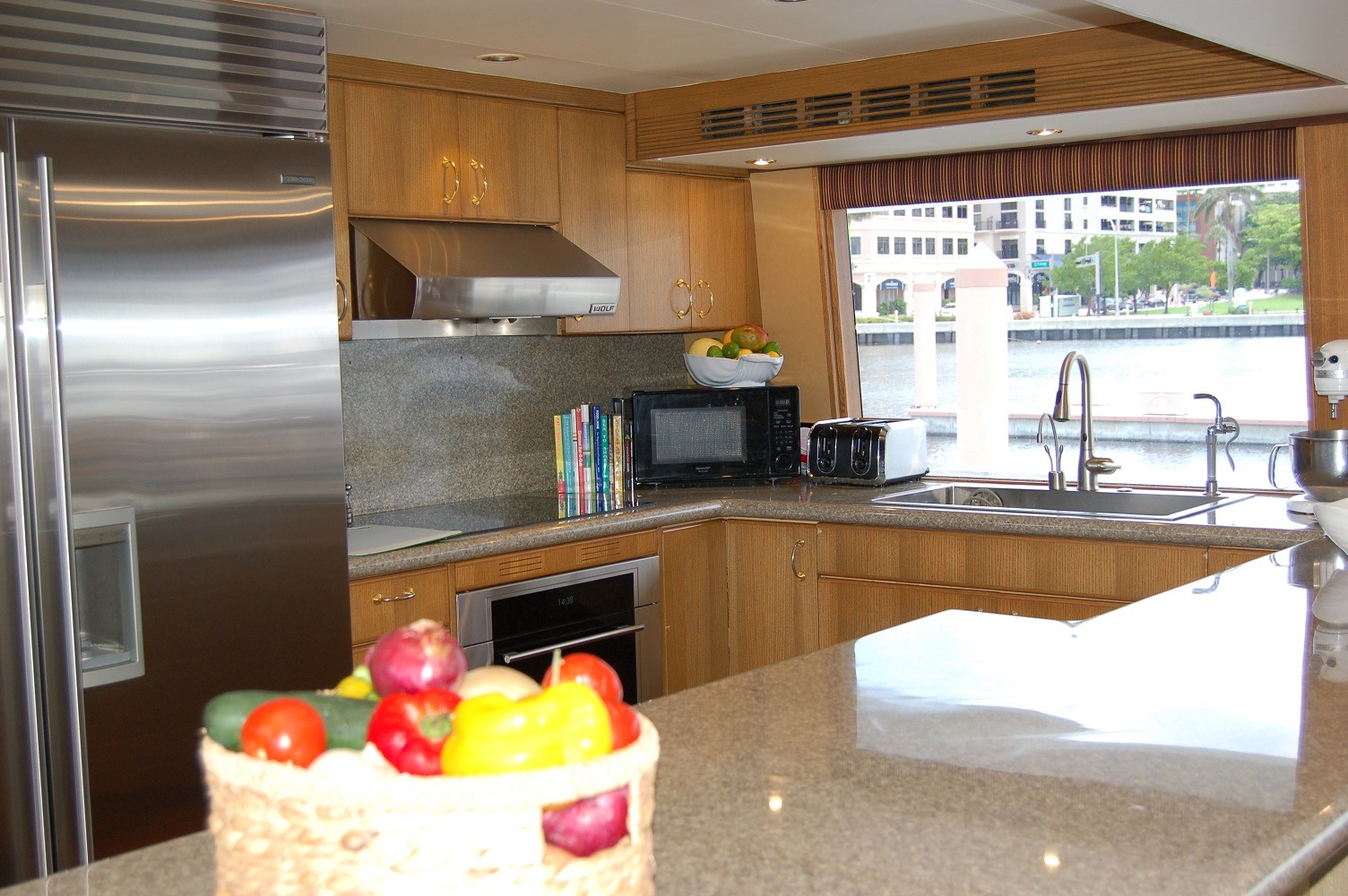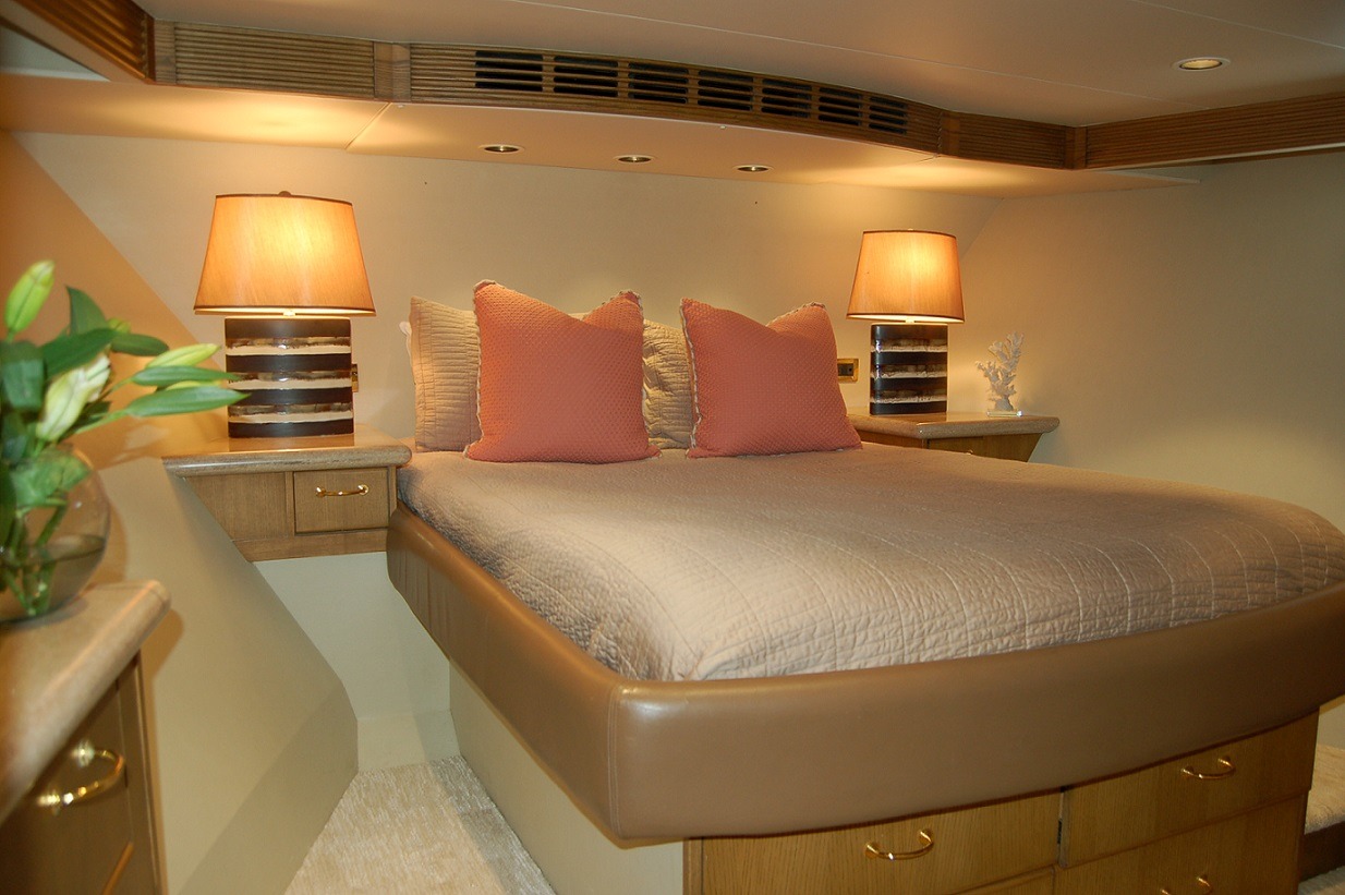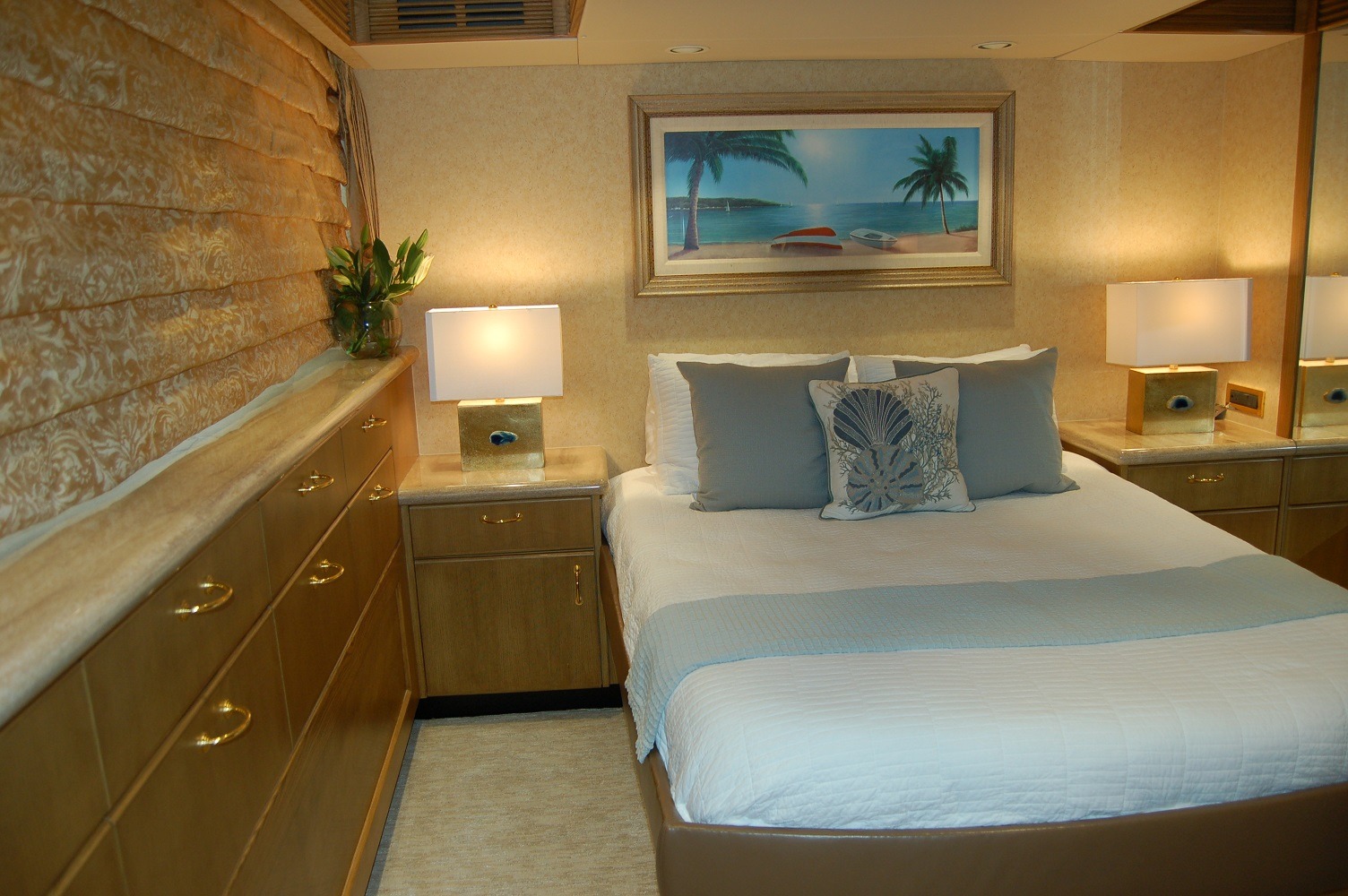 LEGENRADY'S interior layout sleeps up to 8 guests in 4 rooms. The yacht has just completed a $1,000,000 refit and is a must see! LEGENRADY'S impressive leisure and entertainment facilities make her the ideal charter yacht for socializing and entertaining with family and friends. The flybridge has a fiberglass hardtop with retractable sun roof and 62" plasma TV which is recessed in the overhead just above the helm station. There is a 2 1/2' extension on the transom which houses a fully hydraulic set of stairs and underwater platform for scuba and personal watercraft access. Underwater lights located on the swim platform will provide hours of evening underwater viewing.