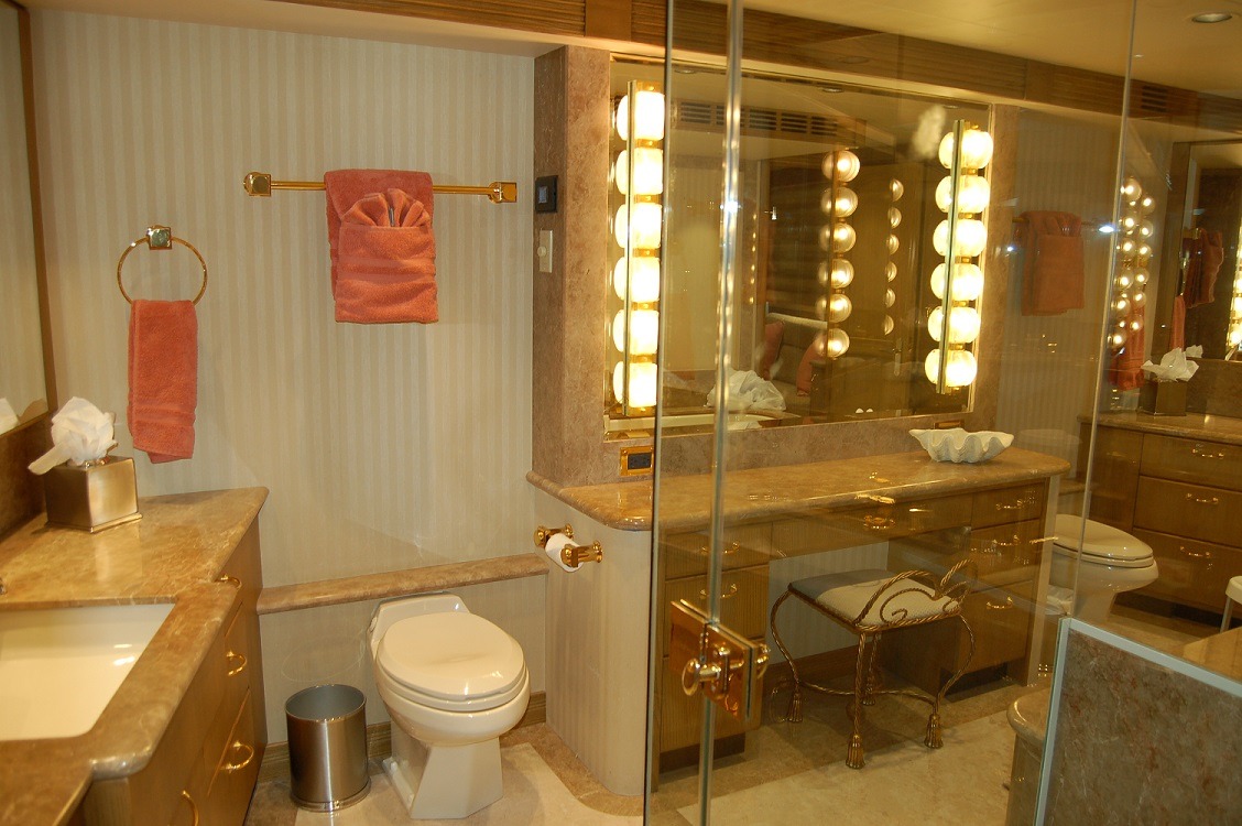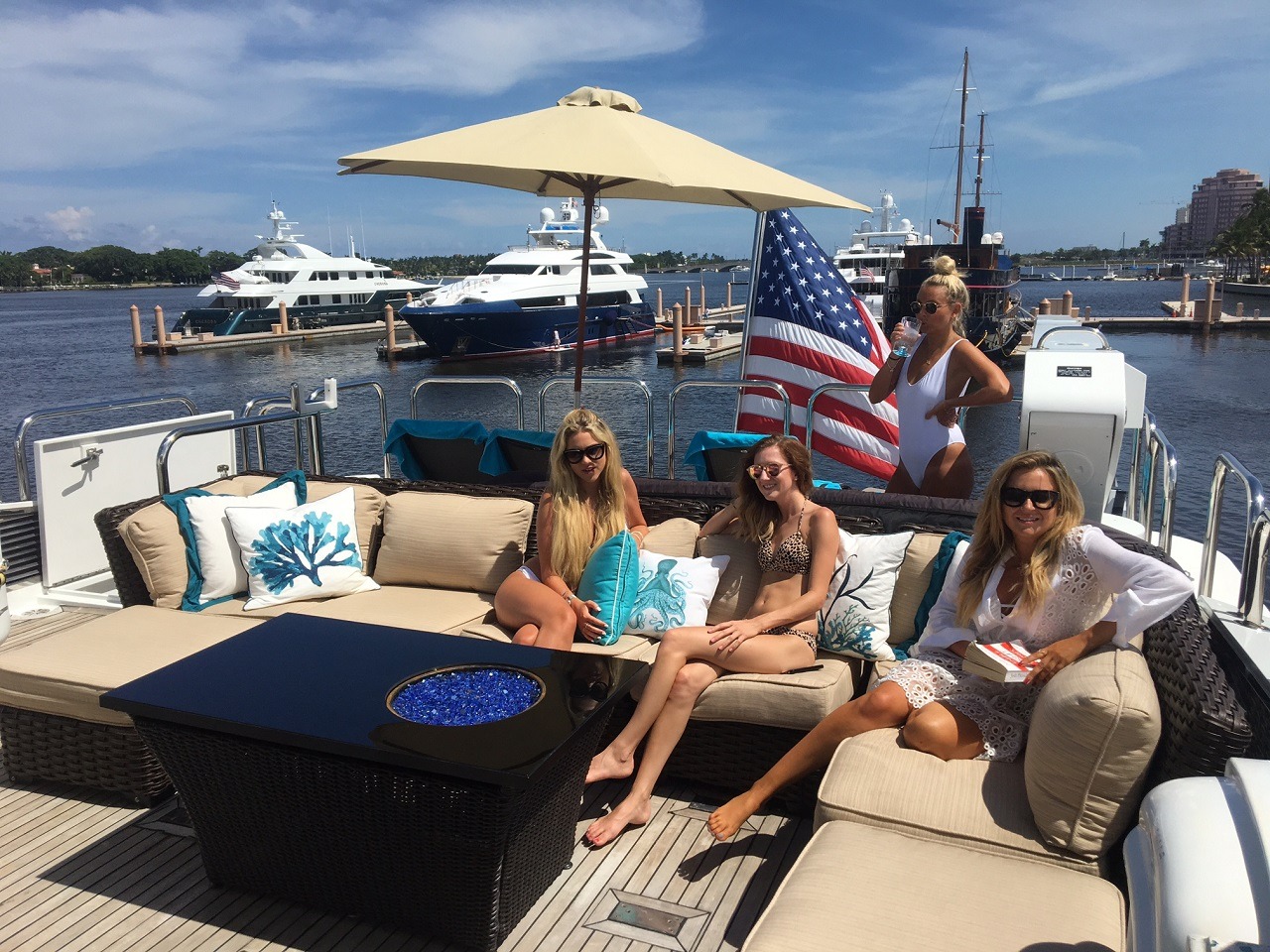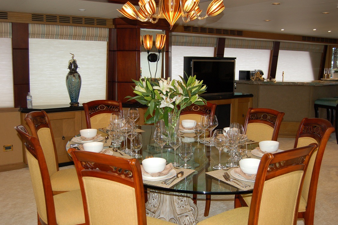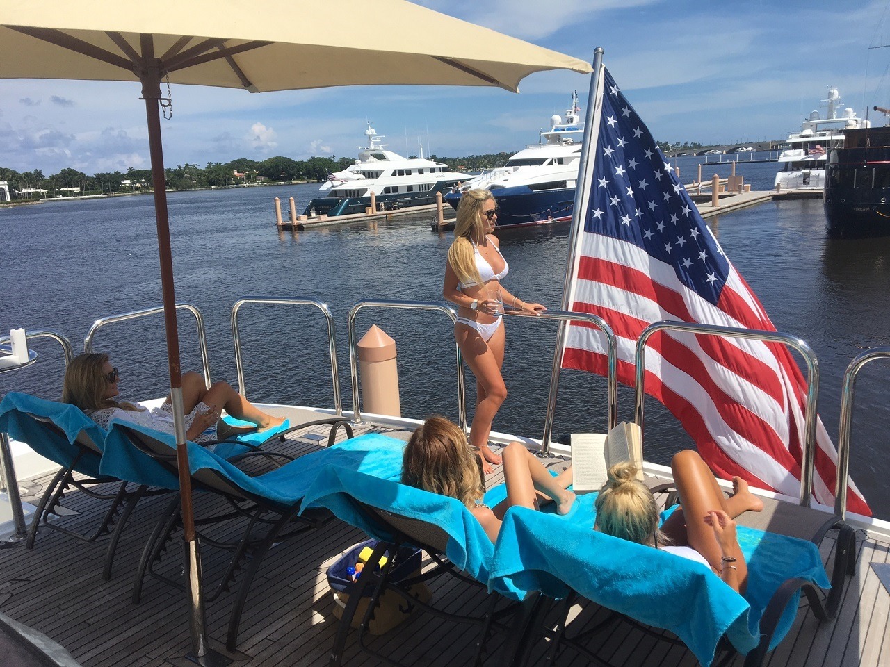 LEGENARDY'S interior layout sleeps up to 8 guests in 4 rooms. The yacht yacht has just completed a $1,000,000 refit and is a must see! LEGENARDY'S impressive leisure and entertainment facilities make her the ideal charter yacht for socializing and entertaining with family and friends. The flybridge has a fiberglass hardtop with retractable sun roof and 62" plasma TV which is recessed in the overhead just above the helm station. There is a 2 1/2' extension on the transom which houses a fully hydraulic set of stairs and underwater platform for scuba and personal watercraft access. Underwater lights located on the swim platform will provide hours of evening underwater viewing.