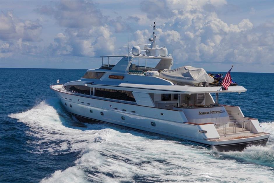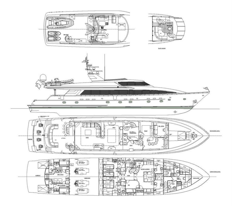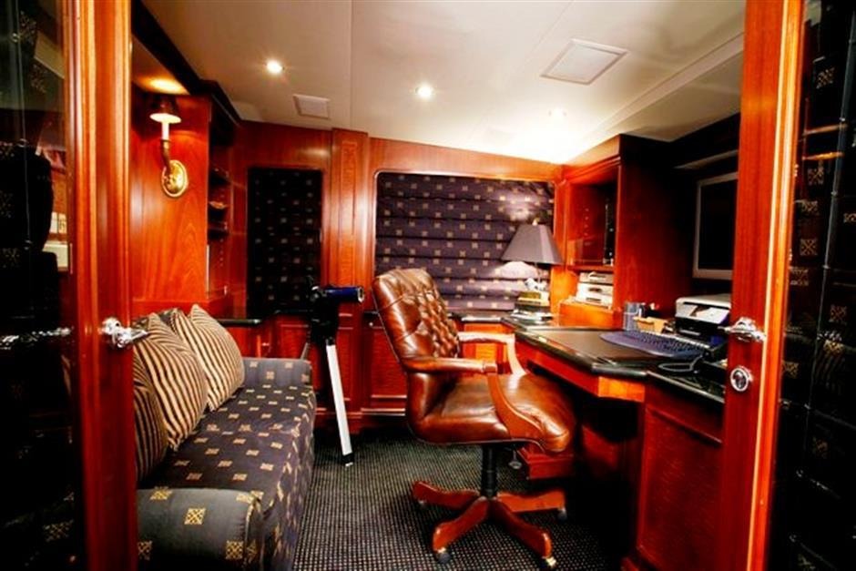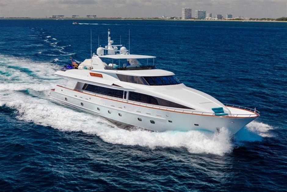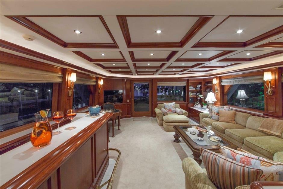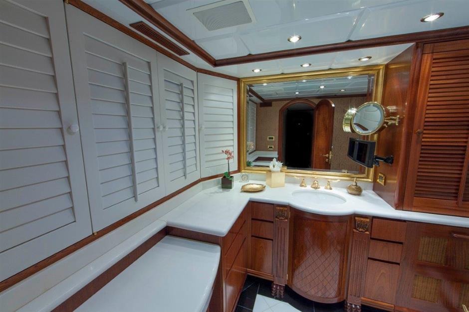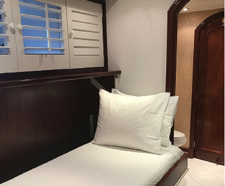 OCEAN CLUB is 120 feet of nautical adventure! She is able to accommodate nine guests in five well outfitted staterooms. There is an abundance of activities to do while onboard the yacht. For fun on the water, there are numerous water toys for your enjoyment. Luxury motor yacht OCEAN CLUB has a beautiful salon with a large sofa and loveseat, ottoman, leather game seat chairs and table and a wet bar with Corian counter top. There is a full entertainment system with a Fujitsu 49”plasma TV, VHS, DVD Panasonic audio/video/CD changer home theatre system. The master stateroom is complete with a king size bed, dresser, a full entertainment center, 2 walk in closets, his and her bath, and a 2 person steam shower and vanity. Two of the guest staterooms have queen beds with drawers underneath, entertainment centers, and en suites with shower. The fourth stateroom has a double bed, entertainment center, and en suite with shower. The fifth cabin is adjacent to the master stateroom and shares a head with a queen room.The Pullman can accommodate an adult and is a great space for a nanny, body guard or child! The office area located forward on the main deck is sound-proofed for privacy and features a couch, built-in desk, Aquos Sharp 29” plasma TV, DVD and CD changer home theatre