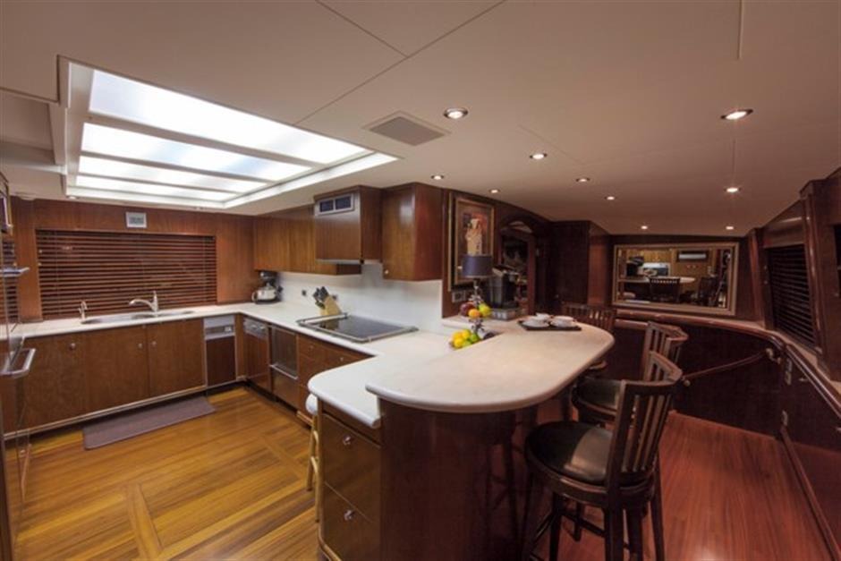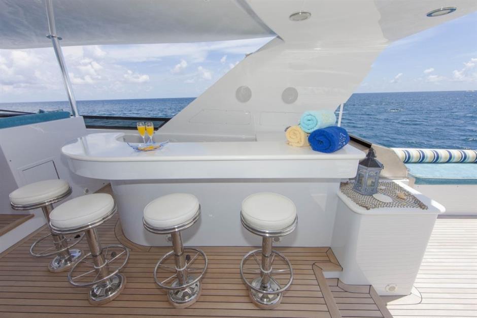 OCEAN CLUB is 120 feet of nautical adventure! She is able to accommodate nine guests in 4 well outfitted staterooms and 'bonus cabin'. There is an abundance of activities to do while on board the yacht. For fun on the water,there are numerous water toys for your enjoyment. Luxury motor yacht OCEAN CLUB has a beautiful salon with a large sofa and love seat, ottoman, leather game seat chairs and table and a wetbar with Corian counter top. There is a full entertainment system with a Fujitsu 49”plasma TV, VHS, DVD Panasonicaudio/video/CD changer home theatre system.