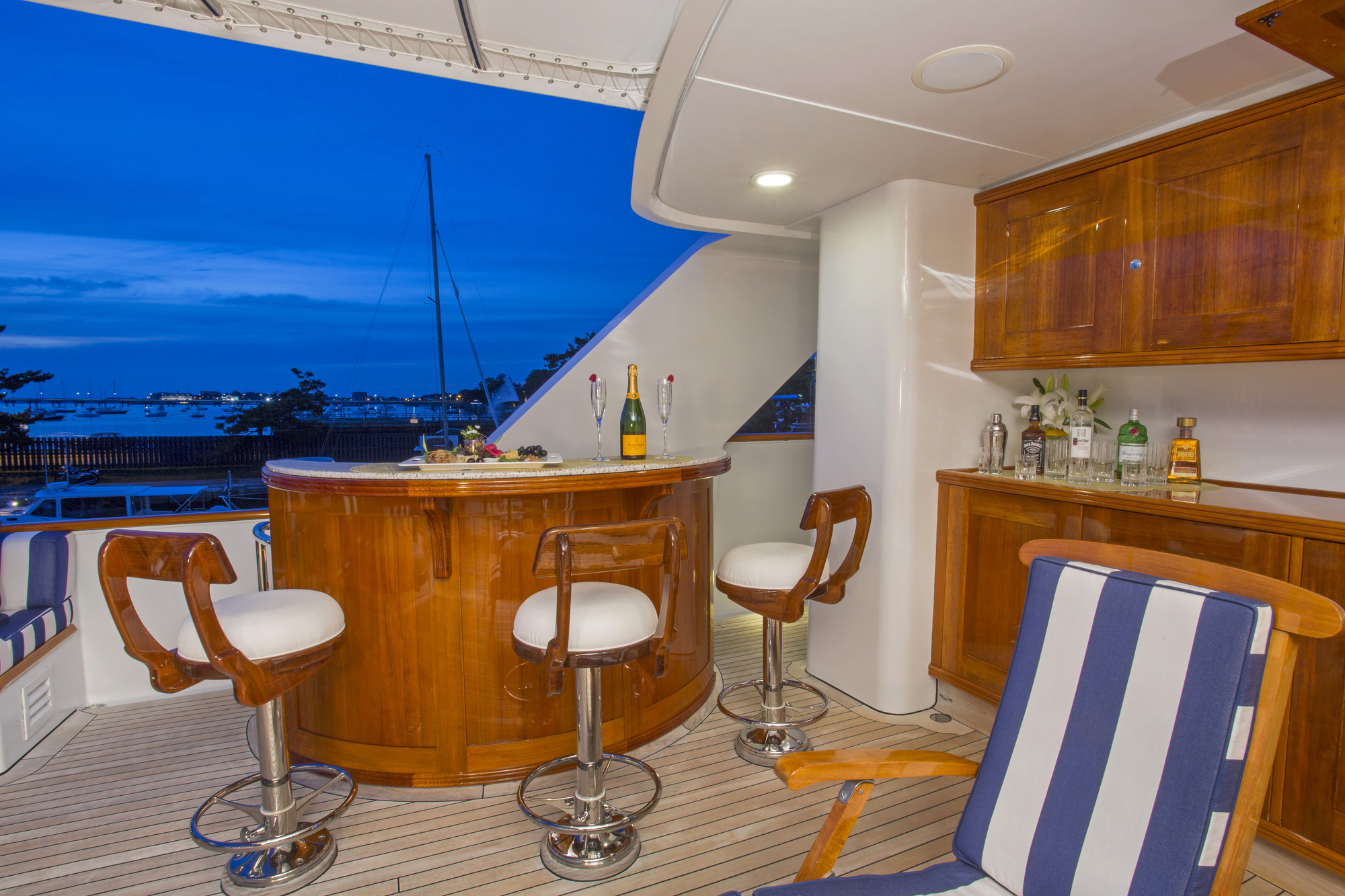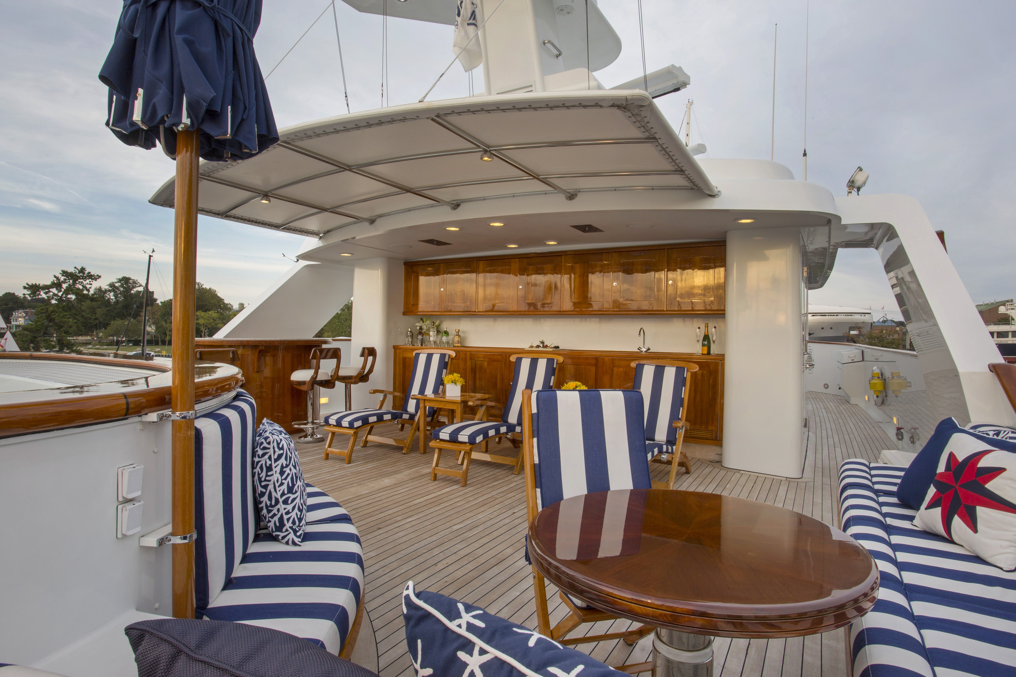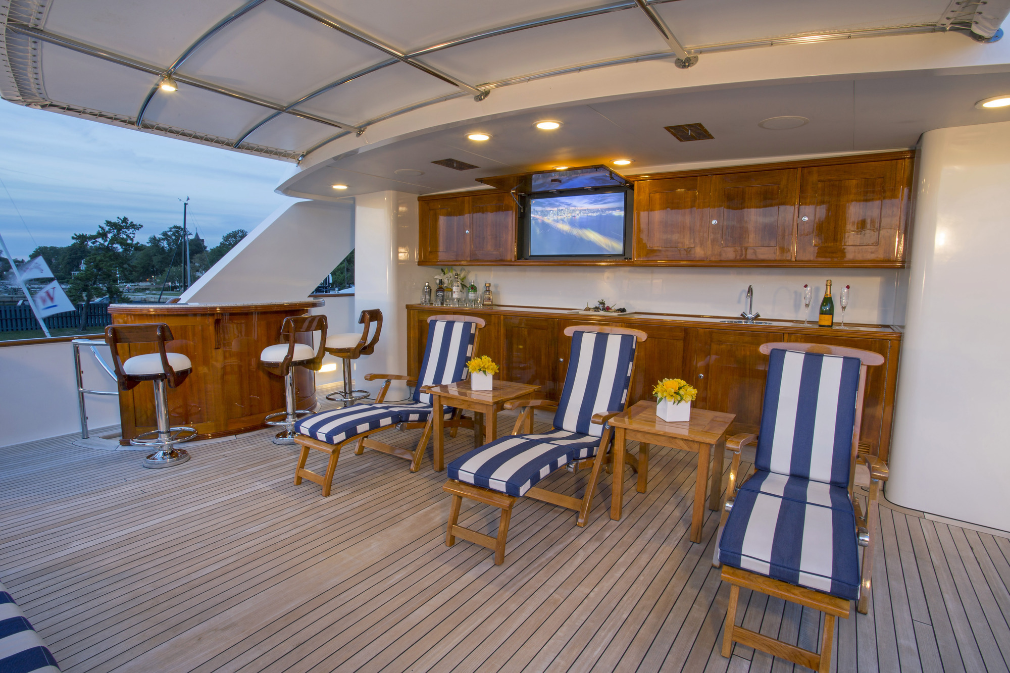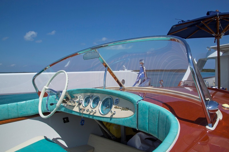 Tenders & Toys: 16' Novurania center console with 115-hp engine 18' Riva Junior with 190-hp inboard engine, completely restored to Concours d’Elegance standards 2 stand up paddle boards 1 wakeboard 1 waterskis Kneeboard Selection of inflatables and tows Selection of snorkel gear for adults and children Extensive fishing equipment including deep sea 2 Voyager underwater scooters 2 x 2-person kayaks Audio Visual Equipment and Deck Facilities: AirPlay capabilities SatCom Direct TV available in the Bahamas and US All new flat-screen HD TV's: • Main salon: 65" • Club room: 48" • Sky lounge: 42" • Master stateroom: 34" • Queen stateroom: 34" • Twin stateroom: 34" Communications: Wi-Fi throughout while at dock or marina Cellular Internet while underway 15 miles from shore Computer, printer, scanner
