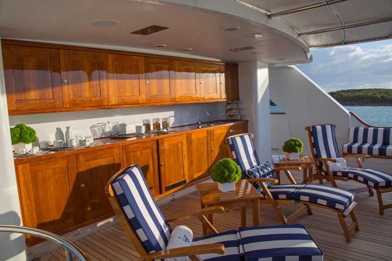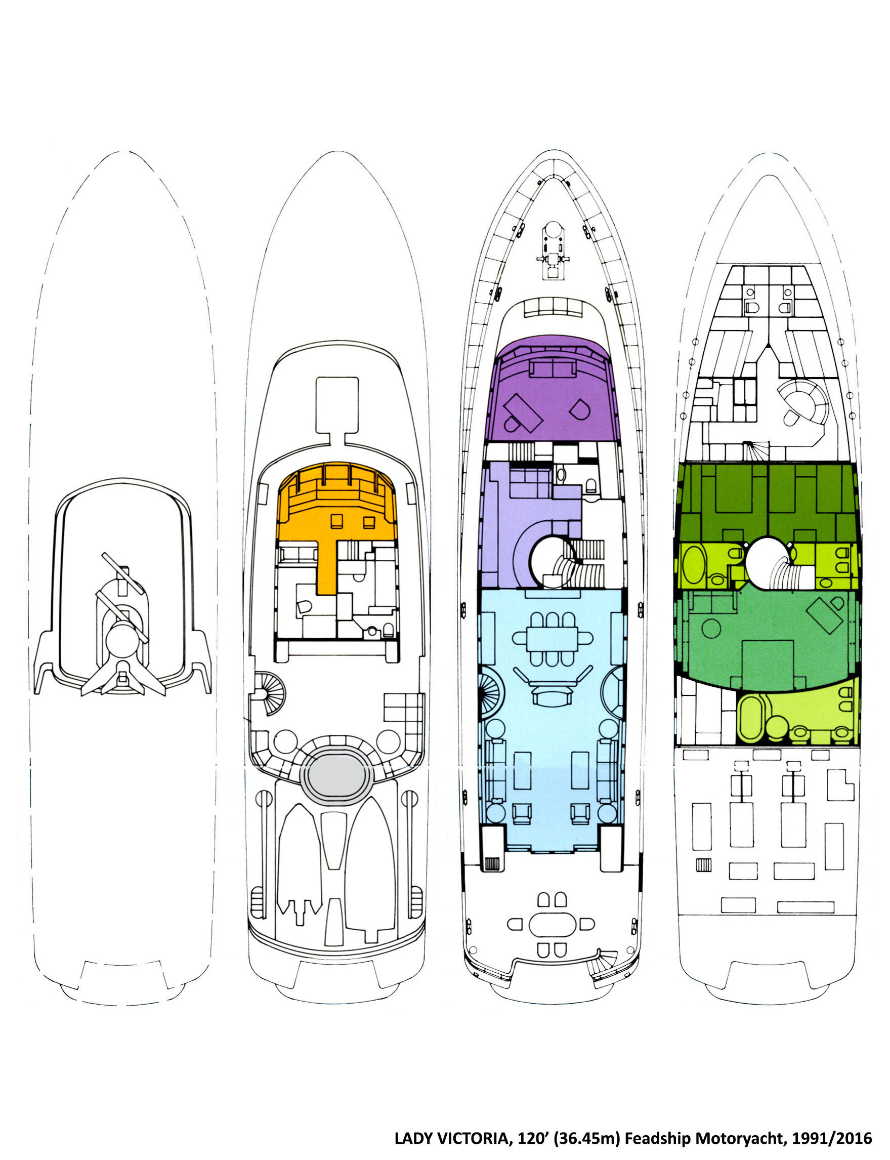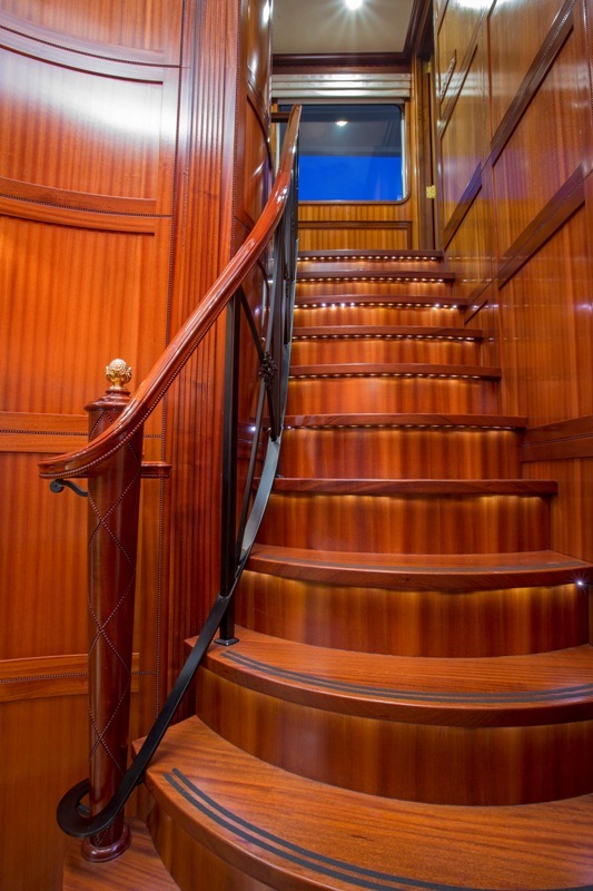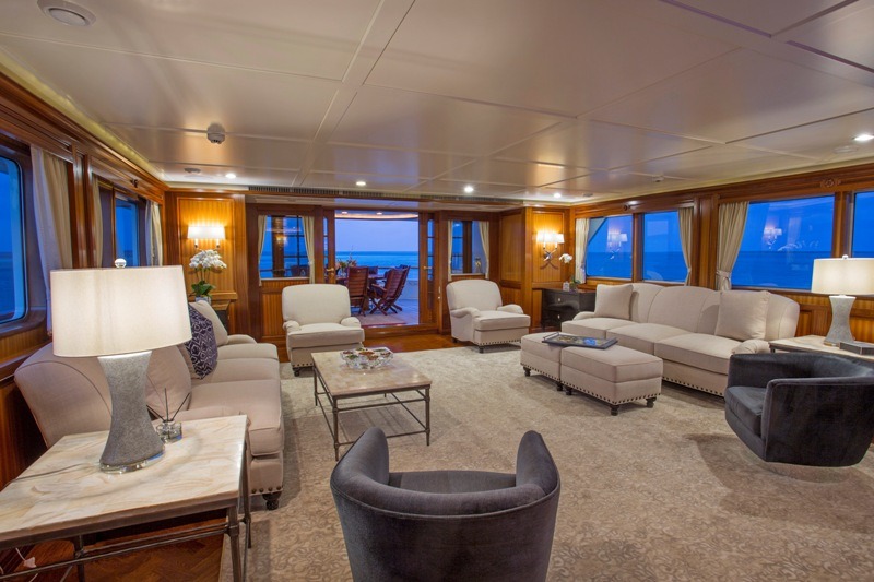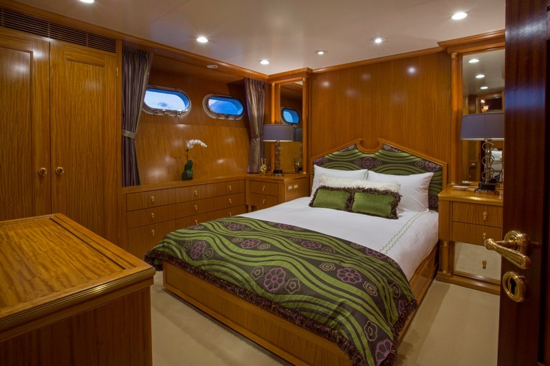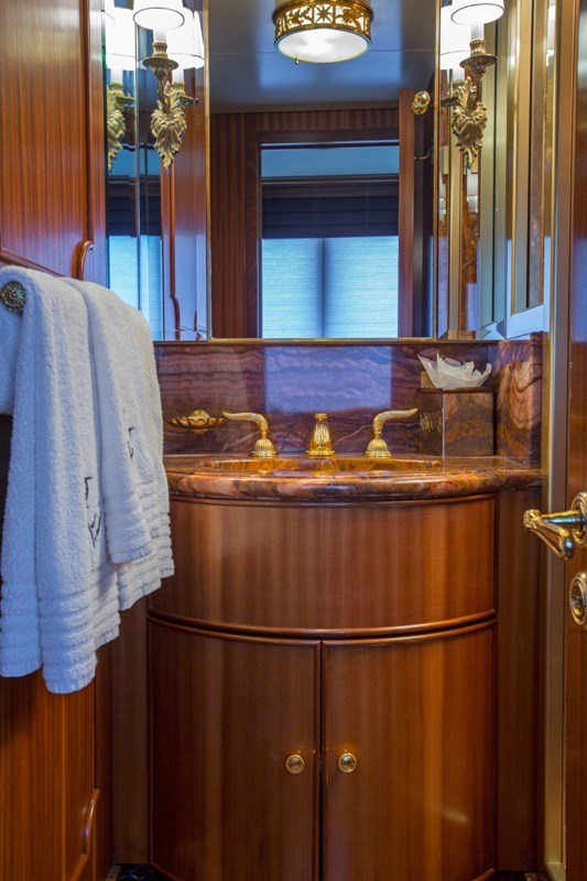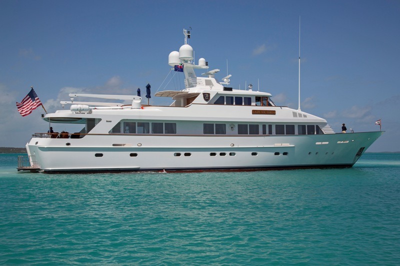 LADY VICTORIA offers a complete escape from the average and ordinary. A true gentleman’s yacht, she is a haven of impeccable elegance. Her gracefully classic exterior lines are complemented by a refined interior that suggests the atmosphere of an exclusive club. Beautiful French doors open from the aft deck into the expansive salon, where soft, cream-colored furnishings lend a light, contemporary touch to masterfully crafted, curved wood paneling accented with gold. The salon opens to the dining area and a large oval table whose supremely comfortable chairs invite lingering over candlelit dinners. Farther forward, a door leads into the owner's private, country-style galley. This secondary area provides a unique and convenient addition, with the capacity for everything from complete formal, gourmet delights to simple snacks and drinks. Also on the main deck, a richly furnished library creates a welcoming spot for quiet pursuits. Recent upgrades include a modern entertainment center with over 400 movies, satellite TV, and a variety of games. This handsome space can be converted to a sleeping cabin with a queen bed, giving the yacht the capability to accommodate up to eight guests. Three large staterooms are located on the lower deck, just down a spiral staircase. The full-beam master is fitted with a king bed, seating area, and desk. Its his-and-hers bathrooms with spa tub and shower are finished in spectacular golden onyx. A second spa tub is found in the onyx-lined bathroom that accompanies the lovely queen stateroom. In the third stateroom, with two twin beds, the ensuite bathroom has a steam shower framed by a vaulted blue-glass ceiling. The covered aft deck is a popular spot for casual meals and cocktails. Its high-gloss varnished mahogany chairs, along with dark blue and red piping-accented cushions, suggest the feeling of a stylish yacht club and invite relaxed conversations. Up on the sundeck, guests may choose to stretch out in the lounge chairs or enjoy the scenic views from a table and chairs set beneath large umbrellas. A new entertainment center has been added here for listening and viewing pleasure. The Jacuzzi, with ample space for up to six, is an irresistible place to unwind in the gentle breeze or beneath the stars. The Jacuzzi can also be converted to a comfortable sunbed. LADY VICTORIA has the full complement of water toys, including two underwater scooters. For the ultimate in classic style, she also carries a sleek, 18-foot Riva Junior motorboat, which has been completely restored to concours d’elegance standards. Complementing the Riva is a 16-foot hard-bottom inflatable that's perfect for watersport activities and exploratory excursions. Led by her gracious and exceptionally experienced captain, LADY VICTORIA’s crew look forward to creating a memorable, five-star experience custom-designed for her guests.