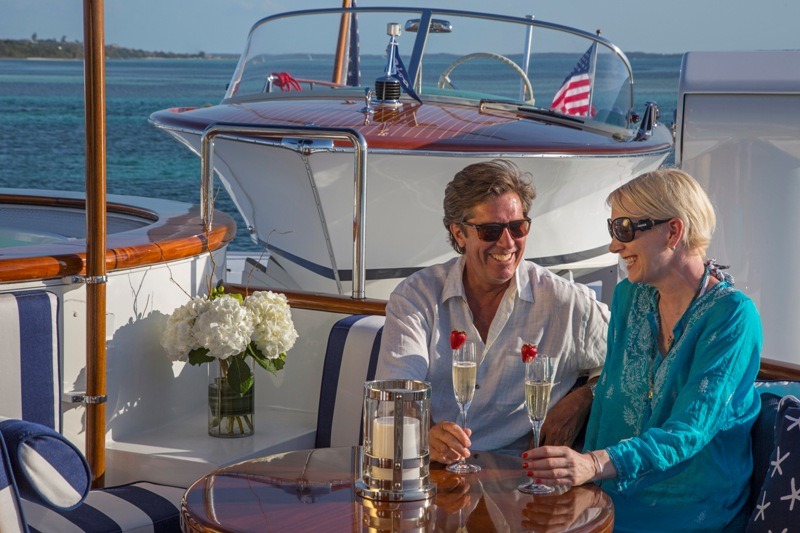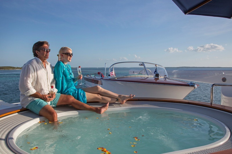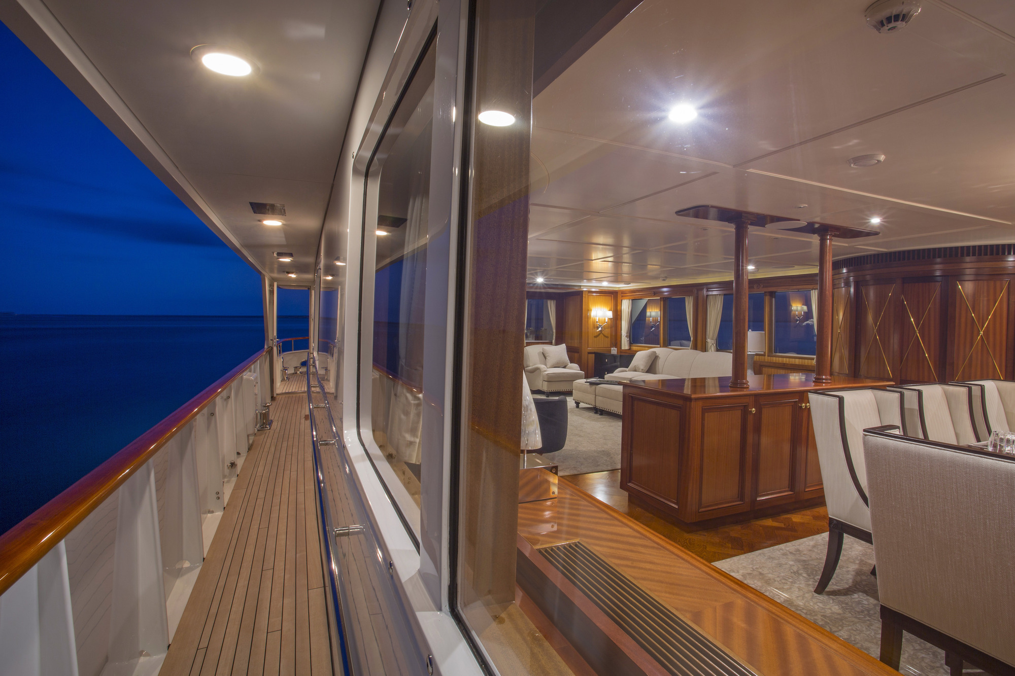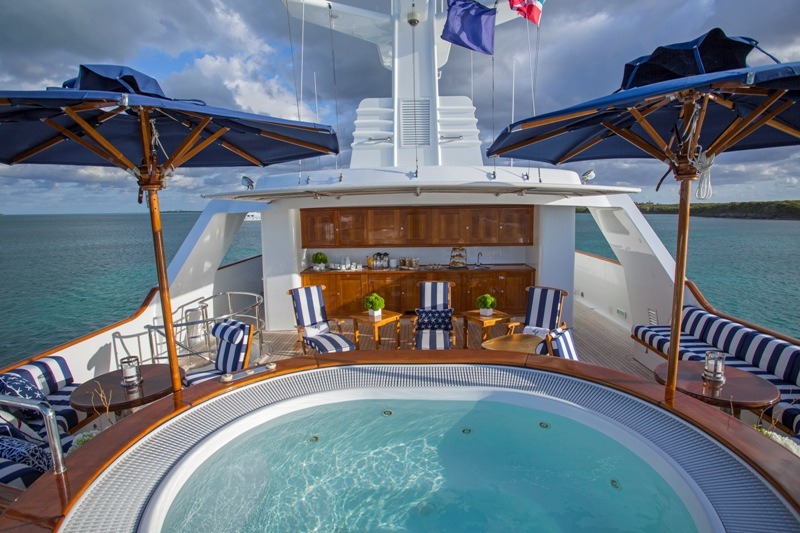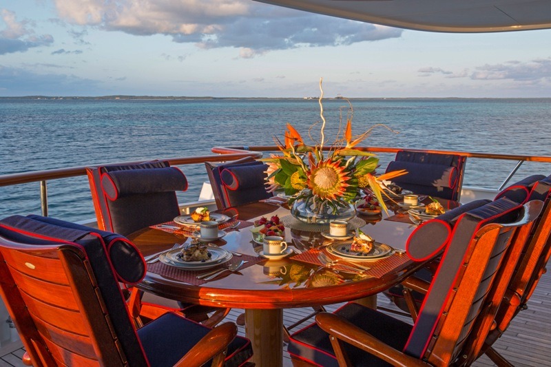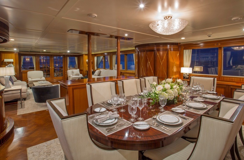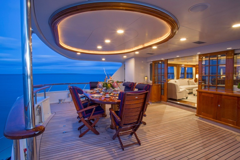 LADY VICTORIA offers a complete escape from the average and ordinary. A true gentleman’s yacht, she is a haven of impeccable elegance. Her gracefully classic exterior lines are complemented by a refined interior that suggests the atmosphere of an exclusive club. Beautiful French doors open from the aft deck into the expansive salon, where soft, cream-colored furnishings lend a light, contemporary touch to masterfully crafted, curved wood paneling accented with gold. The salon opens to the dining area and a large oval table whose supremely comfortable chairs invite lingering over candlelit dinners. Farther forward, a door leads into the owner's private, country-style galley. This secondary area provides a unique and convenient addition, with the capacity for everything from complete formal, gourmet delights to simple snacks and drinks. Also on the main deck, a richly furnished library creates a welcoming spot for quiet pursuits. Recent upgrades include a modern entertainment center with over 400 movies, satellite TV, and a variety of games. This handsome space can be converted to a sleeping cabin with a queen bed, giving the yacht the capability to accommodate up to eight guests. Three large staterooms are located on the lower deck, just down a spiral staircase. The full-beam master is fitted with a king bed, seating area, and desk. Its his-and-hers bathrooms with spa tub and shower are finished in spectacular golden onyx. A second spa tub is found in the onyx-lined bathroom that accompanies the lovely queen stateroom. In the third stateroom, with two twin beds, the ensuite bathroom has a steam shower framed by a vaulted blue-glass ceiling. The covered aft deck is a popular spot for casual meals and cocktails. Its high-gloss varnished mahogany chairs, along with dark blue and red piping-accented cushions, suggest the feeling of a stylish yacht club and invite relaxed conversations. Up on the sundeck, guests may choose to stretch out in the lounge chairs or enjoy the scenic views from a table and chairs set beneath large umbrellas. A new entertainment center has been added here for listening and viewing pleasure. The Jacuzzi, with ample space for up to six, is an irresistible place to unwind in the gentle breeze or beneath the stars. The Jacuzzi can also be converted to a comfortable sunbed. LADY VICTORIA has the full complement of water toys, including two underwater scooters. For the ultimate in classic style, she also carries a sleek, 18-foot Riva Junior motorboat, which has been completely restored to concours d’elegance standards. Complementing the Riva is a 16-foot hard-bottom inflatable that's perfect for watersport activities and exploratory excursions. Led by her gracious and exceptionally experienced captain, LADY VICTORIA’s crew look forward to creating a memorable, five-star experience custom-designed for her guests.