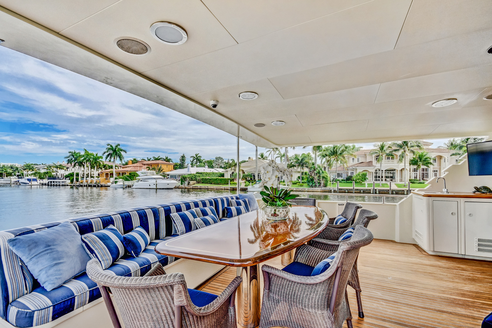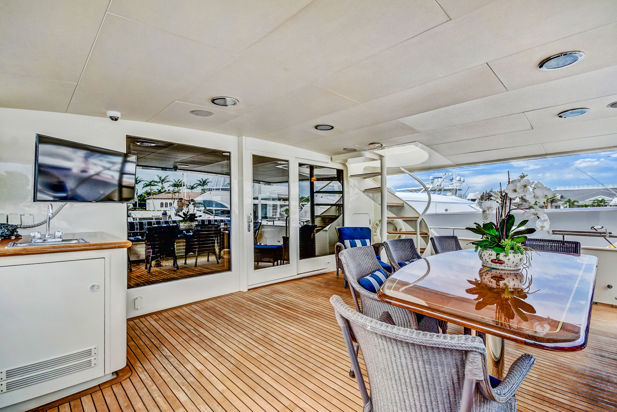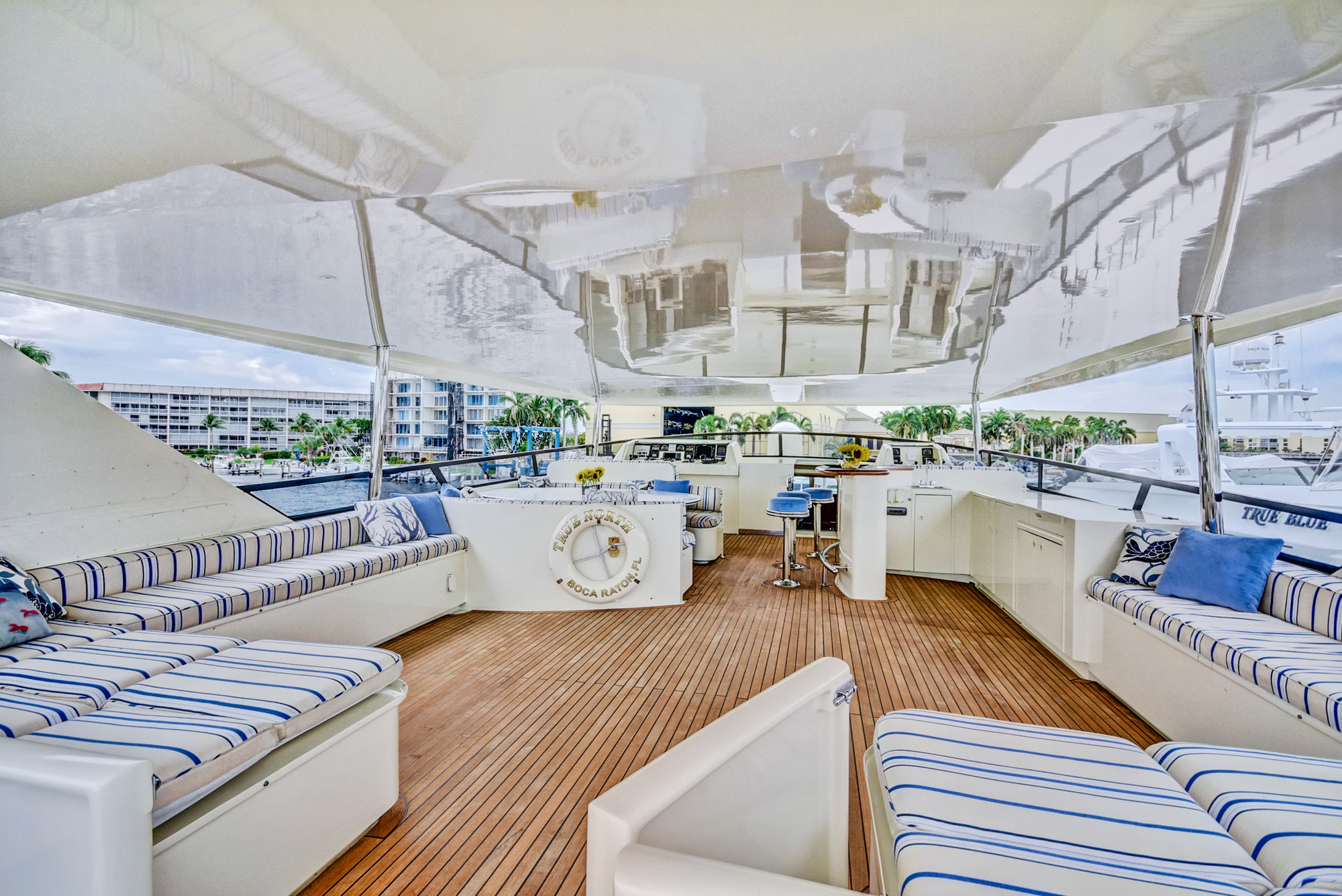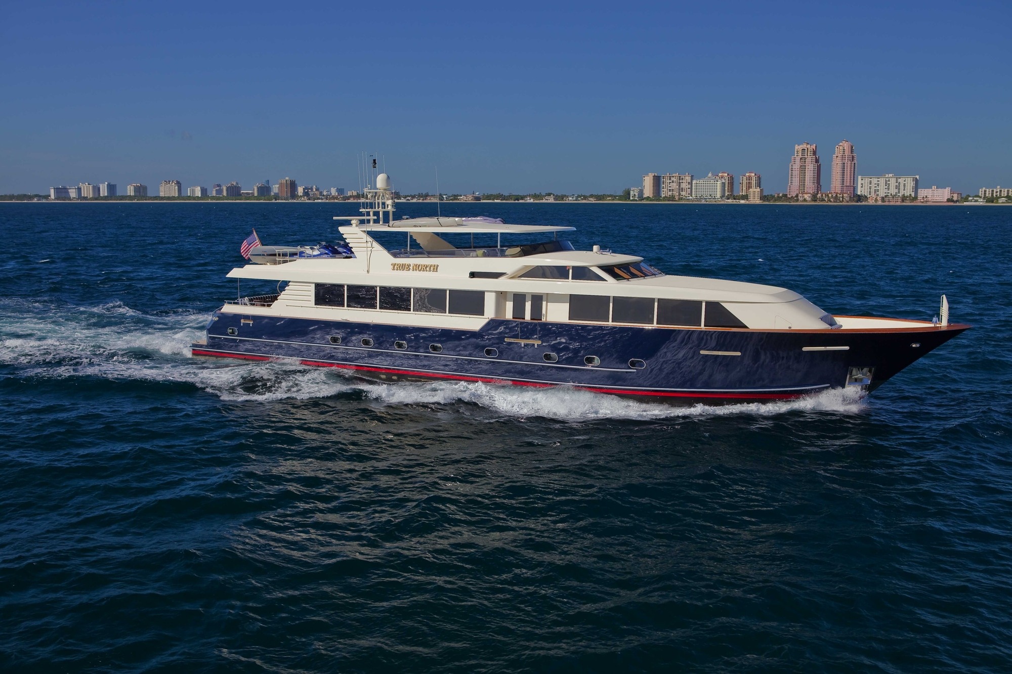 TRUE NORTH a 118ft Broward crewed motor yacht, accommodating up to 8 guests in 4 cabins, is ideal for charter around Florida, the Bahamas, and New England. TRUE NORTH is a strikingly beautiful Broward megayacht. Her elegant interiors are a special blend of classic and modern looks. Every room gives a feeling of spaciousness and luxury. There is also ample room for being outdoors whether to enjoy the sun, dine in the shade or just relax.