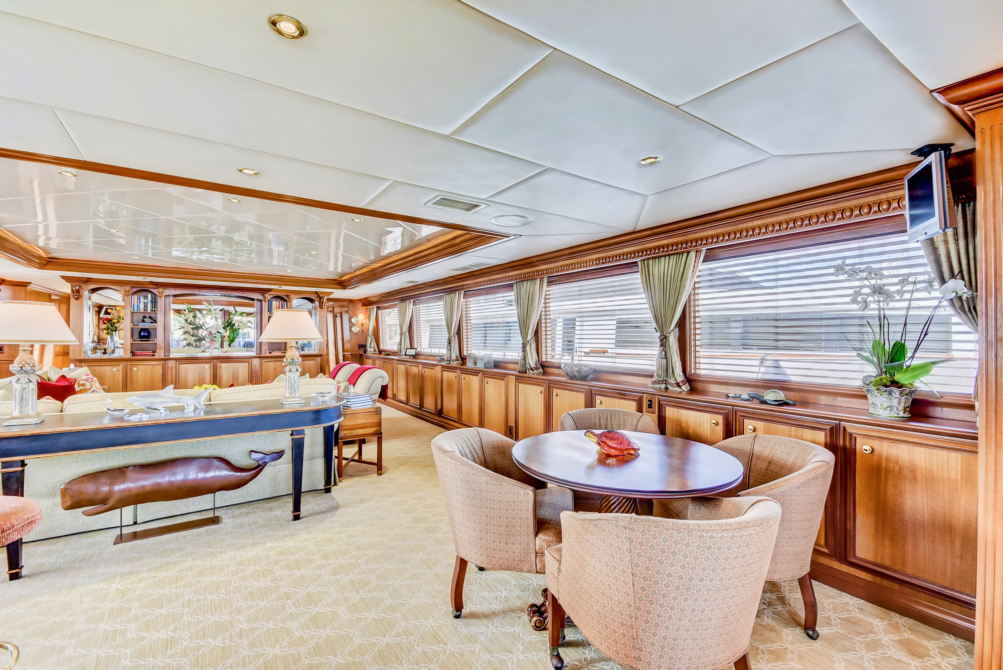True North's interior layout sleeps up to 8 guests in 4 rooms, including a master suite, 2 double cabins and 1 twin cabin. She is also capable of carrying up to 4 crew onboard to ensure a relaxed luxury yacht experience. Timeless styling, beautiful furnishings and sumptuous seating feature throughout to create an elegant and comfortable atmosphere. True North's impressive leisure and entertainment facilities make her the ideal charter yacht for socialising and entertaining with family and friends.