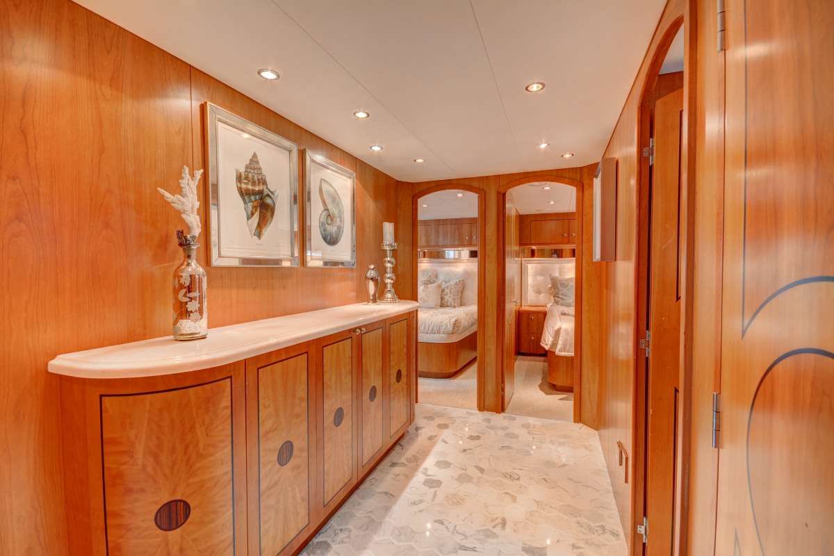 Crescendo's interior layout sleeps up to 8 guests in 4 rooms, including a master suite, 3 double cabins and 1 twin cabin. She is also capable of carrying up to 4 crew onboard to ensure a relaxed luxury yacht experience. Timeless styling, beautiful furnishings and sumptuous seating feature throughout to create an elegant and comfortable atmosphere.