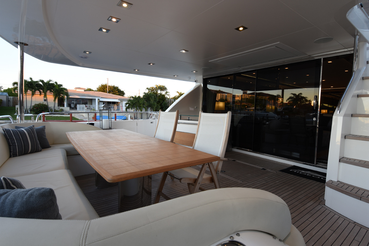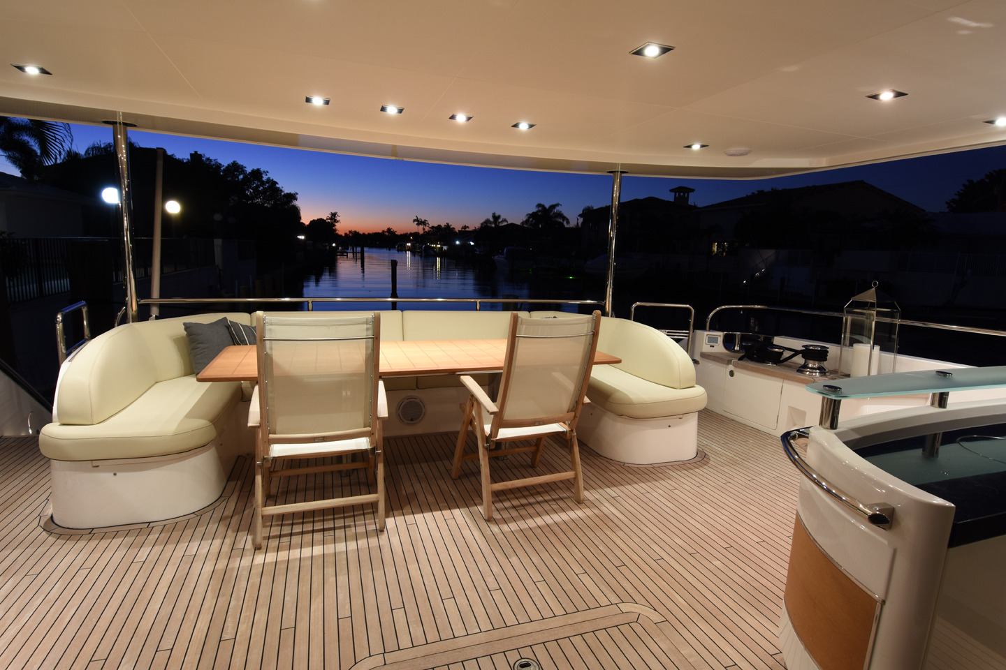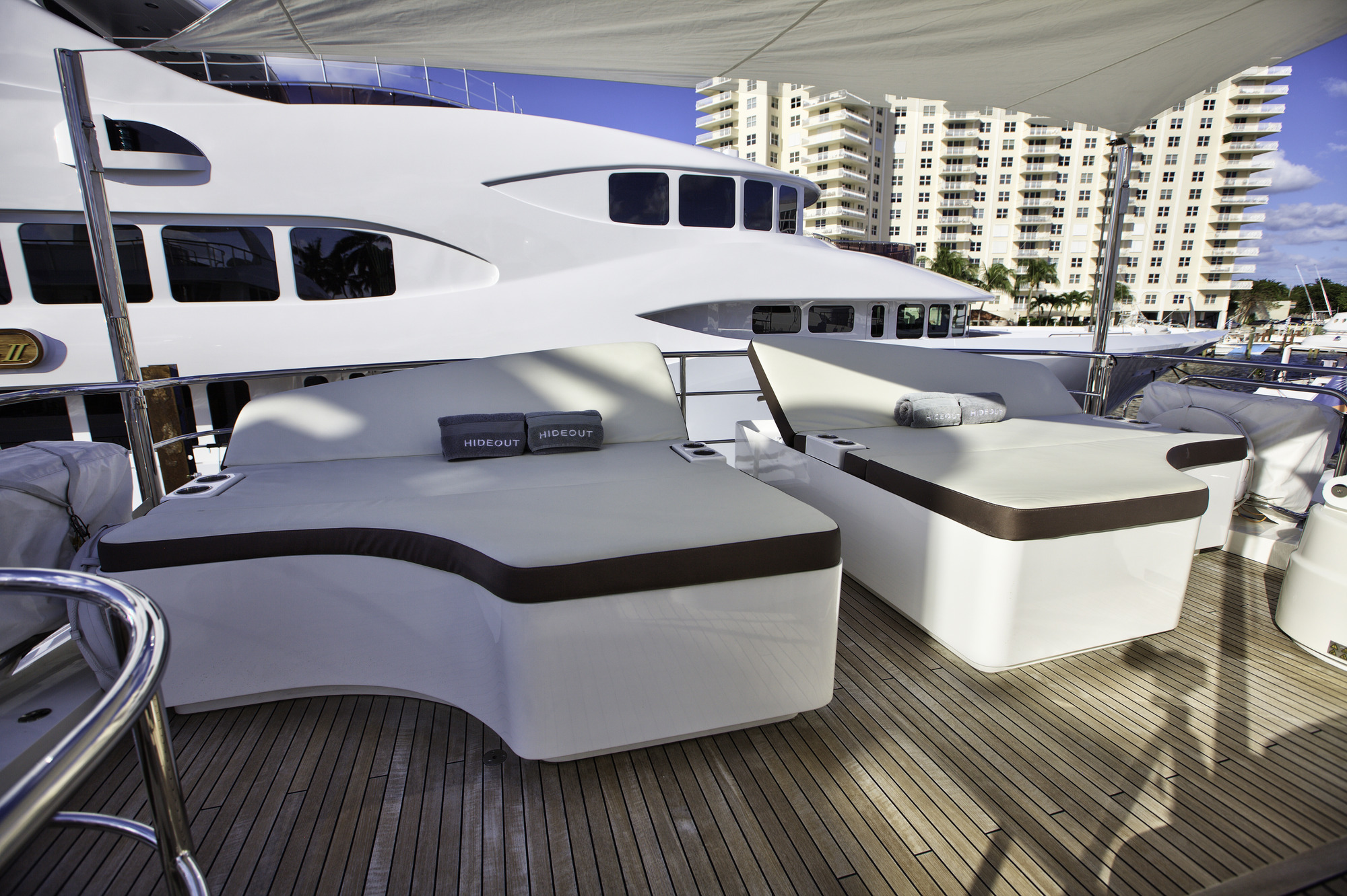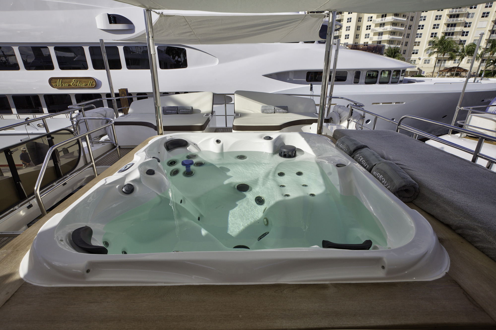 Lady Cope is a 98 foot motor yacht built in 2012 by Princess UK. She has received a refit in 2016 to keep her guest comfortable. Twin MTU engines give her a cruising speed of 12 knots and a top speed of 24. She will be available for charter in the Bahamas starting in November of 2017. Four cabins offer accommodations for as many as eight guests. Her master cabin features a queen size bed, desk, sitting area with occasional table under windows for exceptional views, and large screen TV. The generous V.I.P. cabin offers a queen bed and settee. There is also a guest cabin with queen bed and a guest cabin with twin bed. Her main salon features three couches arranged in a U shape with center ottoman/coffee table. Forward of the main salon is dining for eight. Out on the aft deck is a set in table with U shaped lounge and deck chairs for al fresco dining with outstanding views. Up on the sundeck there are ample places to enjoy the sun or to find shade under one of the biminis. There is also an on deck Jacuzzi on the sundeck. A full beam swim platform offers guests effortless access to the water. For watersports Lady Cope features a 30 foot Everglades center console tender setup up with fishing gear, a three person Yamaha wave runner, a three person Sea Doo wave runner, two wakeboard, two paddleboards, water skis, tube, slide, snorkeling gear, and rendezvous diving.