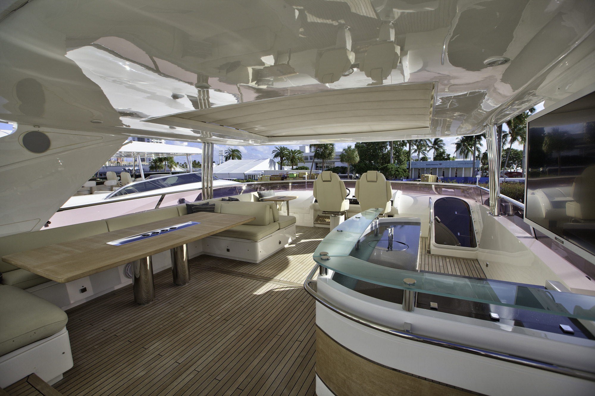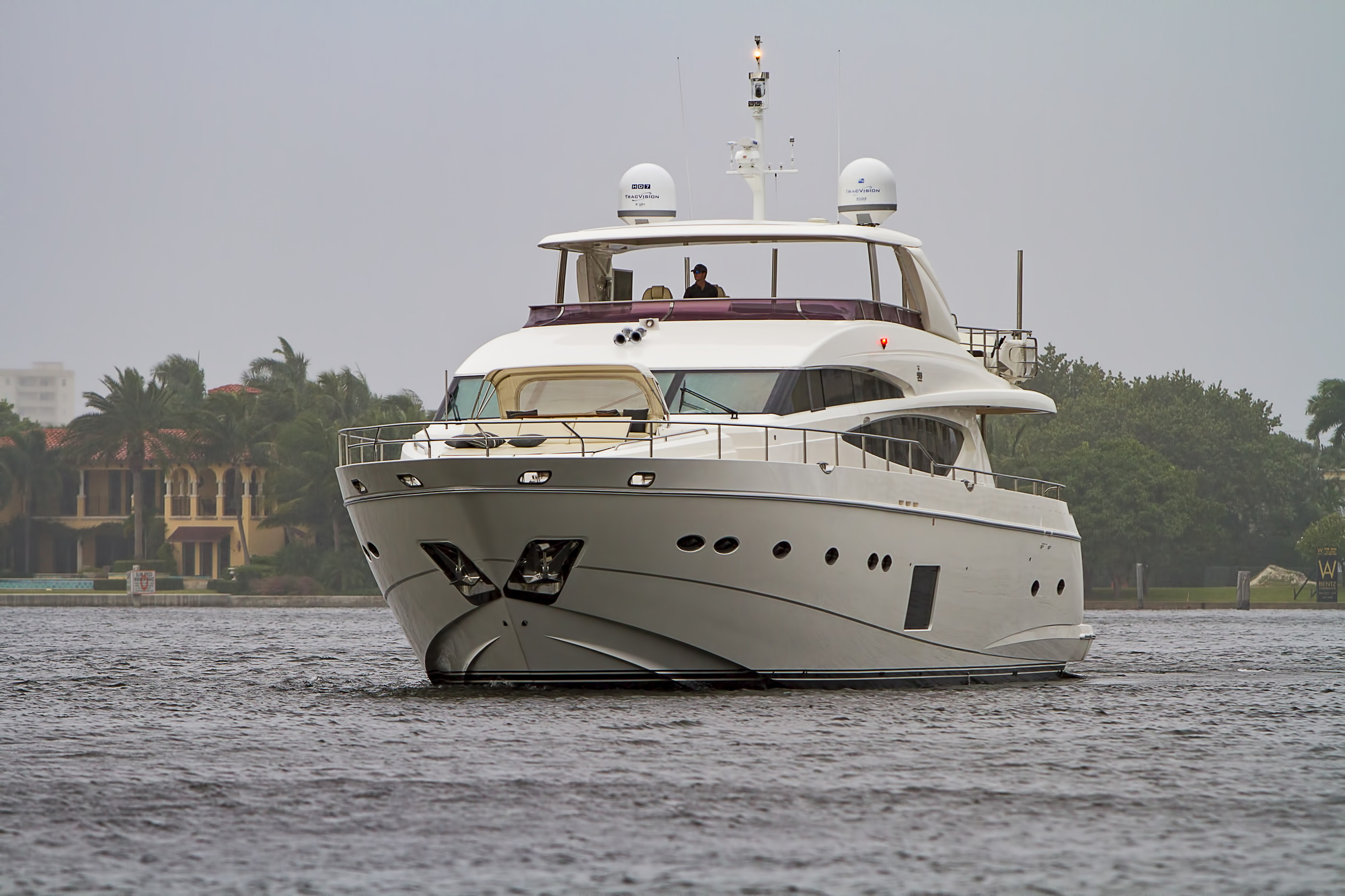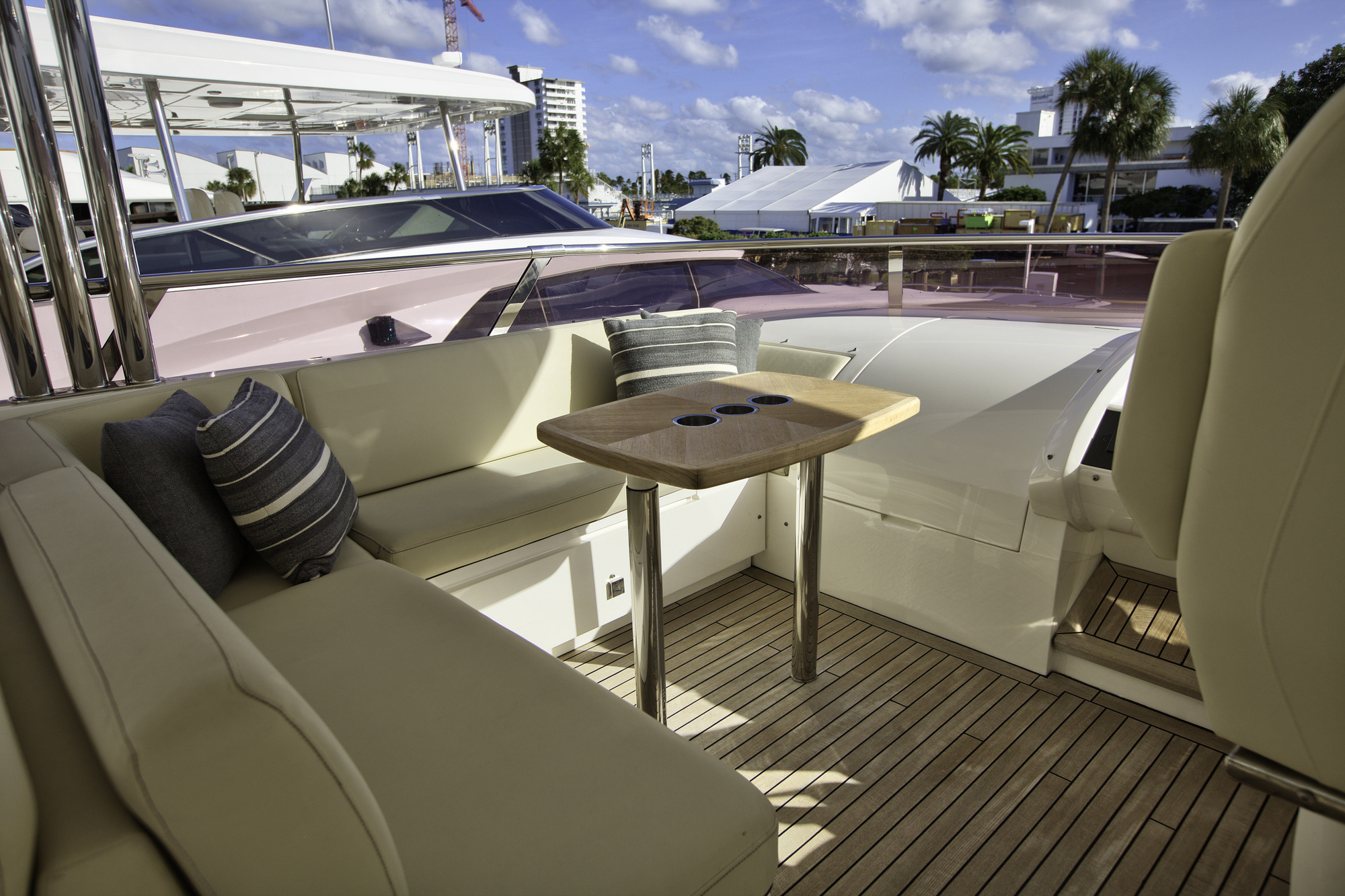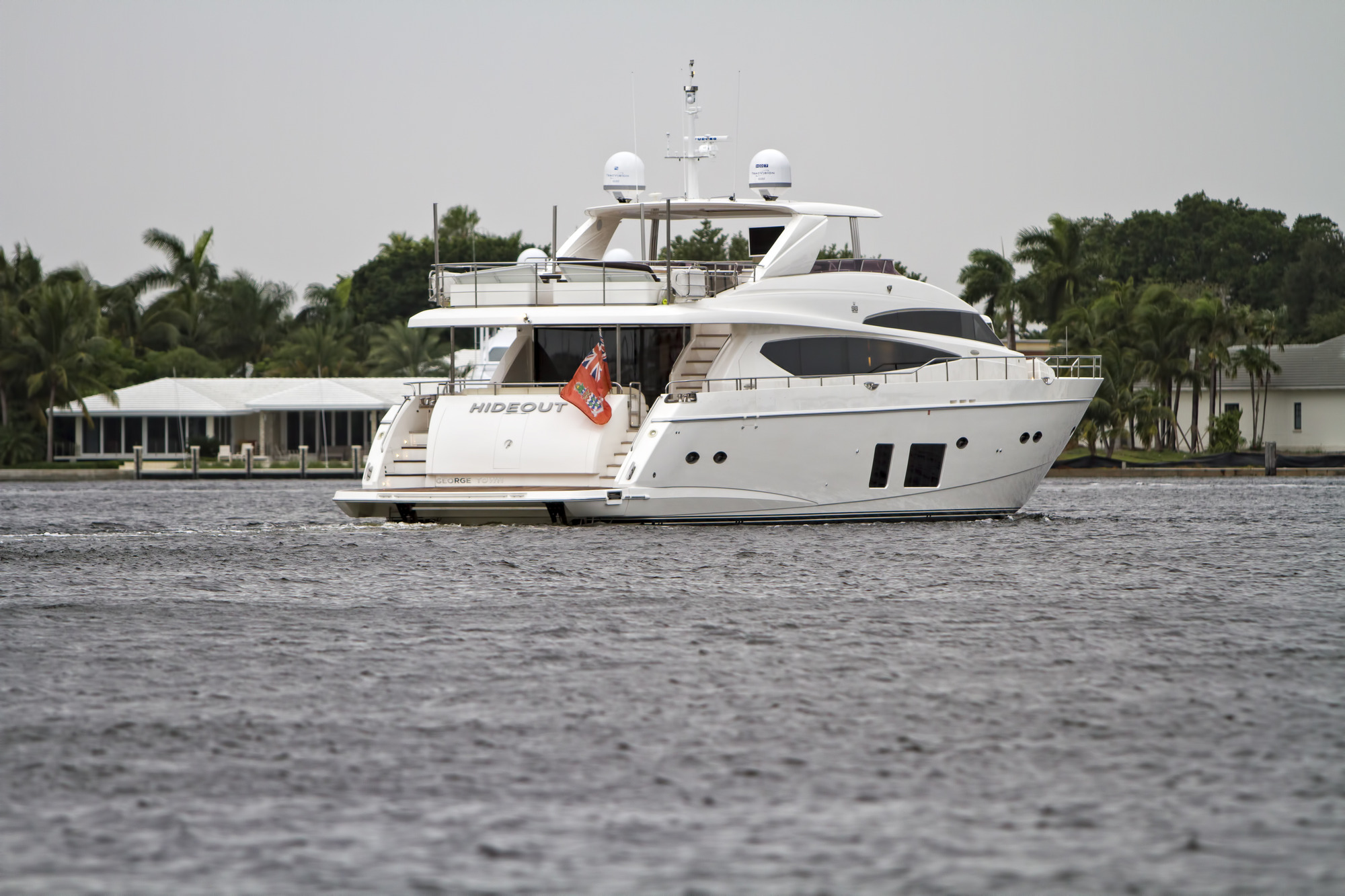Lady Cope is a 98 foot motor yacht built in 2012 by Princess UK. She has received a refit in 2016 to keep her guest comfortable. Twin MTU engines give her a cruising speed of 12 knots and a top speed of 24. She will be available for charter in the Bahamas starting in November of 2017. Four cabins offer accommodations for as many as eight guests. Her master cabin features a queen size bed, desk, sitting area with occasional table under windows for exceptional views, and large screen TV. The generous V.I.P. cabin offers a queen bed and settee. There is also a guest cabin with queen bed and a guest cabin with twin bed. Her main salon features three couches arranged in a U shape with center ottoman/coffee table. Forward of the main salon is dining for eight. Out on the aft deck is a set in table with U shaped lounge and deck chairs for al fresco dining with outstanding views. Up on the sundeck there are ample places to enjoy the sun or to find shade under one of the biminis. There is also an on deck Jacuzzi on the sundeck. A full beam swim platform offers guests effortless access to the water. For watersports Lady Cope features a 30 foot Everglades center console tender setup up with fishing gear, a three person Yamaha wave runner, a three person Sea Doo wave runner, two wakeboard, two paddleboards, water skis, tube, slide, snorkeling gear, and rendezvous diving.