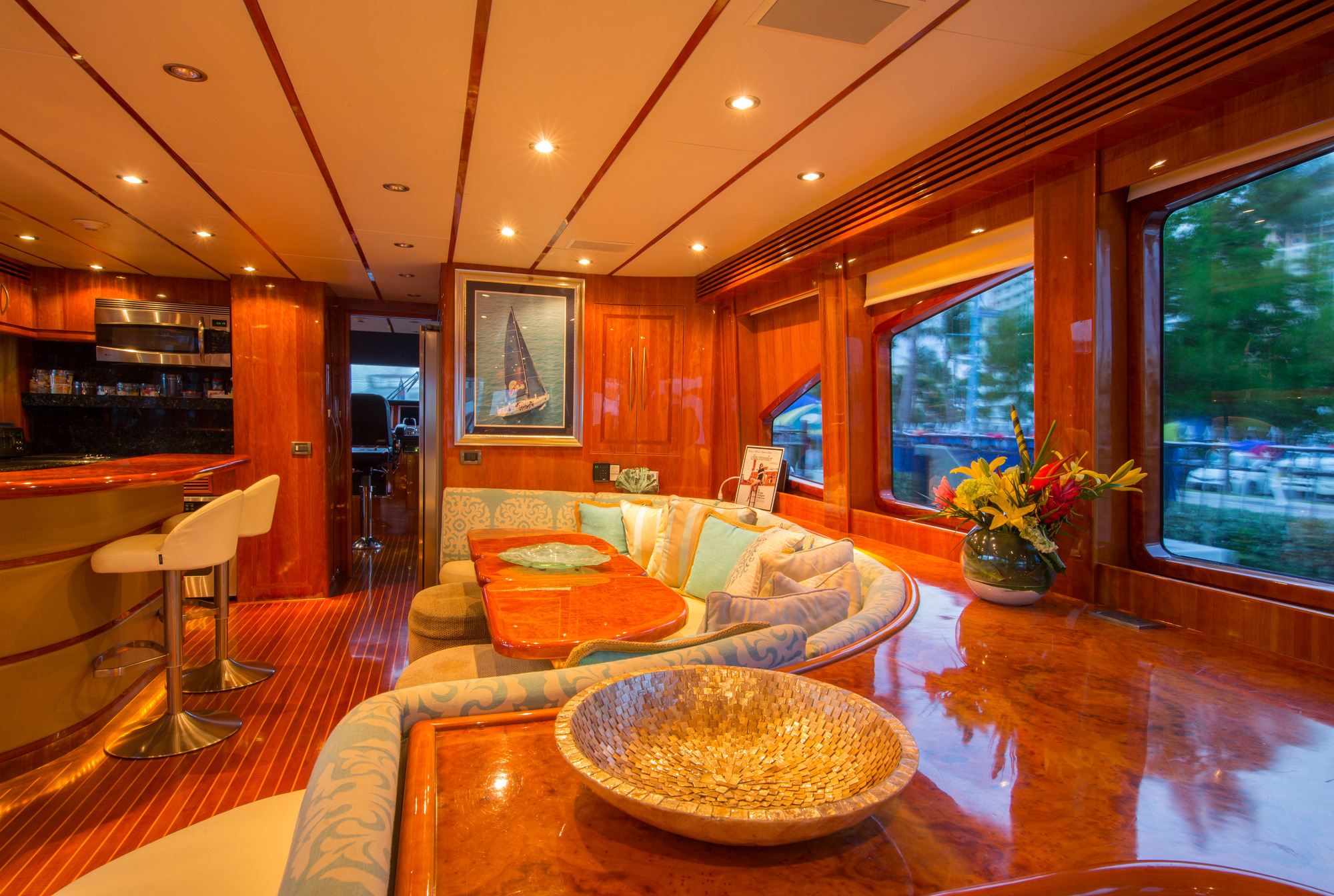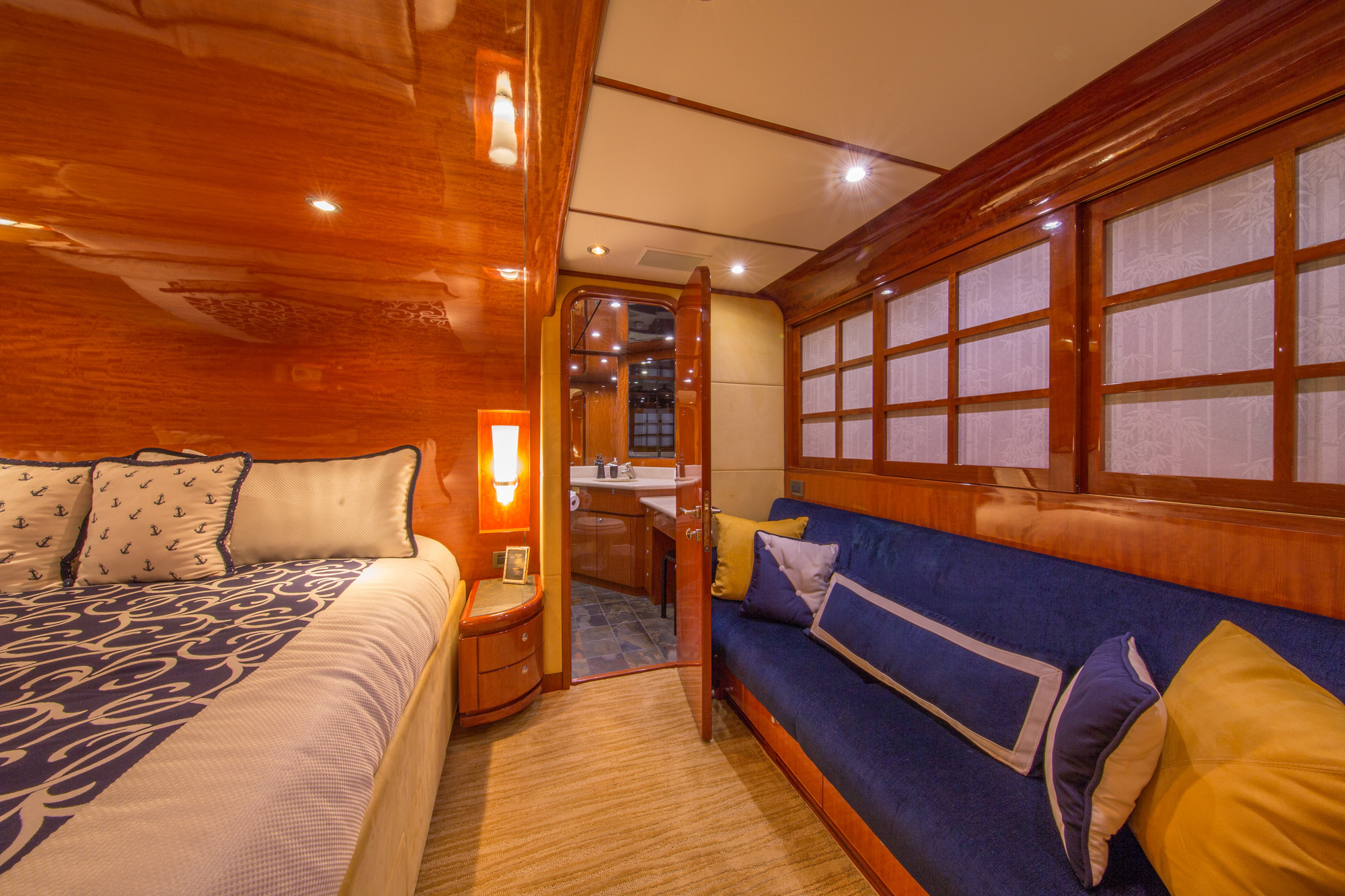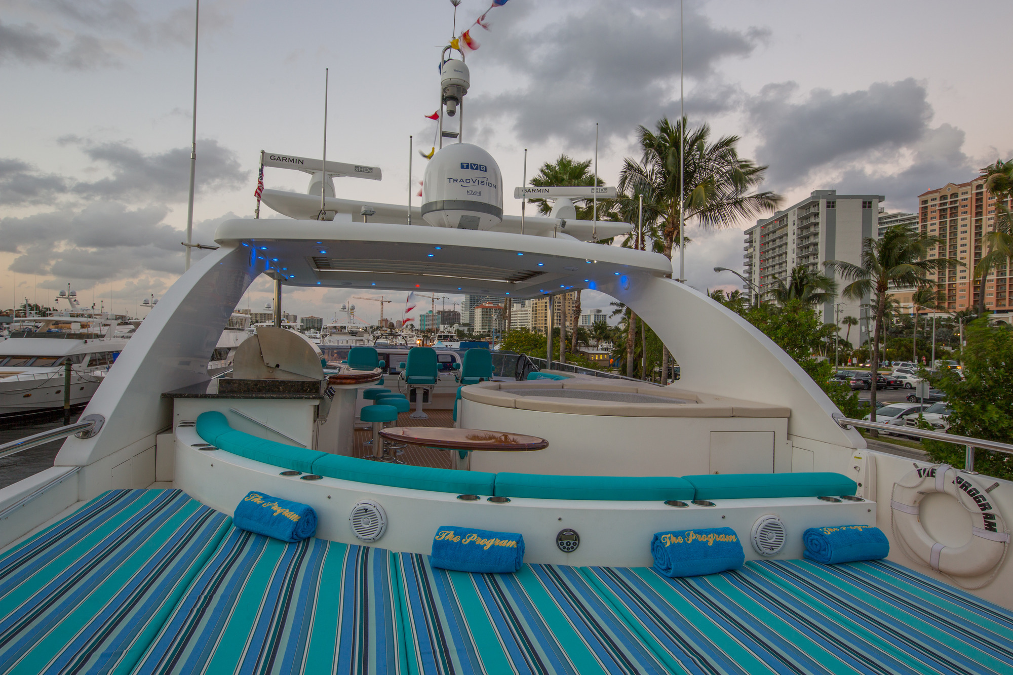 The Program (formerly Hooter Patrol IV) is a 29.57m motor yacht, custom built in 2006 by Hargrave Custom Yachts. The Program's interior layout sleeps up to 10 guests in 5 rooms, including a master suite, 3 double cabins, 1 twin cabin and 2 pullman beds. She is also capable of carrying up to 4 crew onboard to ensure a relaxed luxury yacht experience. Timeless styling, beautiful furnishings and sumptuous seating feature throughout to create an elegant and comfortable atmosphere. The Program's impressive leisure and entertainment facilities make her the ideal charter yacht for socialising and entertaining with family and friends. PERFORMANCE This semi custom Hargrave 97 semi-displacement yacht also features ‘at anchor stabilisers’ which work at zero speed, increasing onboard comfort at anchor and on rough waters. With a cruising speed of 16 knots, a maximum speed of 22 knots and a range of 650nm from her 12,113litre fuel tanks, she is the perfect combination of performance and luxur