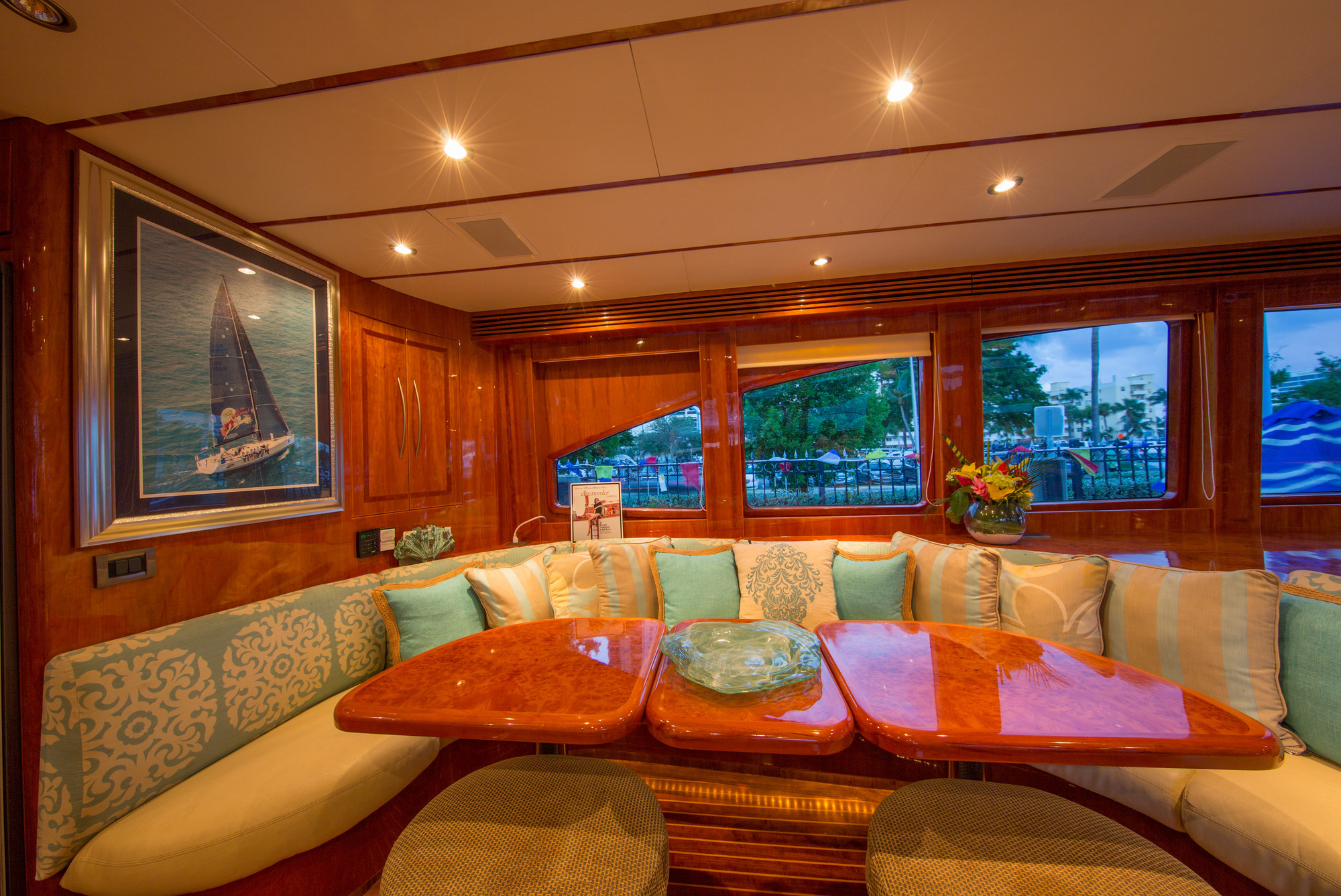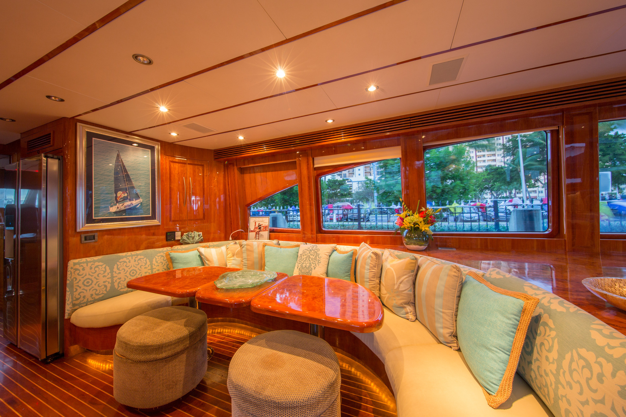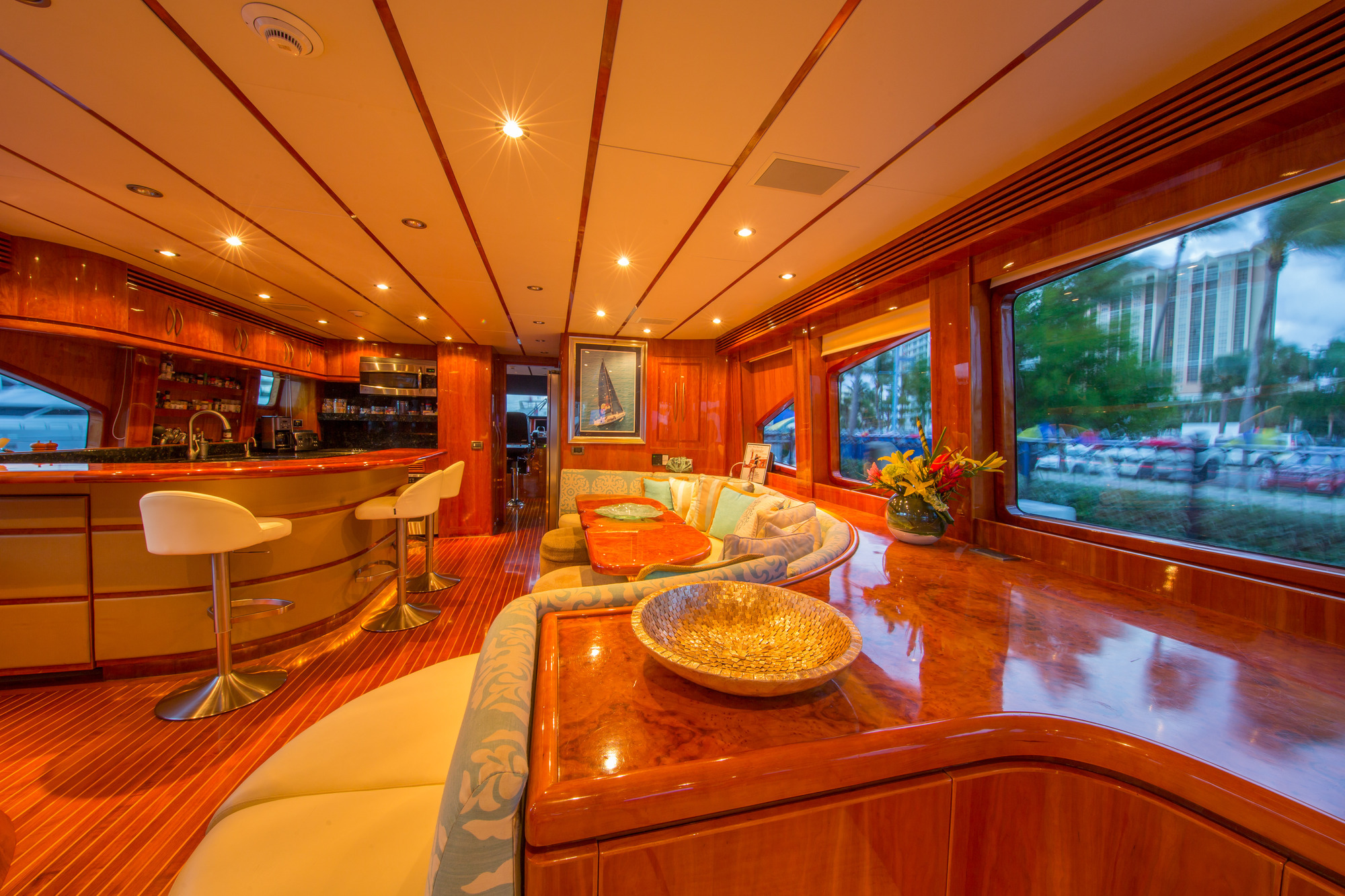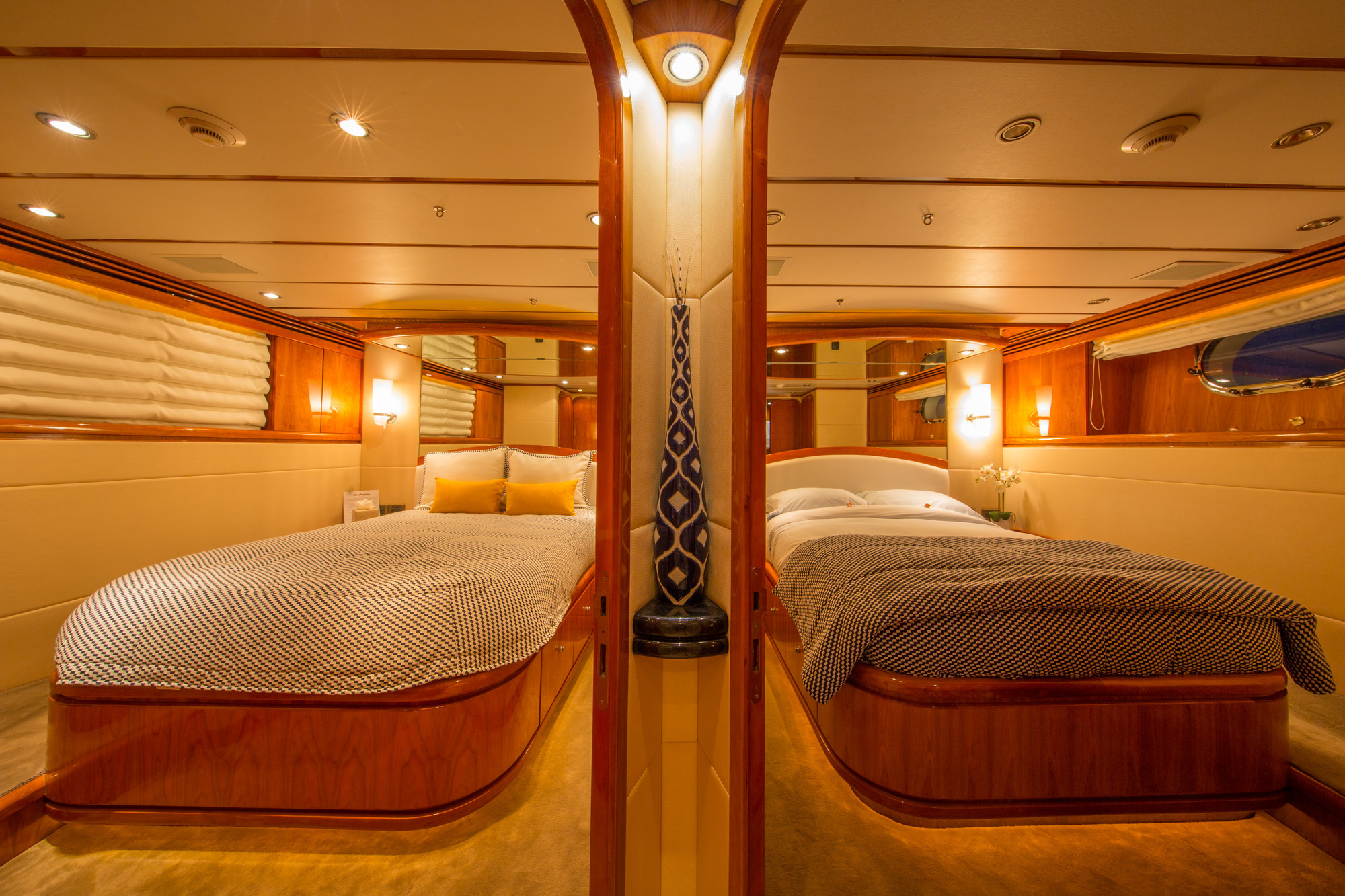 The Program (formerly Hooter Patrol IV) is a 29.57m motor yacht, custom built in 2006 by Hargrave Custom Yachts. The Program's interior layout sleeps up to 10 guests in 5 rooms, including a master suite, 3 double cabins, 1 twin cabin and 2 pullman beds. She is also capable of carrying up to 4 crew onboard to ensure a relaxed luxury yacht experience. Timeless styling, beautiful furnishings and sumptuous seating feature throughout to create an elegant and comfortable atmosphere. The Program's impressive leisure and entertainment facilities make her the ideal charter yacht for socialising and entertaining with family and friends. PERFORMANCE This semi custom Hargrave 97 semi-displacement yacht also features ‘at anchor stabilisers’ which work at zero speed, increasing onboard comfort at anchor and on rough waters. With a cruising speed of 16 knots, a maximum speed of 22 knots and a range of 650nm from her 12,113litre fuel tanks, she is the perfect combination of performance and luxur