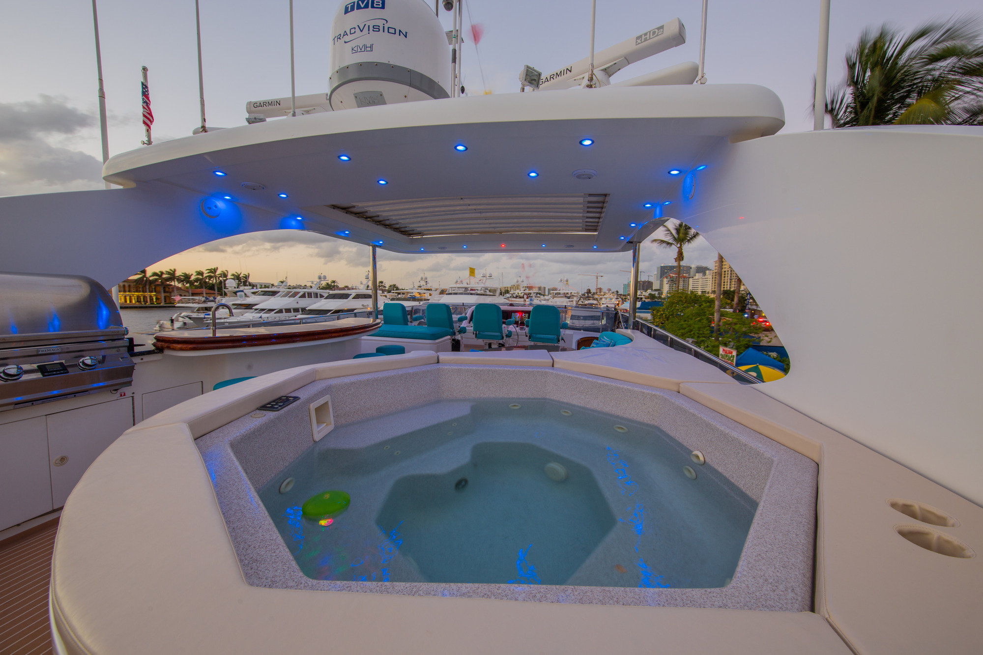 Tenders & Toys: 37' Intrepid Towed Tender - Additional $5,000 per week 16 Ft AB Tender 2014 w/70 HP Yamaha Engine - has Tow Eye (2) Seadoo - 3 Person Model Waverunners, new in 2015 (2) Inflatable Tow Tubes, Knee Boards, Water Skis, & Wakeboard, 10 pairs of Snorkeling Equipment (2) New Paddleboards (2016) 8 Person Jacuzzi Stainless Steel Bar- Grill Audio Visual Equipment and Deck Facilities: Crestron Audio System Throughout - New in 2016 Satellite Direct TV Audio Visual Equipment and Deck Facilities include a Music Library, Video Library, XM Radio , Karaoke Machine, IPOD and a Nintendo Wii. Communications: Fax Machine, SAT Phone, SAT Fax, SAT Internet, SAT TV, WiFi Extender for Internet When Available Only (Relies on signal from Shore-Side Provider), Vonage Phone When Available (Relies on signal from Shore-Side Provider), Panasonic Phone System, 2 VHF Icom Radios, 4 Handheld Radios
