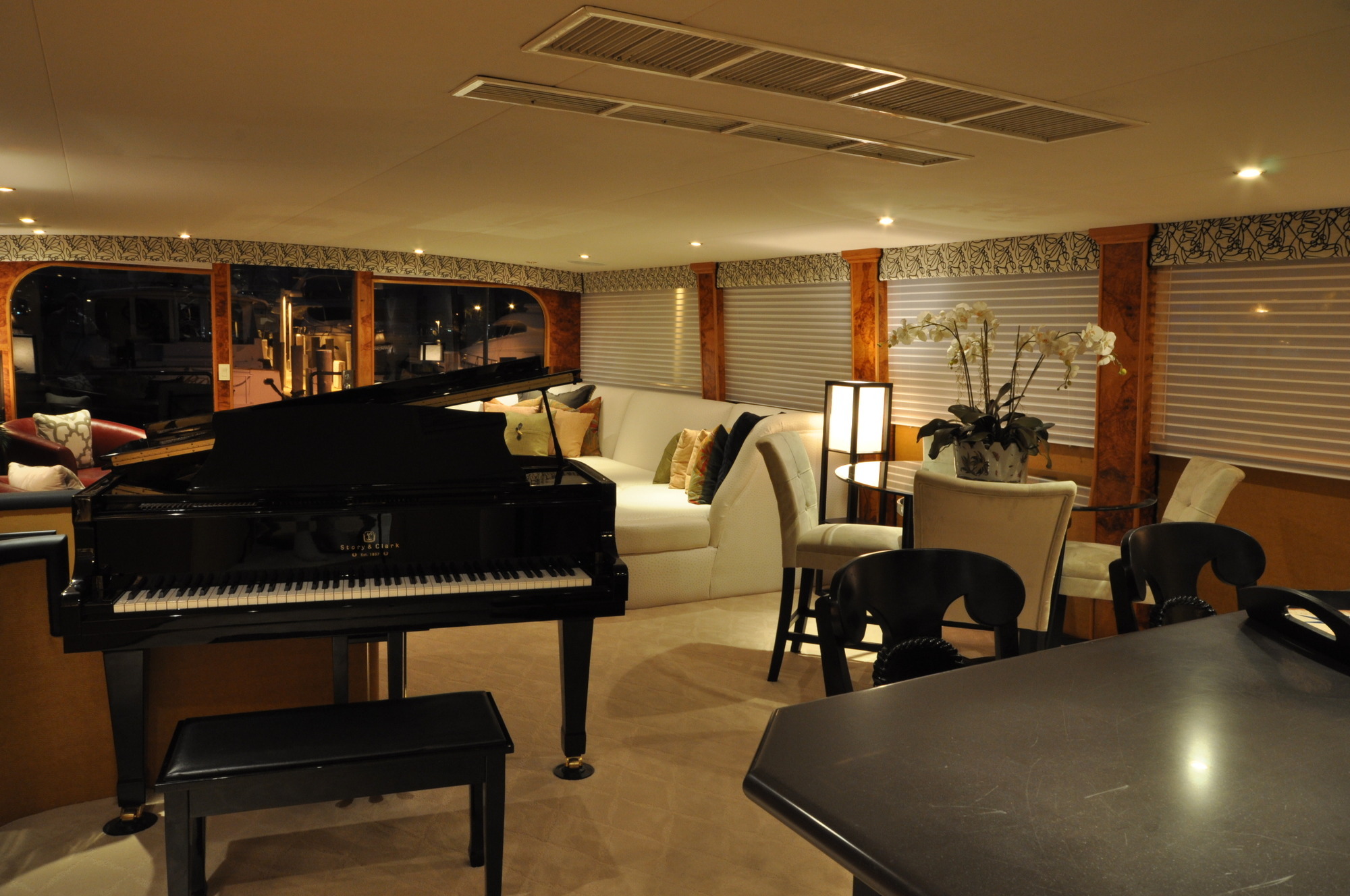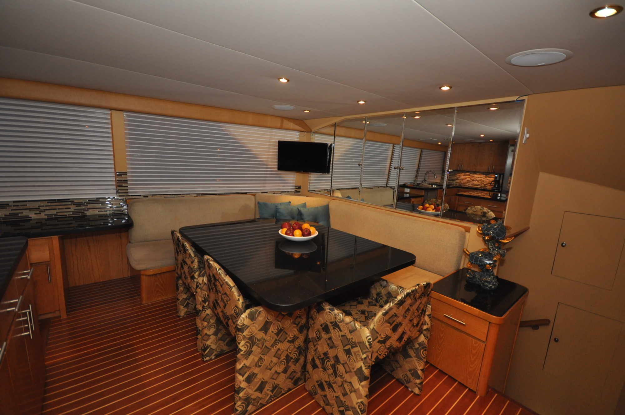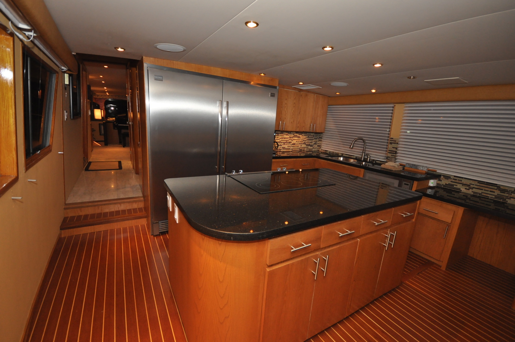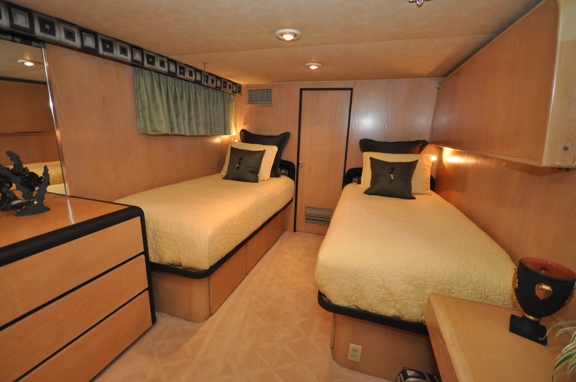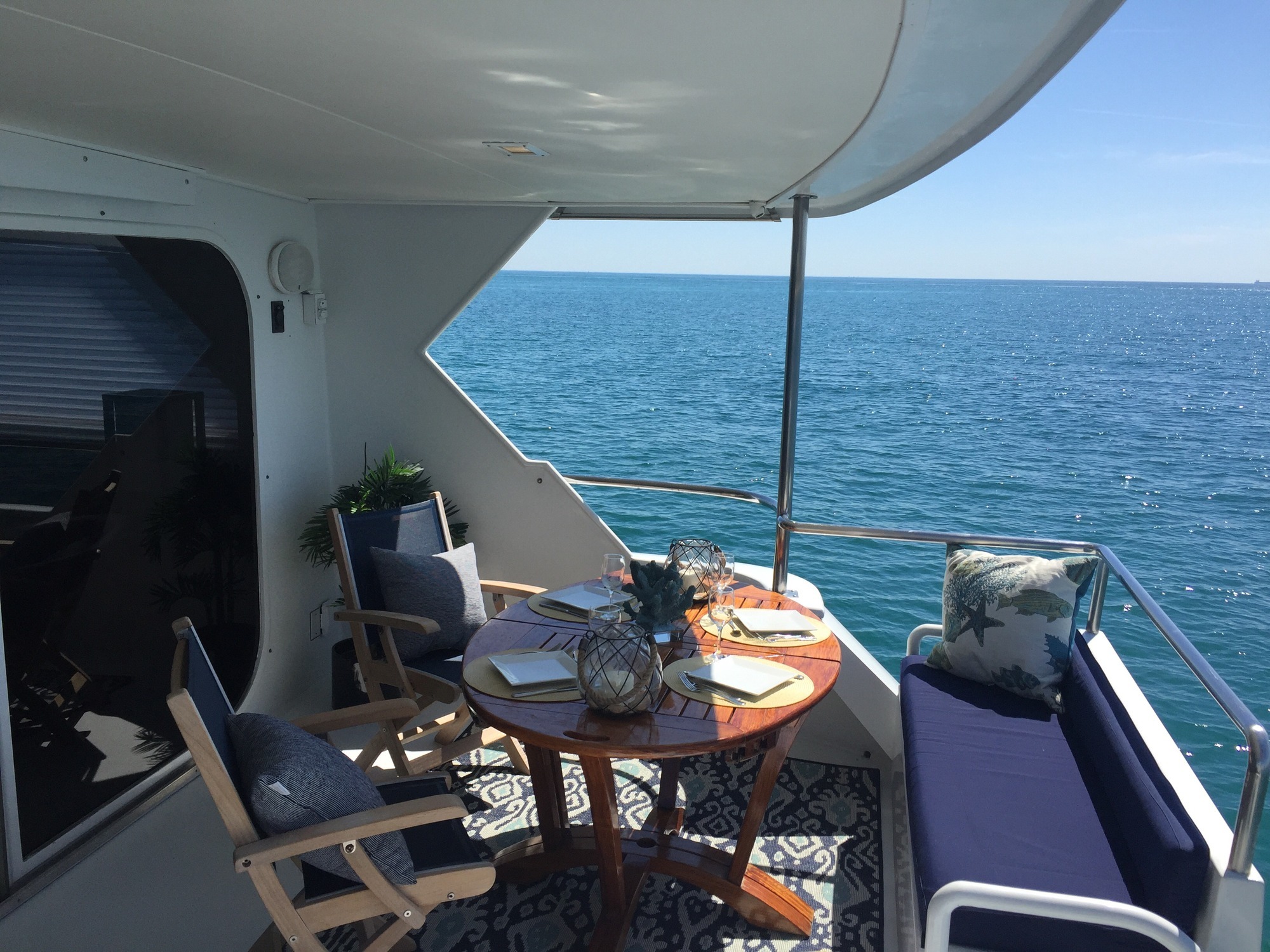 Crewed charter yacht GOLDEN GIRL offers ample exterior living. The aft deck is adjacent to the salon and has an alfresco dining option, shade and additional seating. Wrap around decks make access to the double sunpad on the foredeck, easy for all. The jewel of the outdoor living spaces aboard the motor yacht GOLDEN GIRL, is the upper deck. The upper deck is perfect for entertaining for any occasion and offers wrap around seating, an island wet bar and alfresco dining option. Removable large umbrellas provide ample shade if requested. The Broward Marine yacht GOLDEN GIRL has a beam of 6.1m (20ft) and a draft of 1.8m (5.11ft), she is powered by 2 GM 875hp engines, capable of 10 – 17 knots. Motor yacht GOLDEN GIRL boasts stabilizers for optimum comfort.