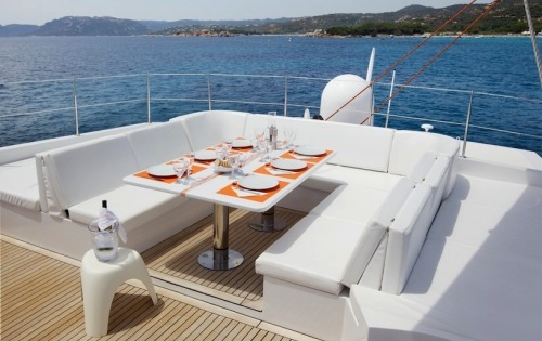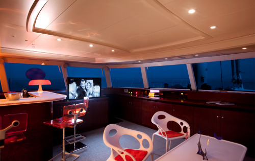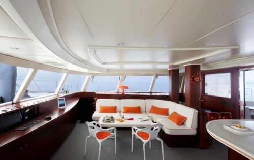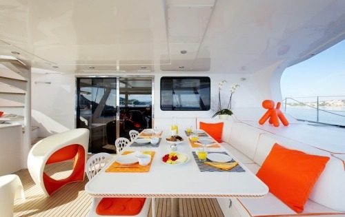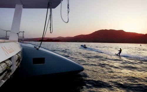 Designed by renowned architecture firm VPLP (winner in 2010 of the prestigious Manley-Bendall Prize by the French Naval Academy and winner of the "1999 Most Innovative Superyacht" and designer of the best racing yachts in the world) MAITA'I (ex CHE) was given a full technical and design refit by its new owner in 2011. Maita’i has unique style, which is modern and very chic! On board, the collection of original works of art sets the tone. Paintings, sculptures and furniture designs of Alexander Calder, Auguste Herbin, Martha Botto, Philippe Stark and Ross Lovegrove are together with modern conveniences such as iPads & iPods in the cabins and the salon, a Wii games console, large screen television and DVD player with 300 movies available in each cabin. Bed and bath linens and accessories come from the House of Hermès, the crystal stemware from Baccarat, and cutlery from Christofle. Every detail has been considered to create a high level of quality, beauty and style. In addition to her style Maita’i is an amazingly adaptable boat: the double beds convert into single beds, one double cabin becomes a cabin for three teenagers, the tables can be made larger or smaller depending on the guests’ needs, and the dining room can be inside or outside on the fly bridge for a 360 ° view. The master suite offers a large dressing room, bureau and bathroom with a Hansgrohe rainShower and white Corian washbasins. Guests will find it impossible to be bored with the numerous water toys on board, which include: an inflatable 10’ sailing cat, wakeboard, water skis, diving equipment, kneeboard, floats. Navigation is not forgotten, and Maita’i has new Hydranet sails and spectra lines. All of the equipment is on the forefront of the latest technology