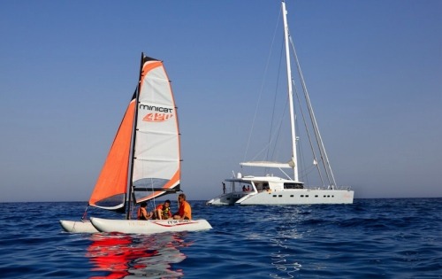 Tenders & Toys: Dinghy William TurboJet 100 HP 4.2m Sailing catamaran dinghy for 2 2 kayaks for 2 wakeboard 2 inflatable paddle boards + 1 hard 10'4" paddle board Waterskis (adults & kids) Monoskis (adults) Seadoo scooter rs1 Tubes Floating mats Fishing gear Diving equipments - 4 air tanks Air compreAudio Visual Equipment and Deck Facilities: Screen TV & DVD in the saloon and in each cabins, library of 200 movies Ipods & Ipads in each cabins & saloon Wii & games Flybridge with deck sofas, tables etc.; Deck shower, bathing platform Communications: Cellular GSM, wifi, internet, satellite phone.ssor